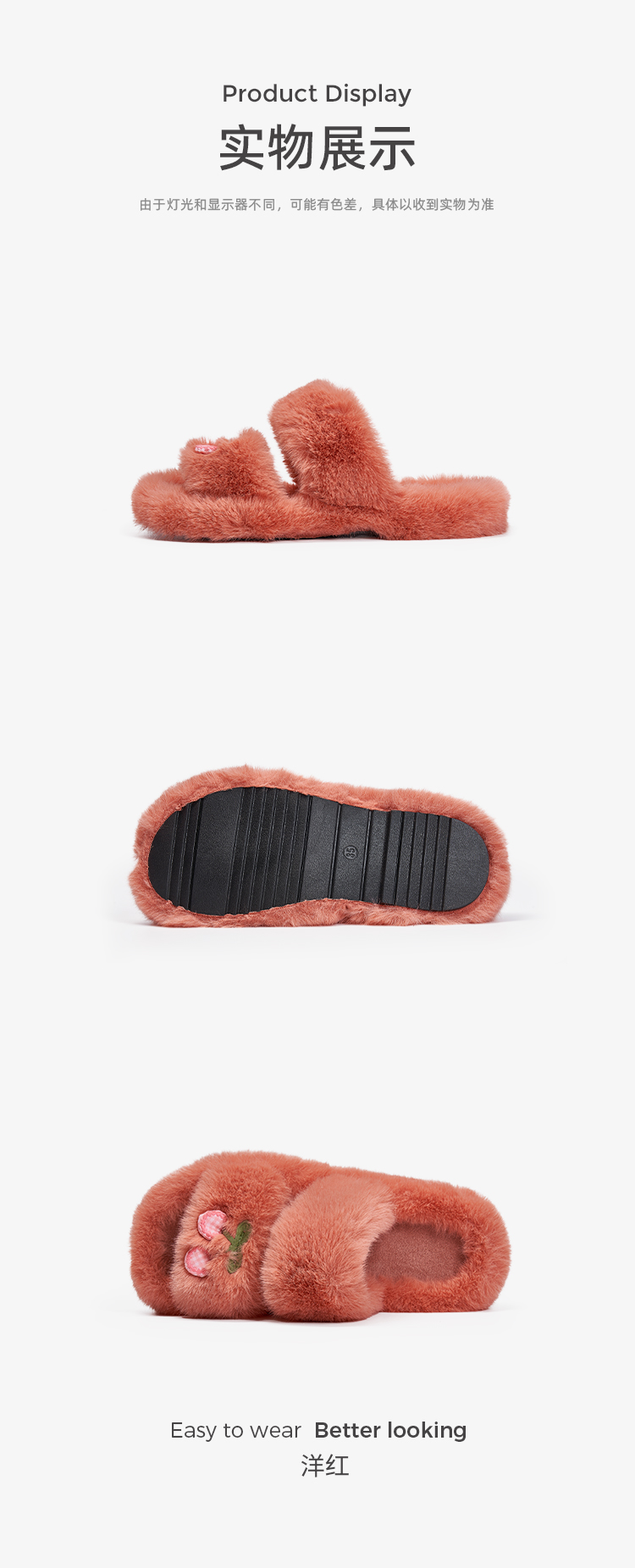 【补贴会场】不参与满减泰兰尼斯冬款中大童毛茸茸棉拖T22Q3D4227