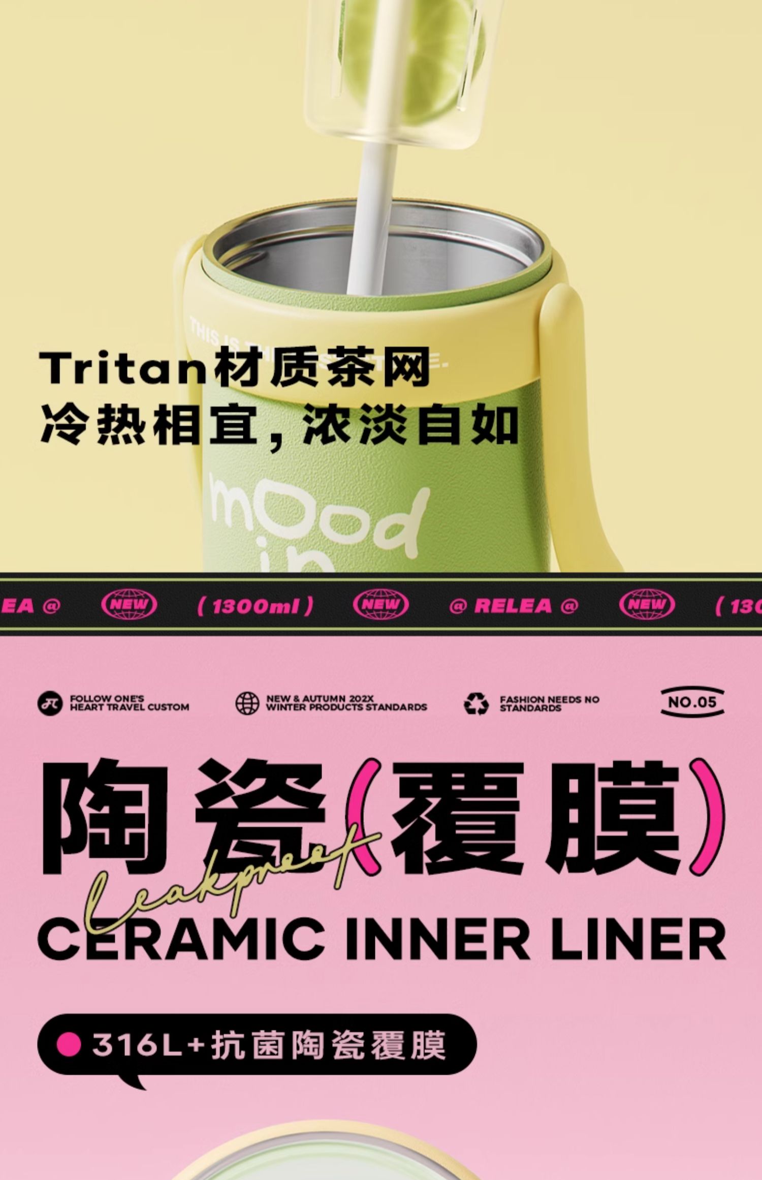 A-WSW-物生物 大力水守 巨无霸水杯 陶瓷内胆升级款1.3L