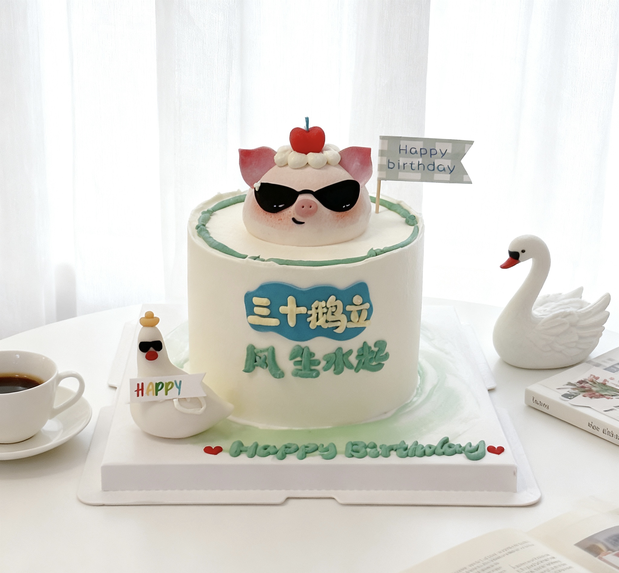 猪猪与小鹅三十而立卡通蛋糕-低糖处理无添加