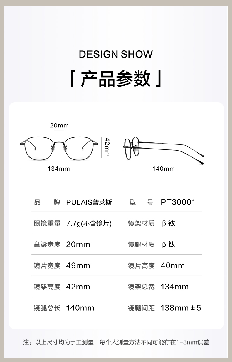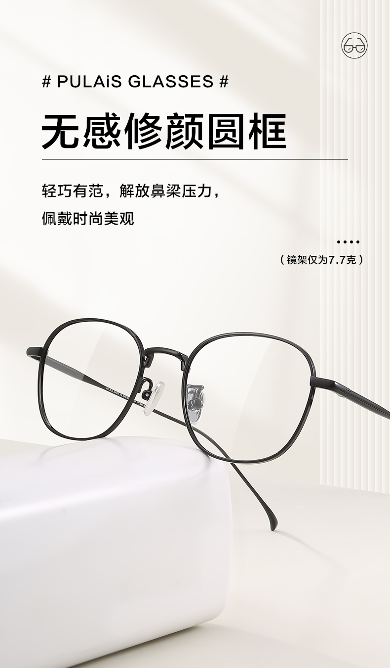普莱斯光学镜架PT30001 无感修颜圆框 真空IP电镀 β钛材质 四色可选