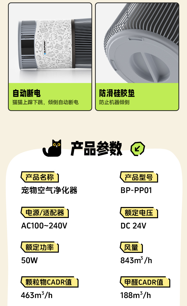 德国蓝宝宠物空气净化器全自动吸猫毛神器浮毛BP-PP01