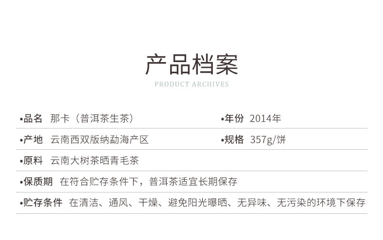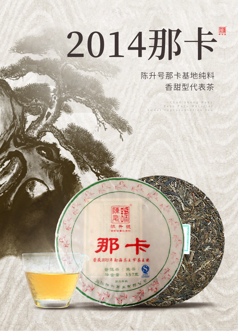 【春茶料香甜型代表茶】陈升号 2014年那卡 纯料普洱生茶 357g/饼(京东同款)