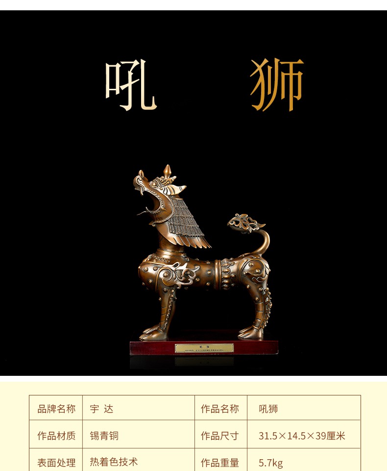 宇达青铜全铜摆件《吼狮》仿复制国礼 家居 装饰 工艺礼品 摆件