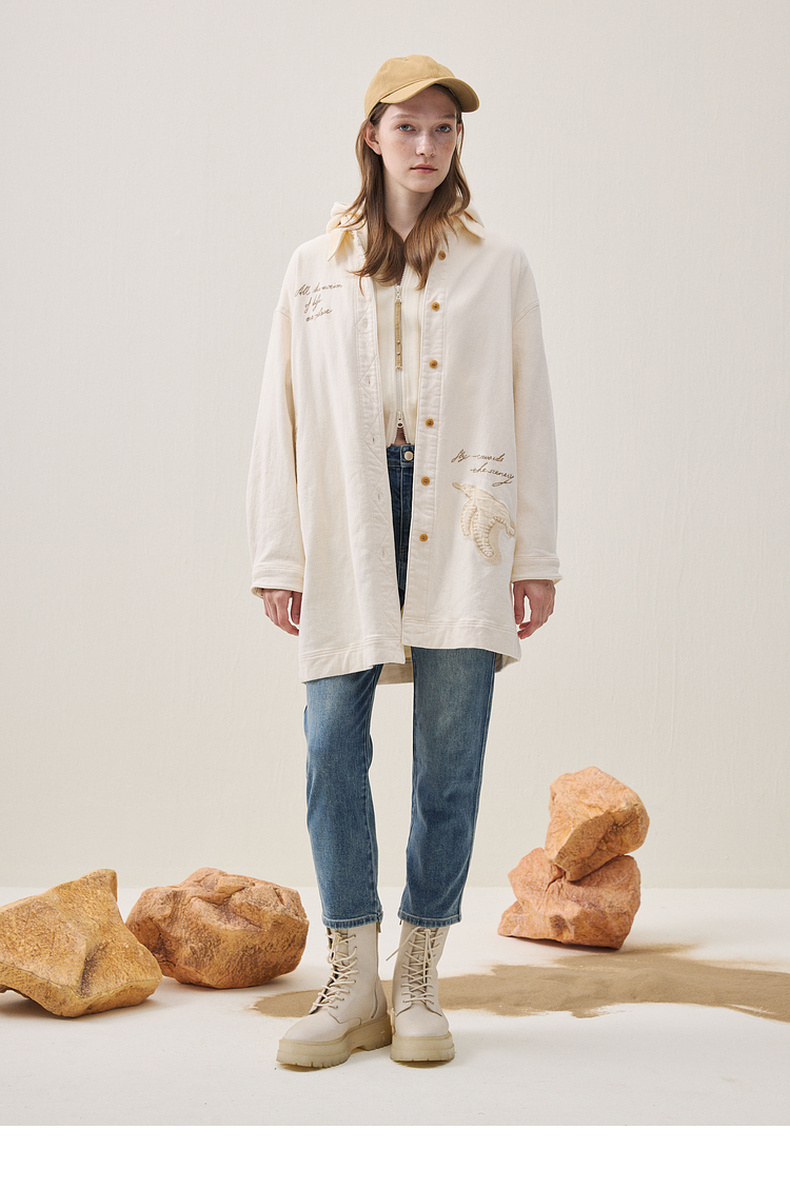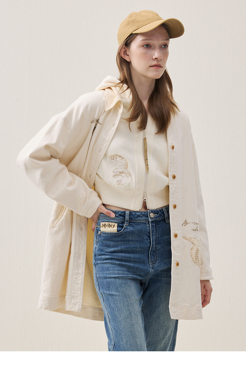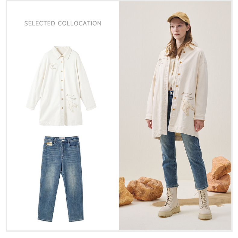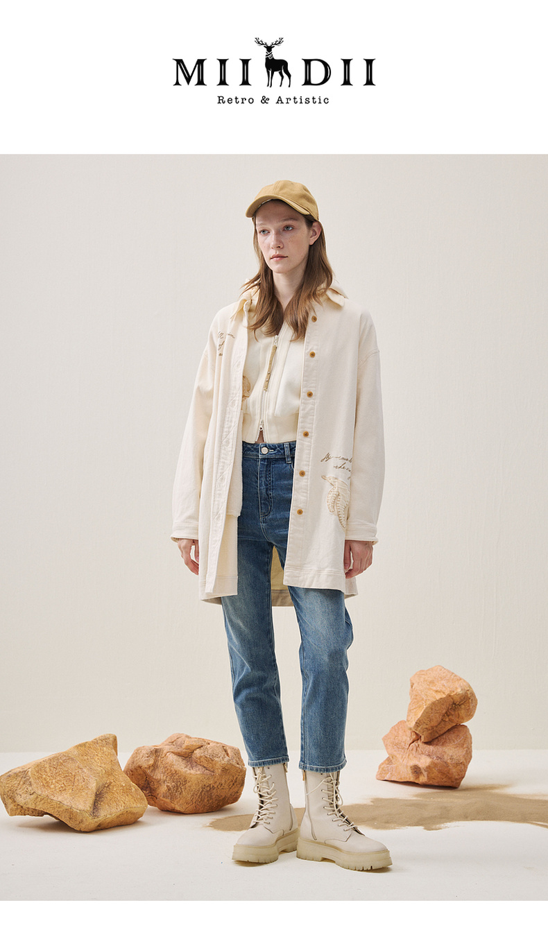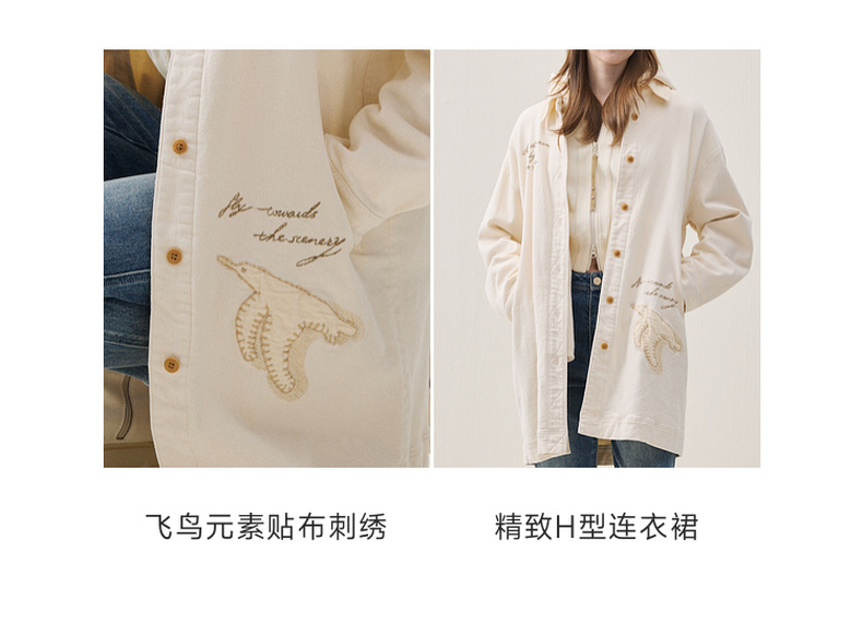 谜底牛仔连衣裙长袖2025年冬季新品H型磨毛刺绣短裙女254ML1632