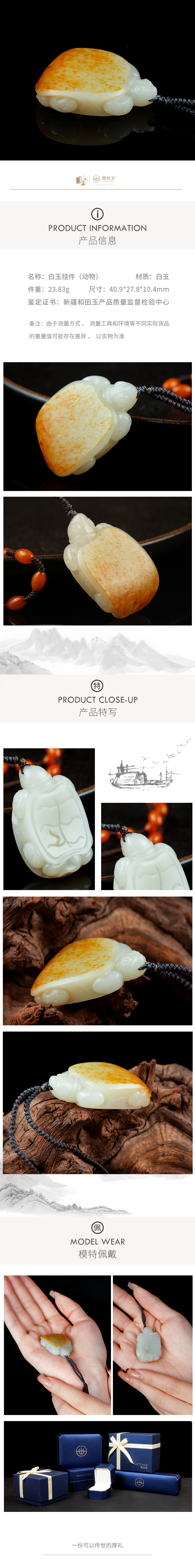 新疆国玉盟世玉和田玉白玉挂件(长寿龟)【带证书·顺丰物流】