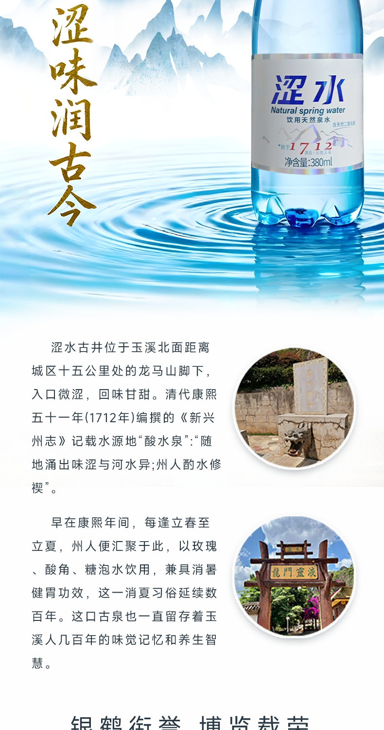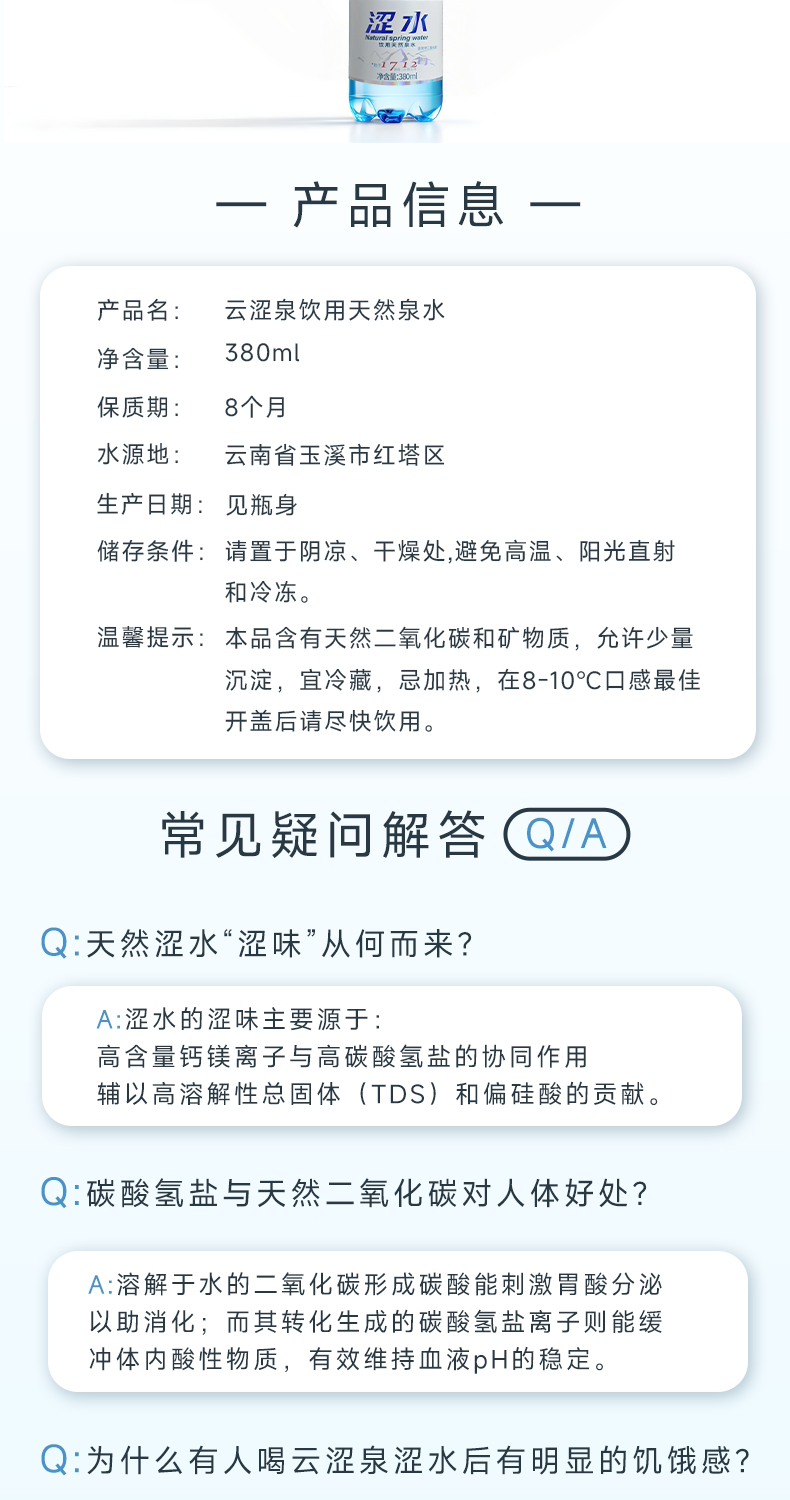 云南天然泉水饮用水富含碳酸氢盐天然二氧化碳云涩泉涩水380ml*12瓶