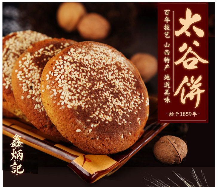 - 鑫炳记始于1859年,历经五代传承,传承百年工艺,从选取原料到烘烤出炉,都严格遵守祖传古方,让百年太谷饼焕发新的魅力。