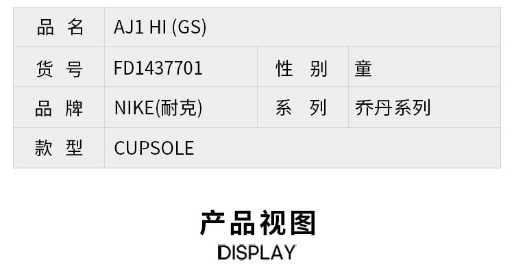 耐克女鞋 AJ1 黑白黄 高帮运动鞋复古篮球鞋
