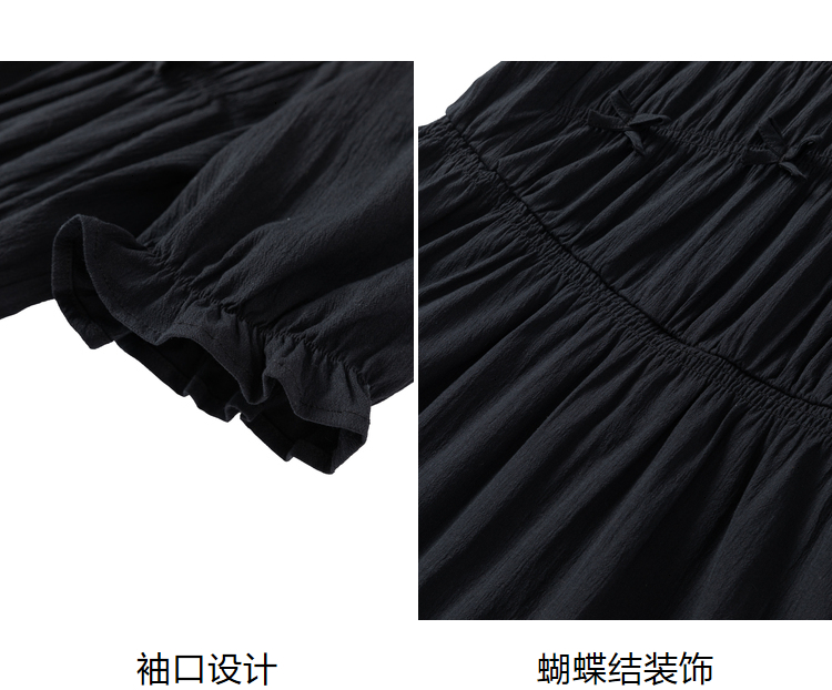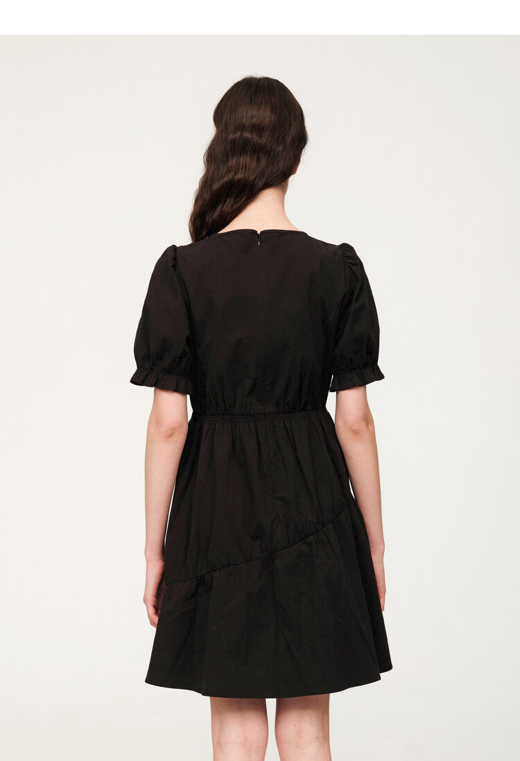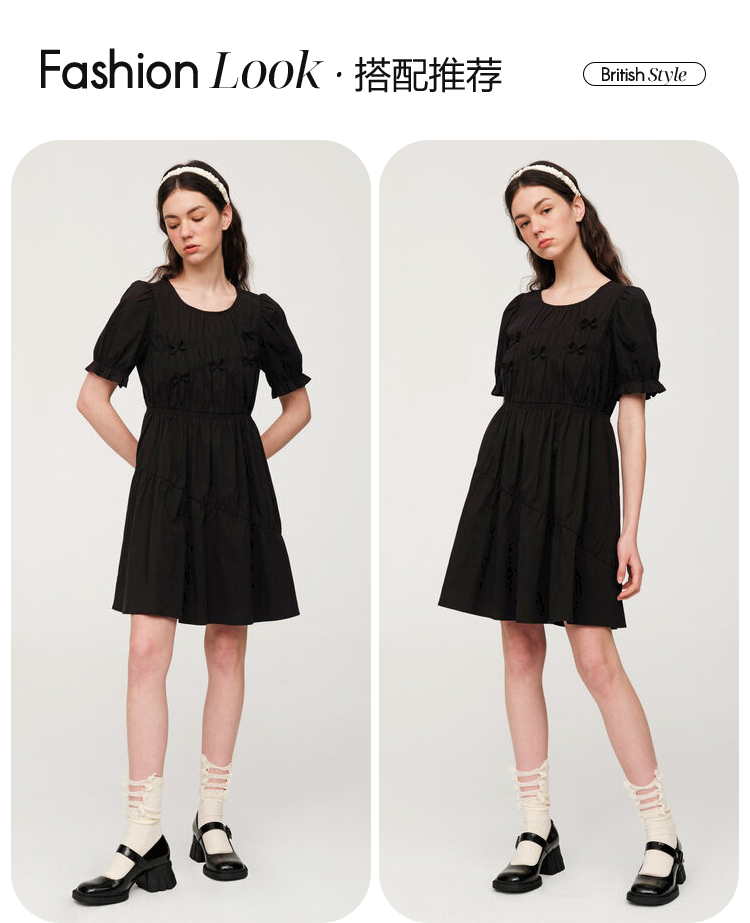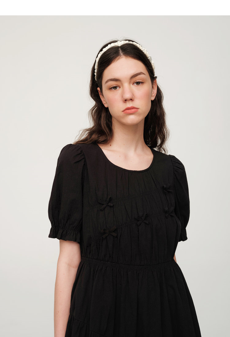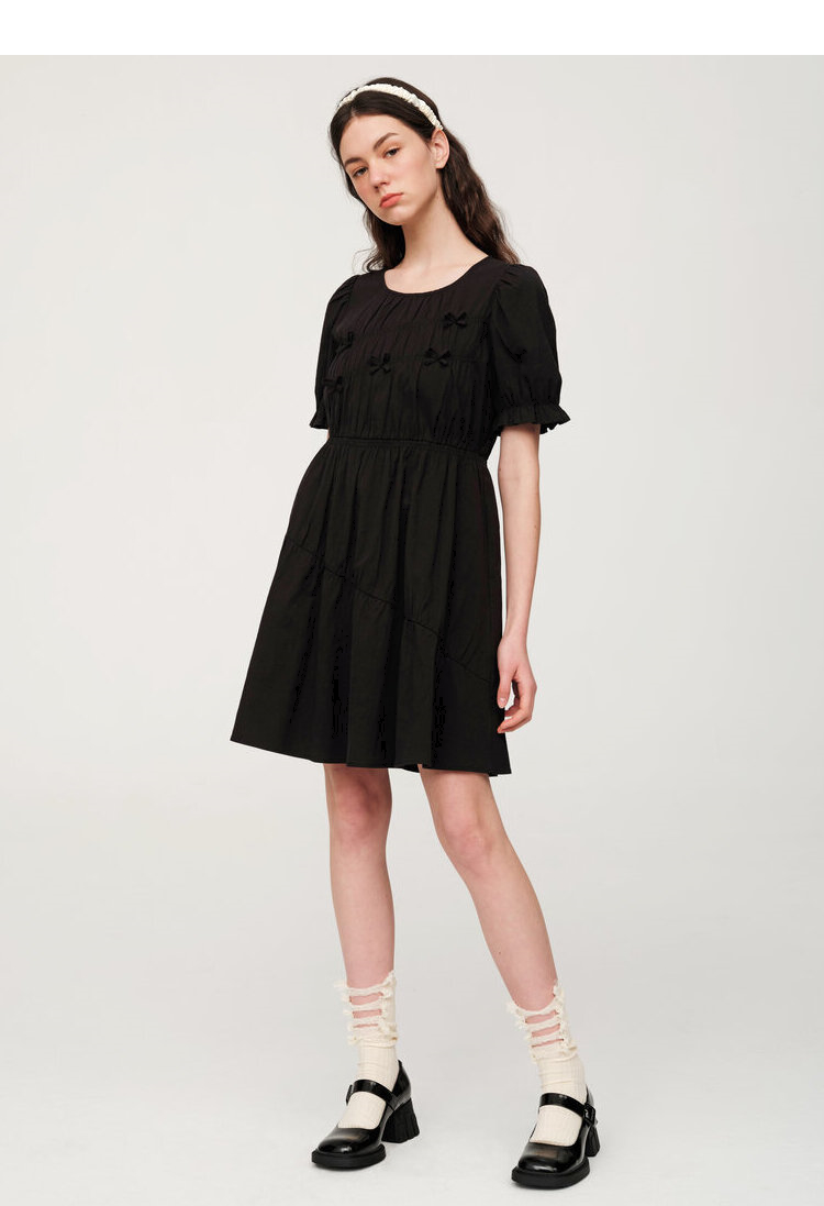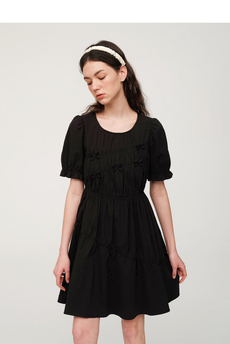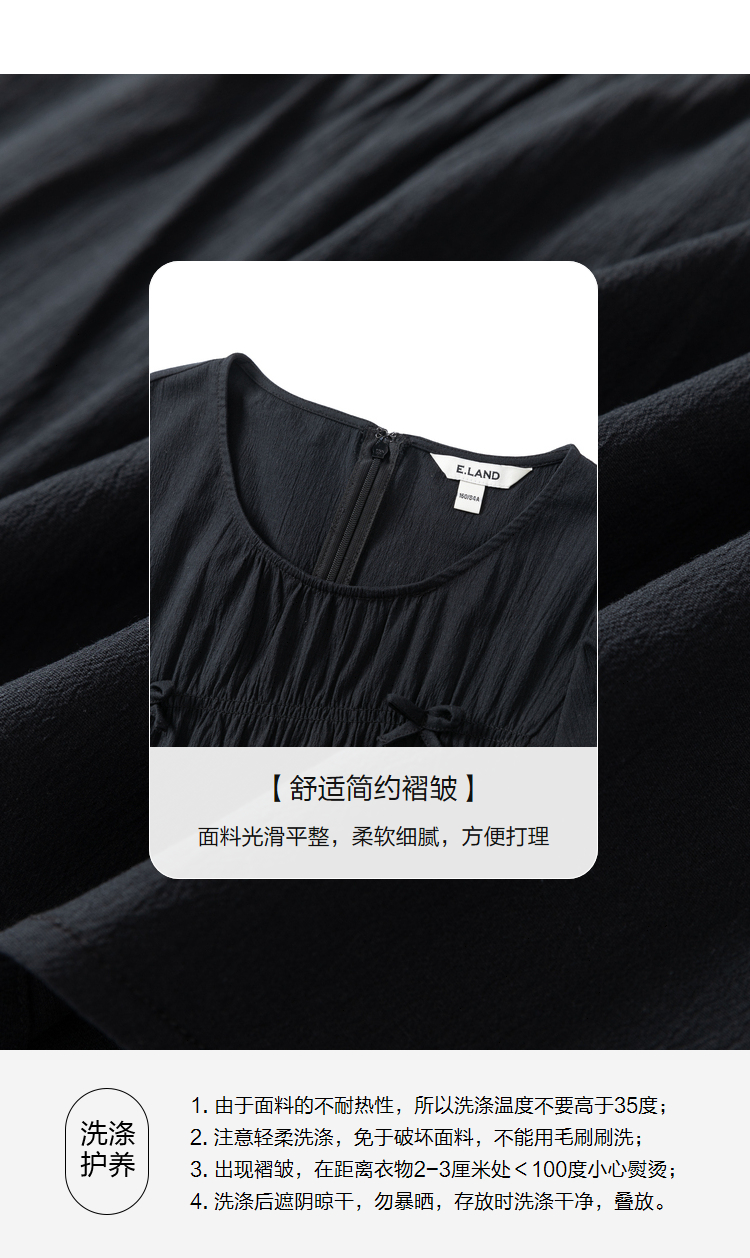 ELAND衣恋简约风褶皱设计中长款短袖连衣裙EEOWC25N4M