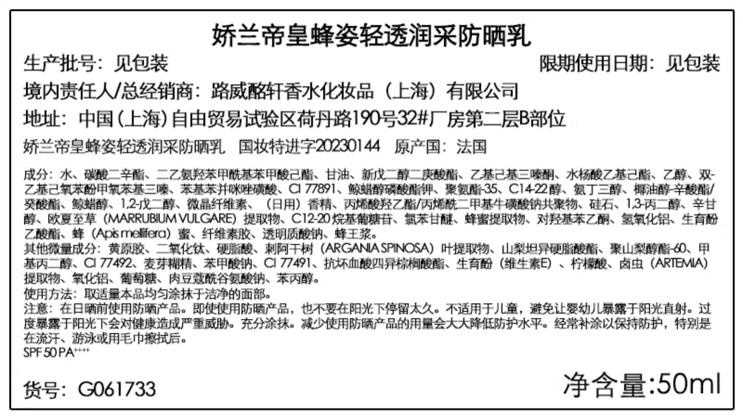 娇兰 帝皇蜂姿轻透润采UV防晒乳 SPF50/PA++++