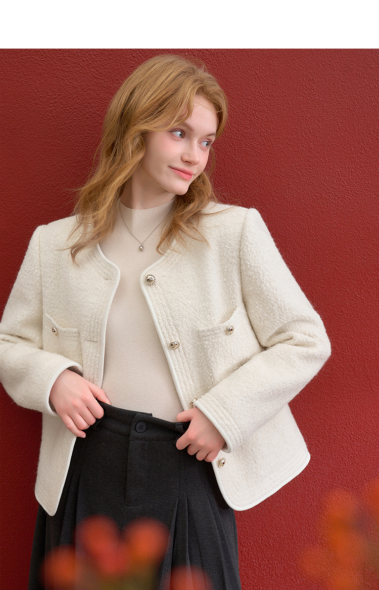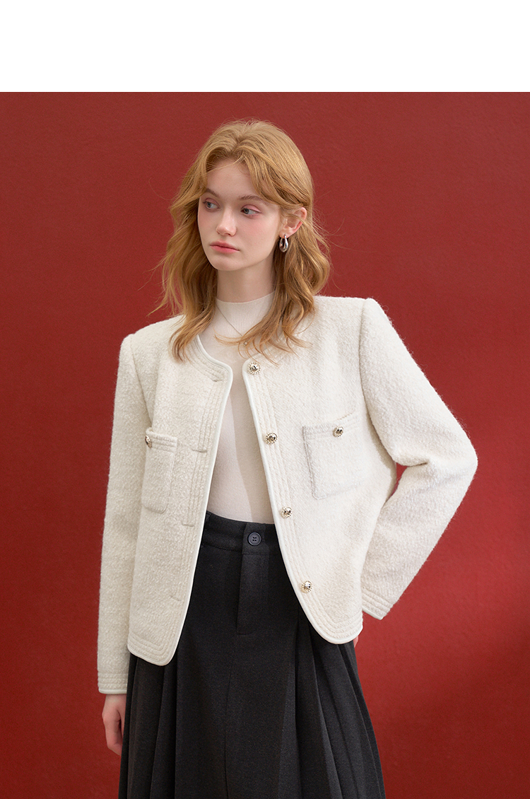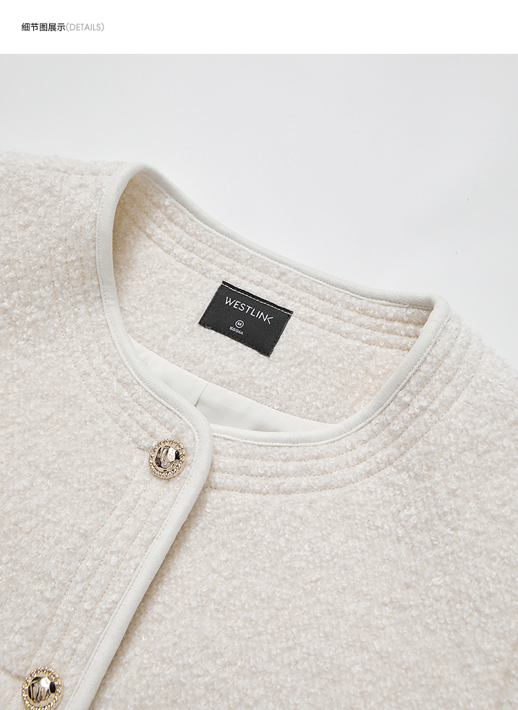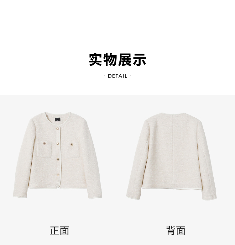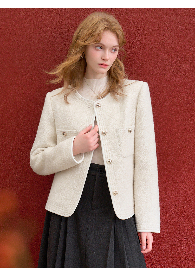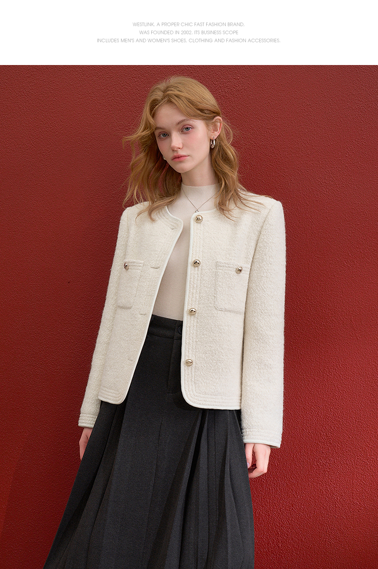 西遇夹棉小香风外套女冬季新款单排扣正肩气质千金短款外套V4155422