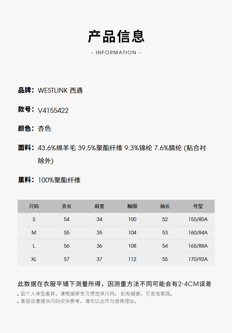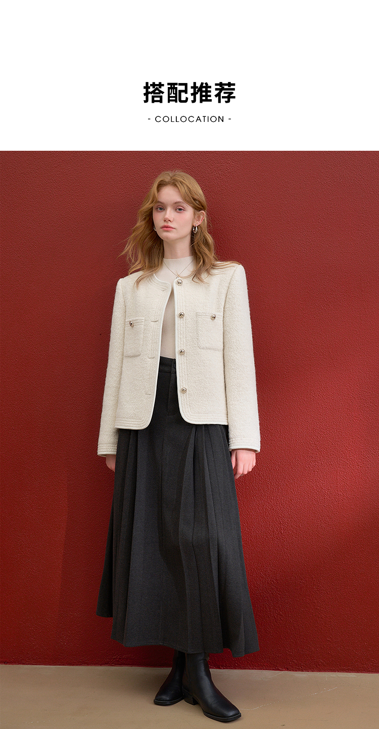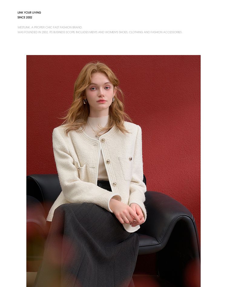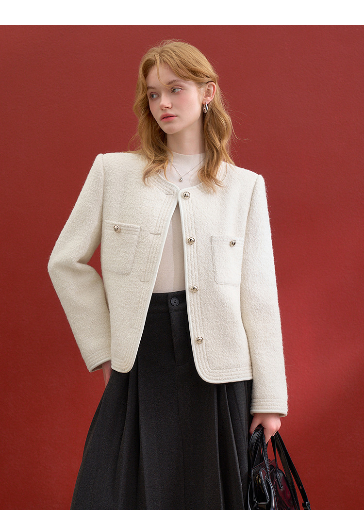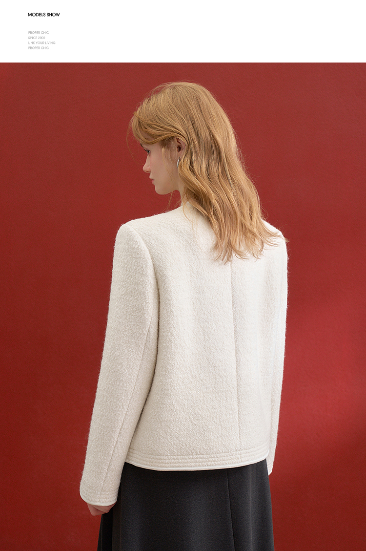 西遇夹棉小香风外套女冬季新款单排扣正肩气质千金短款外套V4155422