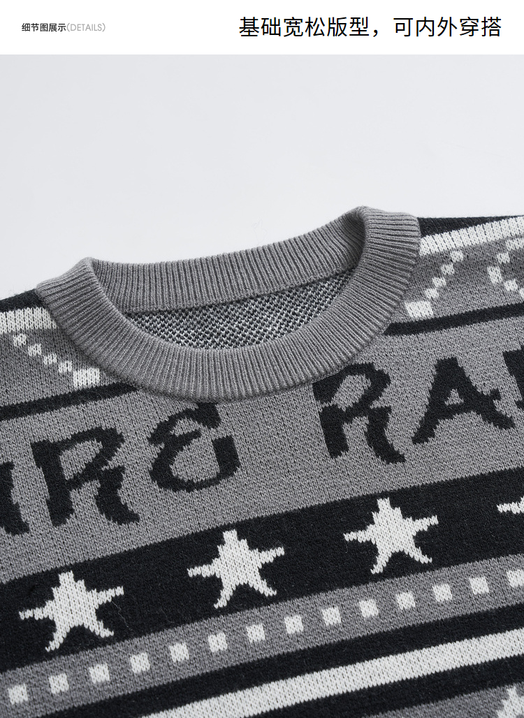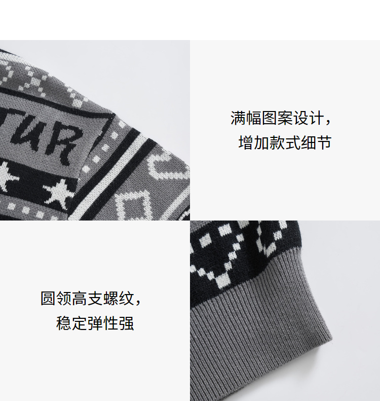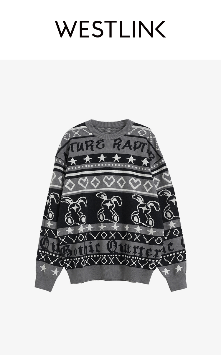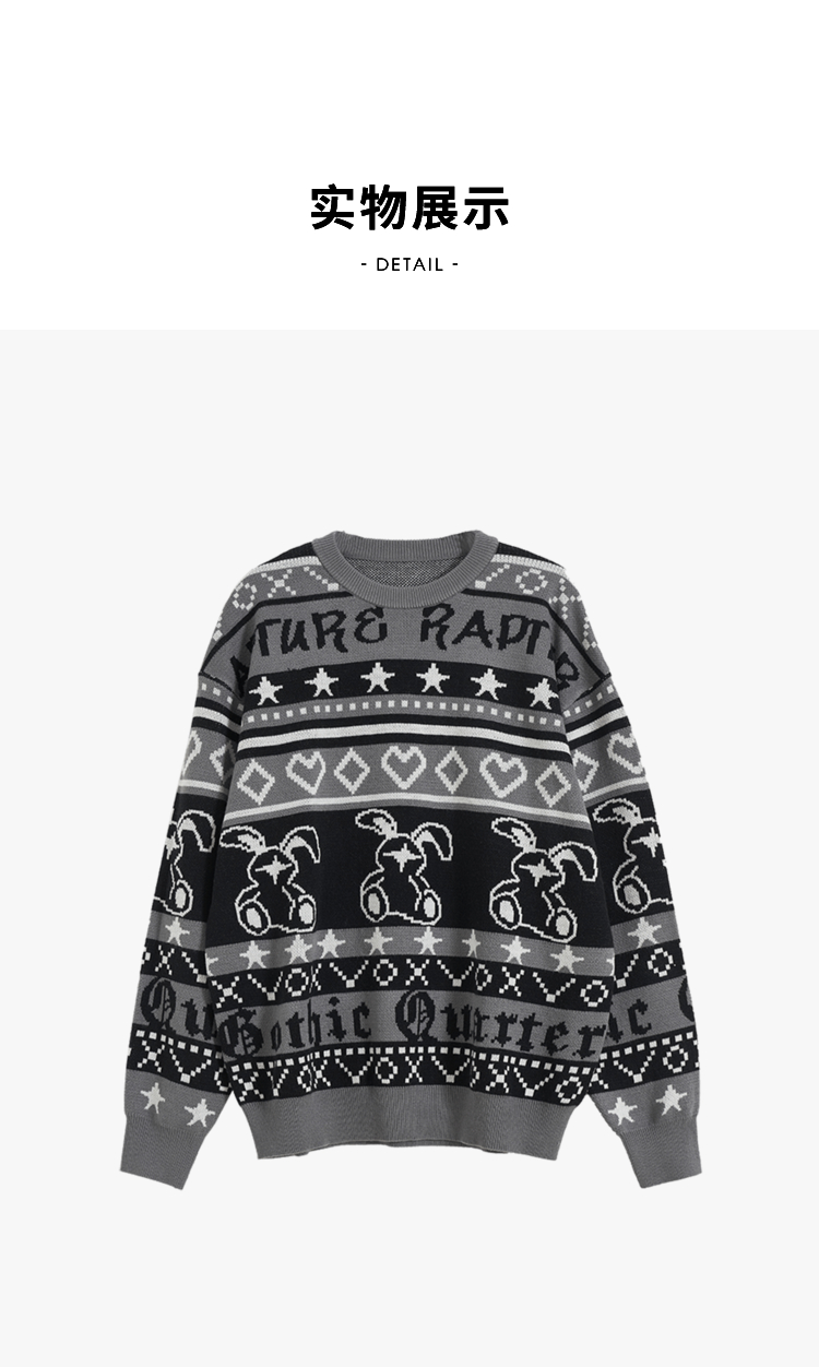 西遇提花毛衣男款新款圆领内搭兔子针织衫潮牌长袖上衣10132010