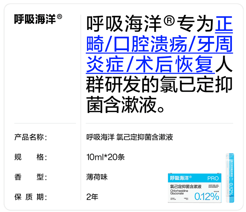 呼吸海洋氯己定抑菌含漱液/漱口水10mlx20条 (0.12%有效期至2027年2月27日)