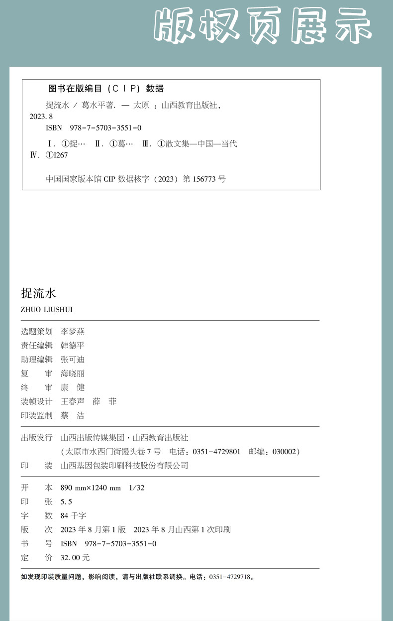 正版 阳光麦田第二季 捉流水 葛水平著 中国当代散文集 山西教育出版社出版