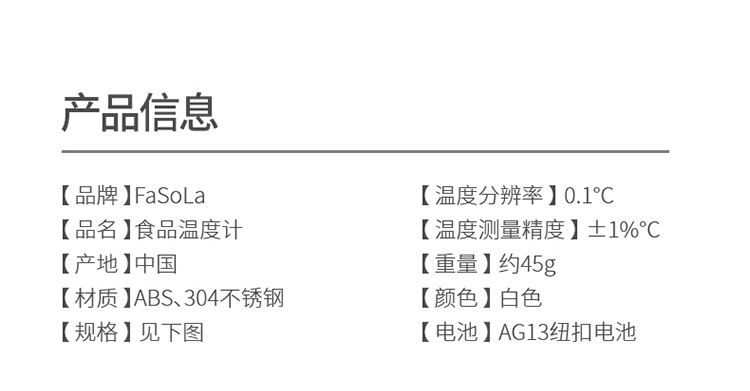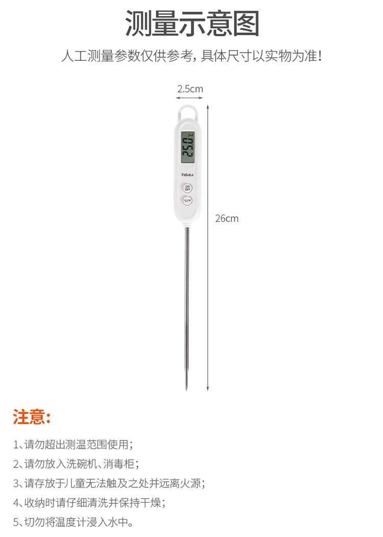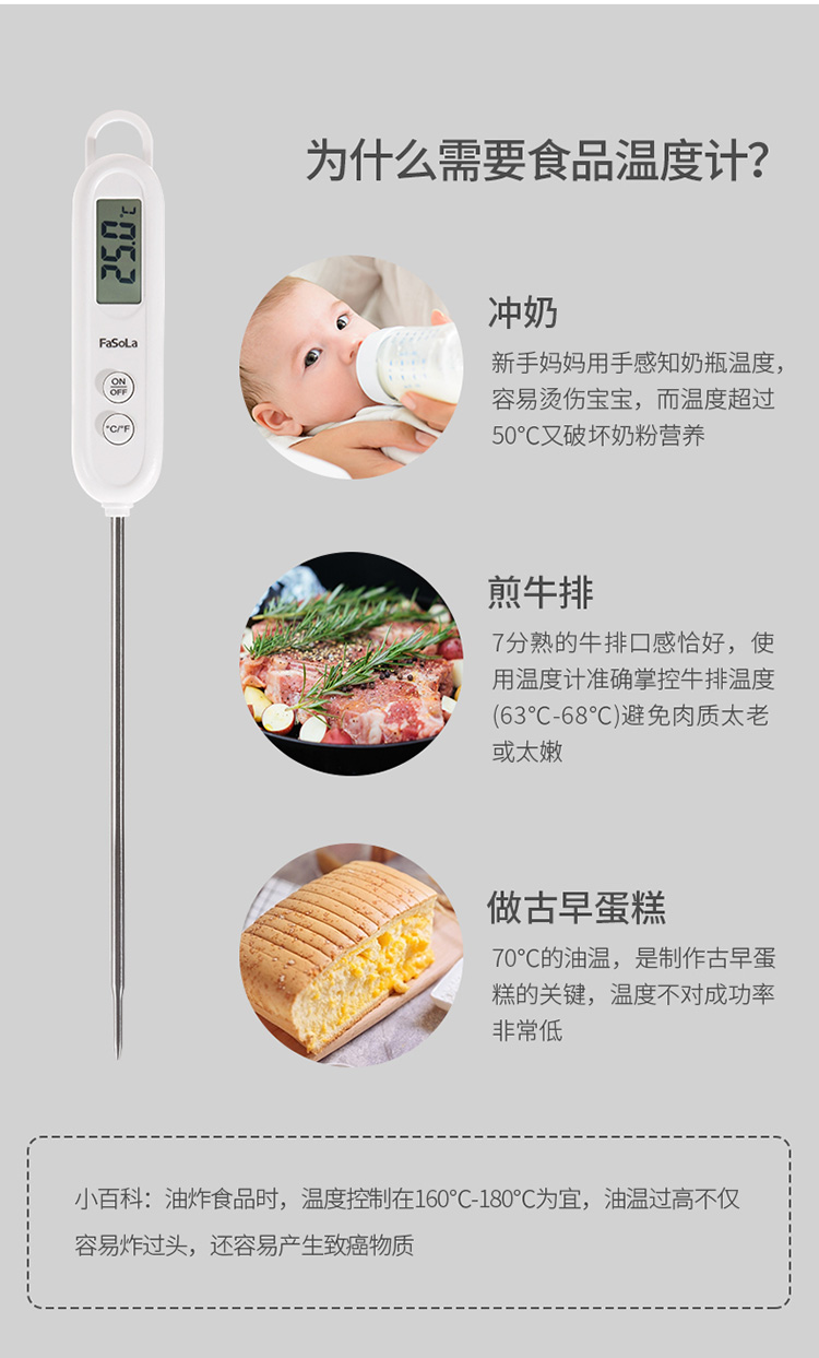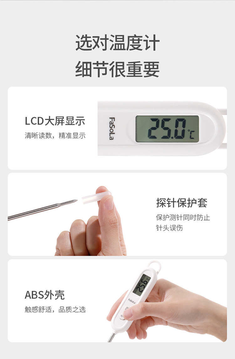 FaSoLa 食品温度计水温计 测水温奶温婴儿宝宝洗澡厨房食品烘焙测油温