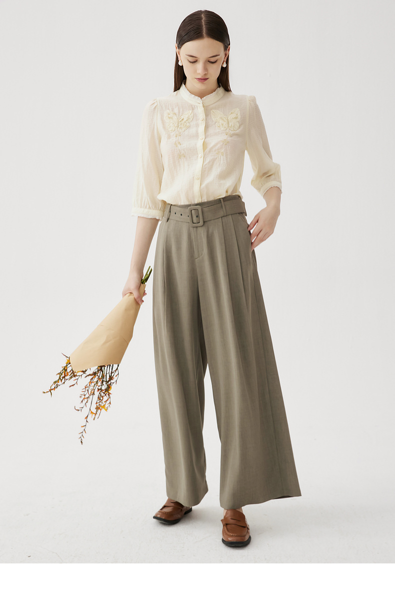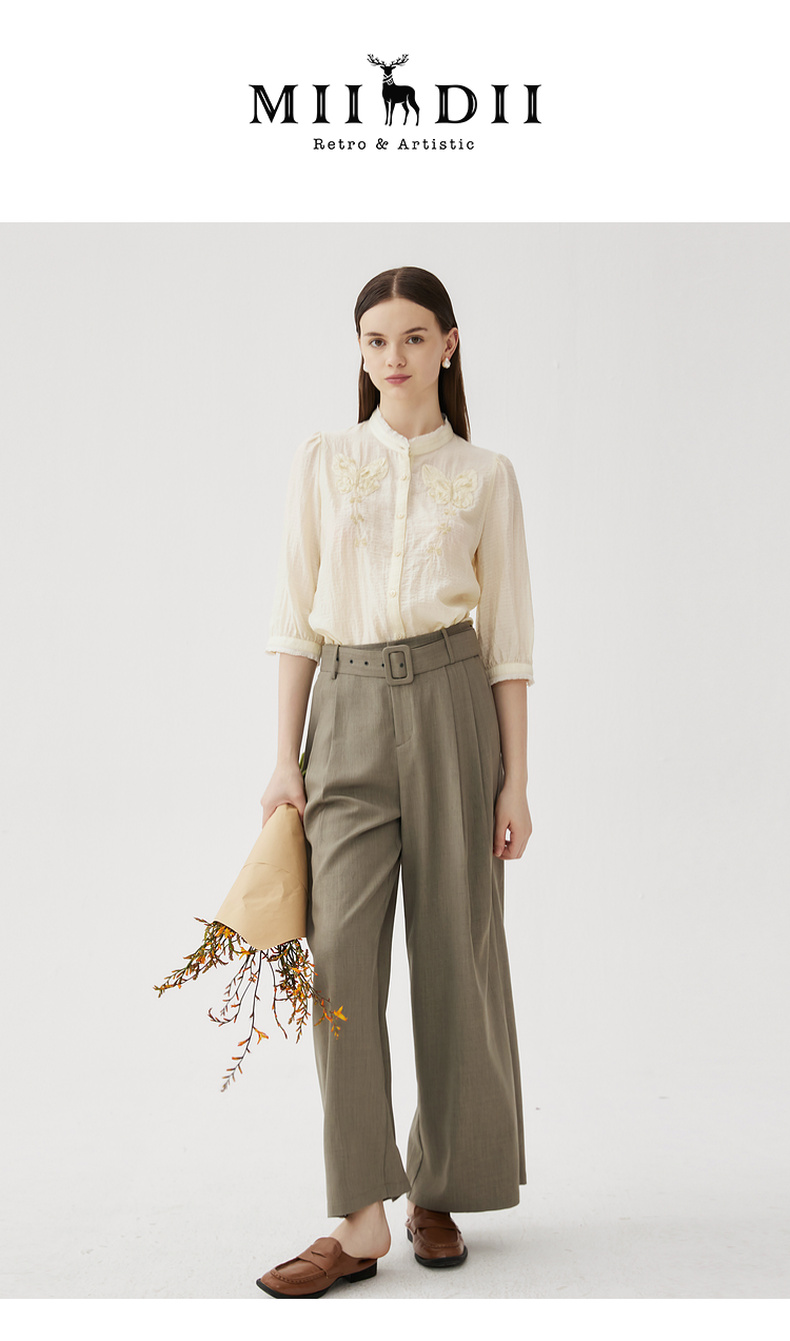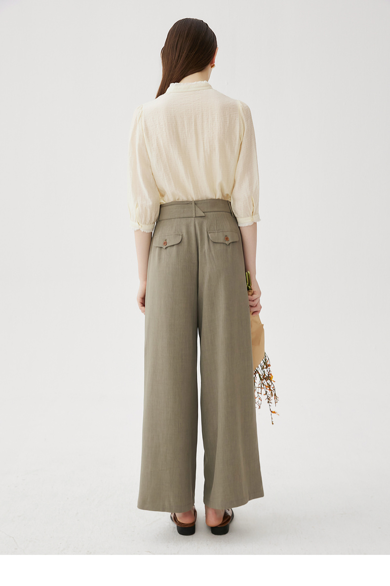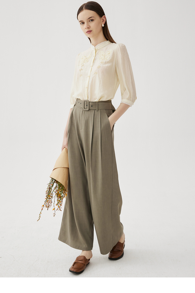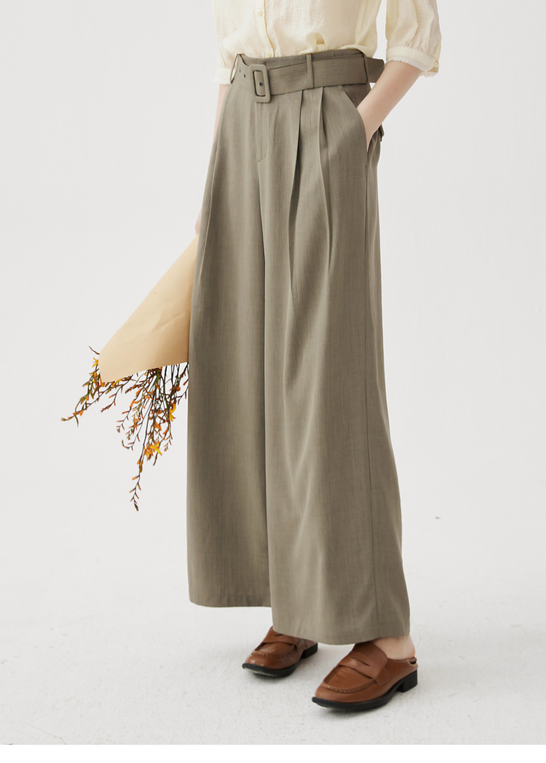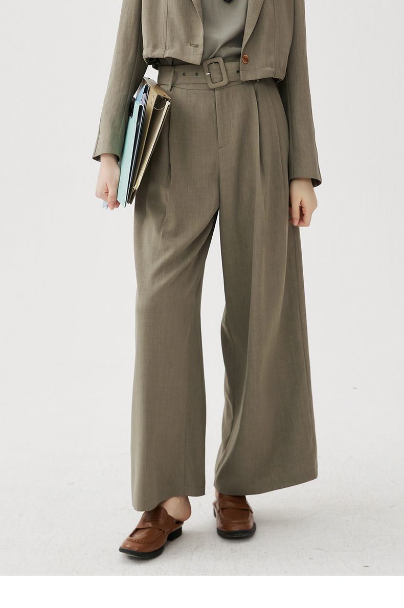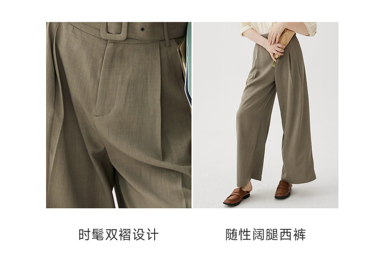 谜底阔腿裤女2024秋季新品通勤风优雅松弛感长裤配腰带243MK1073