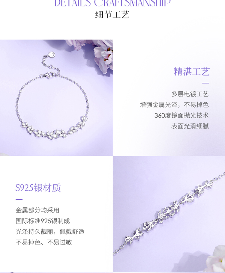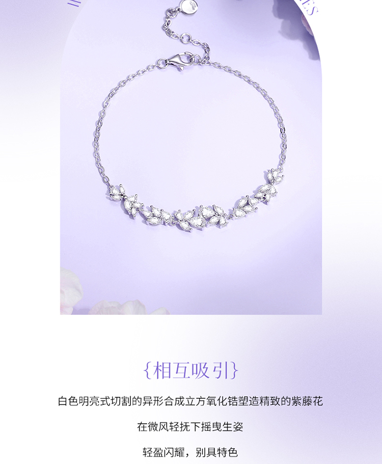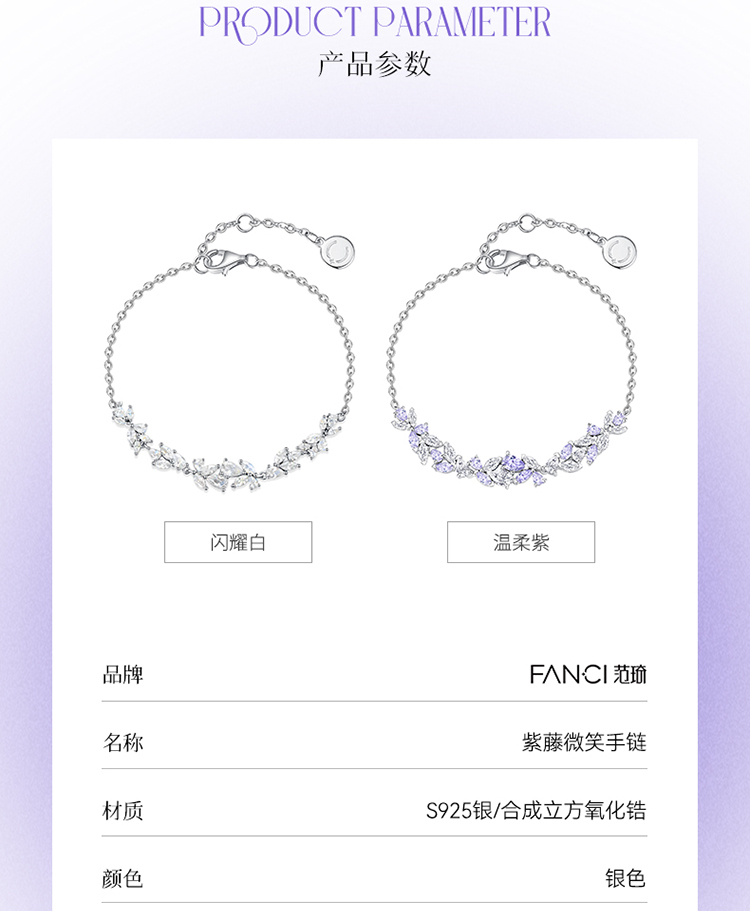 【明星同款】Fanci范琦紫藤花微笑手链女银小众设计生日送女友纪念日闺蜜毕业礼物