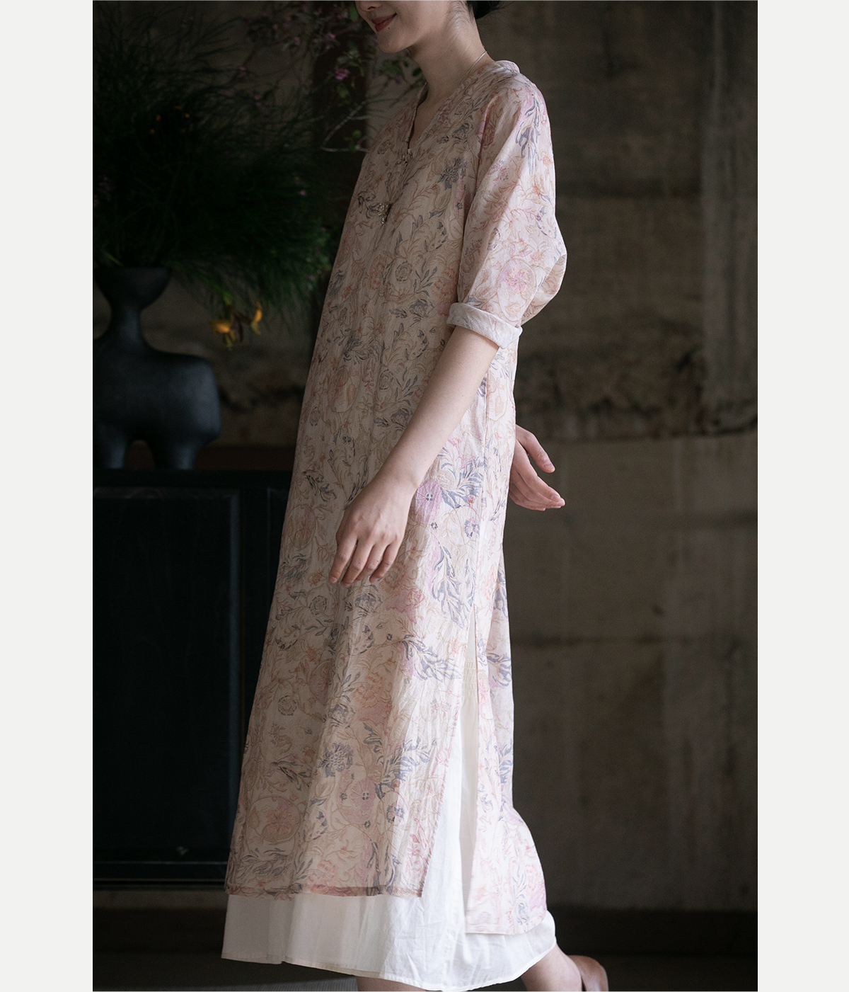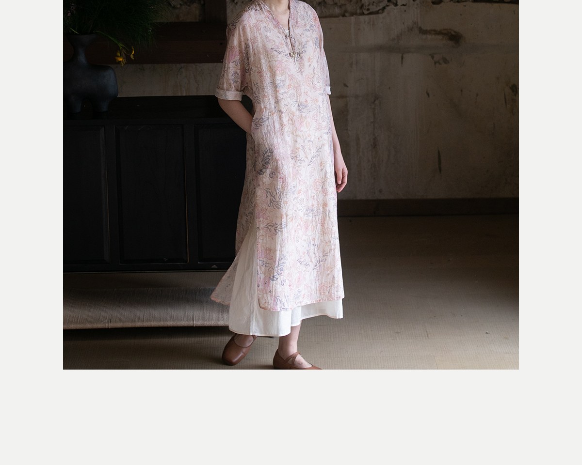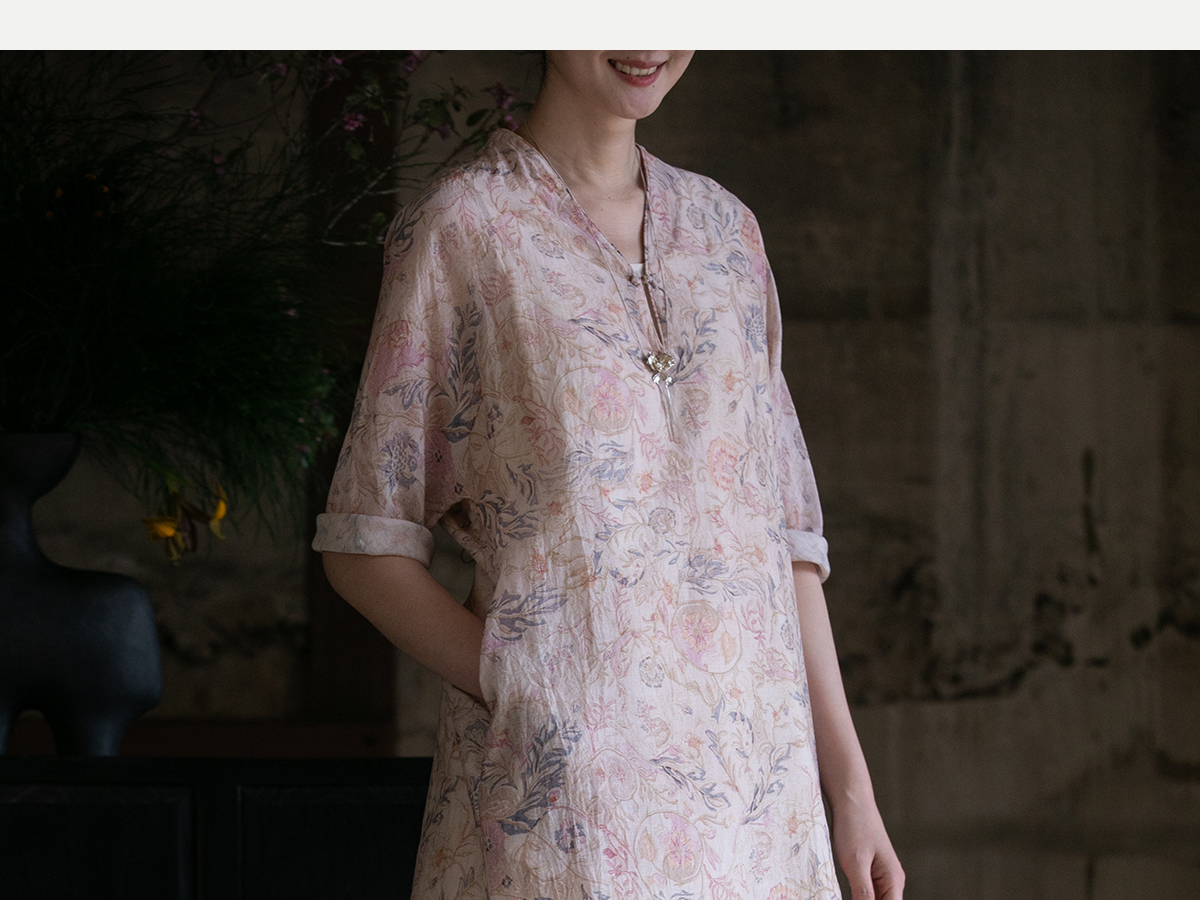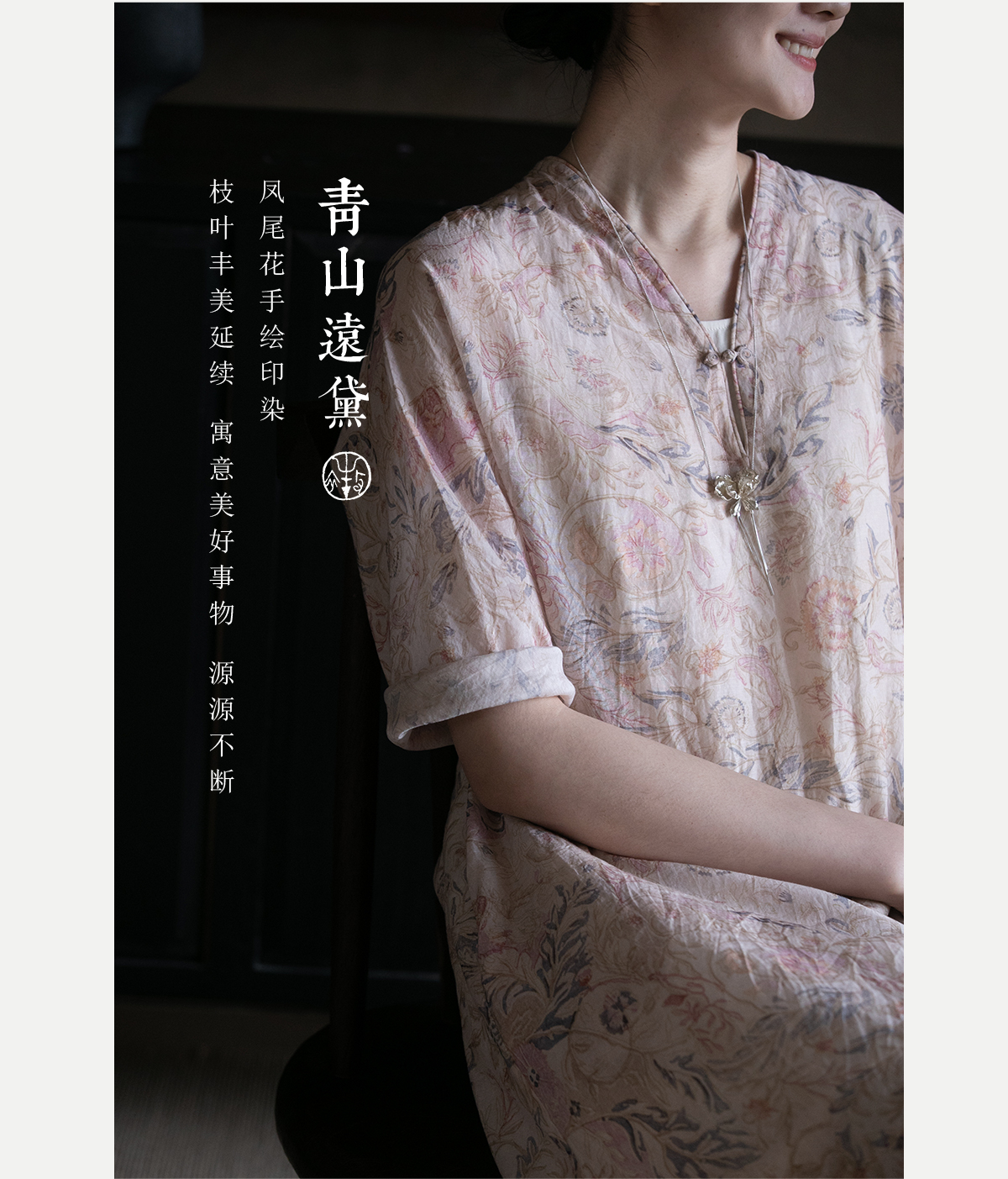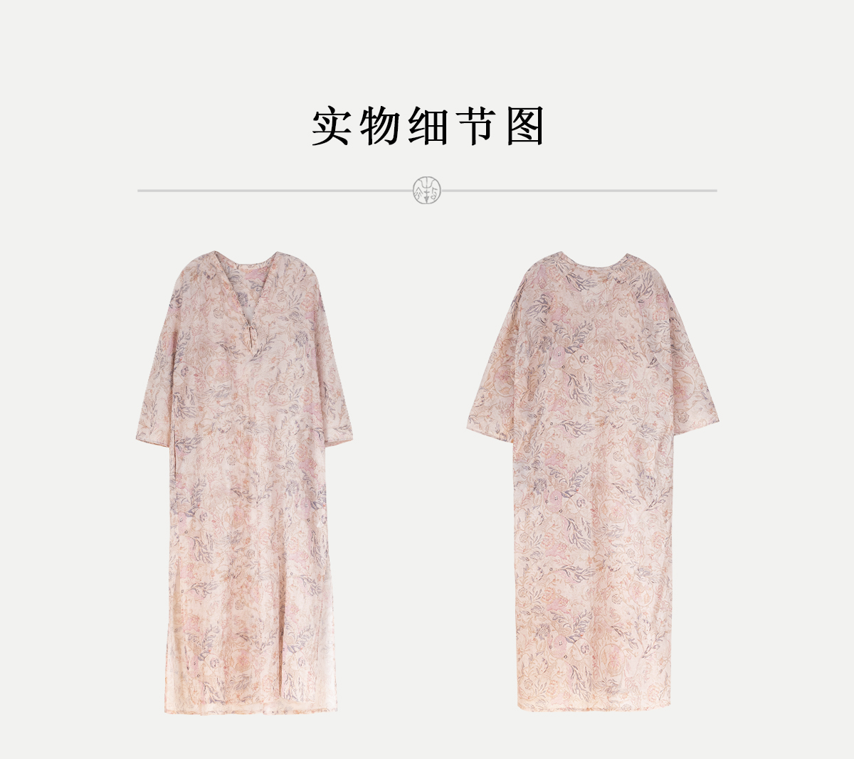 牧衣游原创 丝棉印染连衣裙夏轻薄柔软V领宽松文艺长裙 椒聊之实