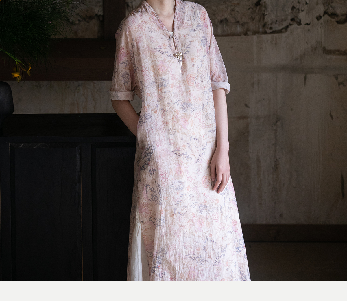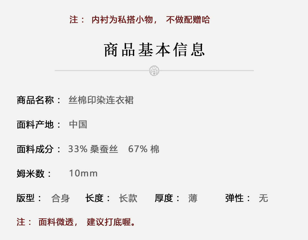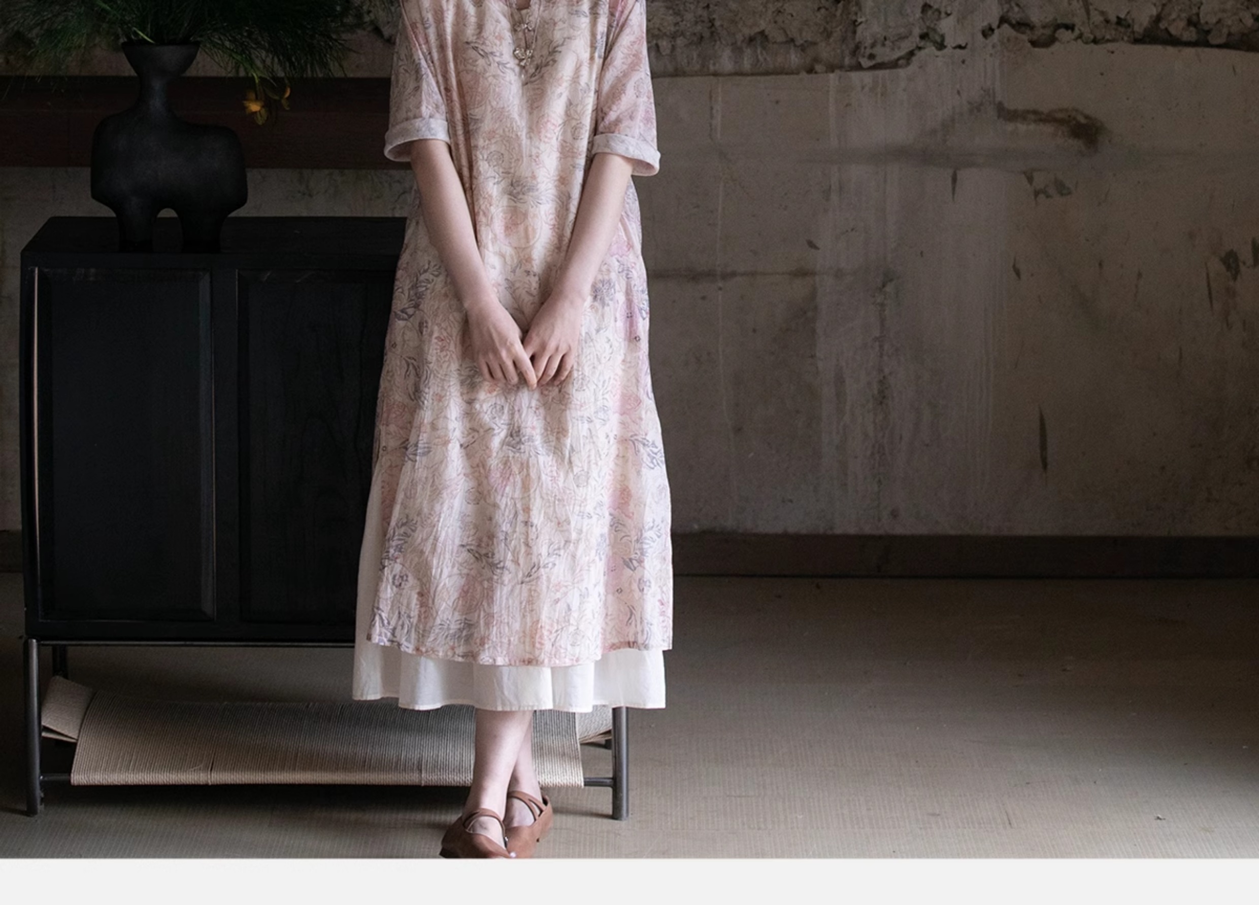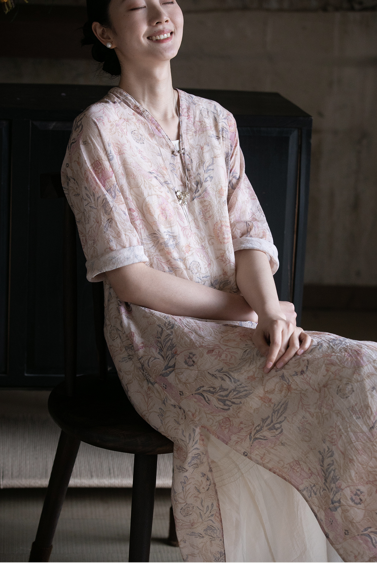 牧衣游原创 丝棉印染连衣裙夏轻薄柔软V领宽松文艺长裙 椒聊之实