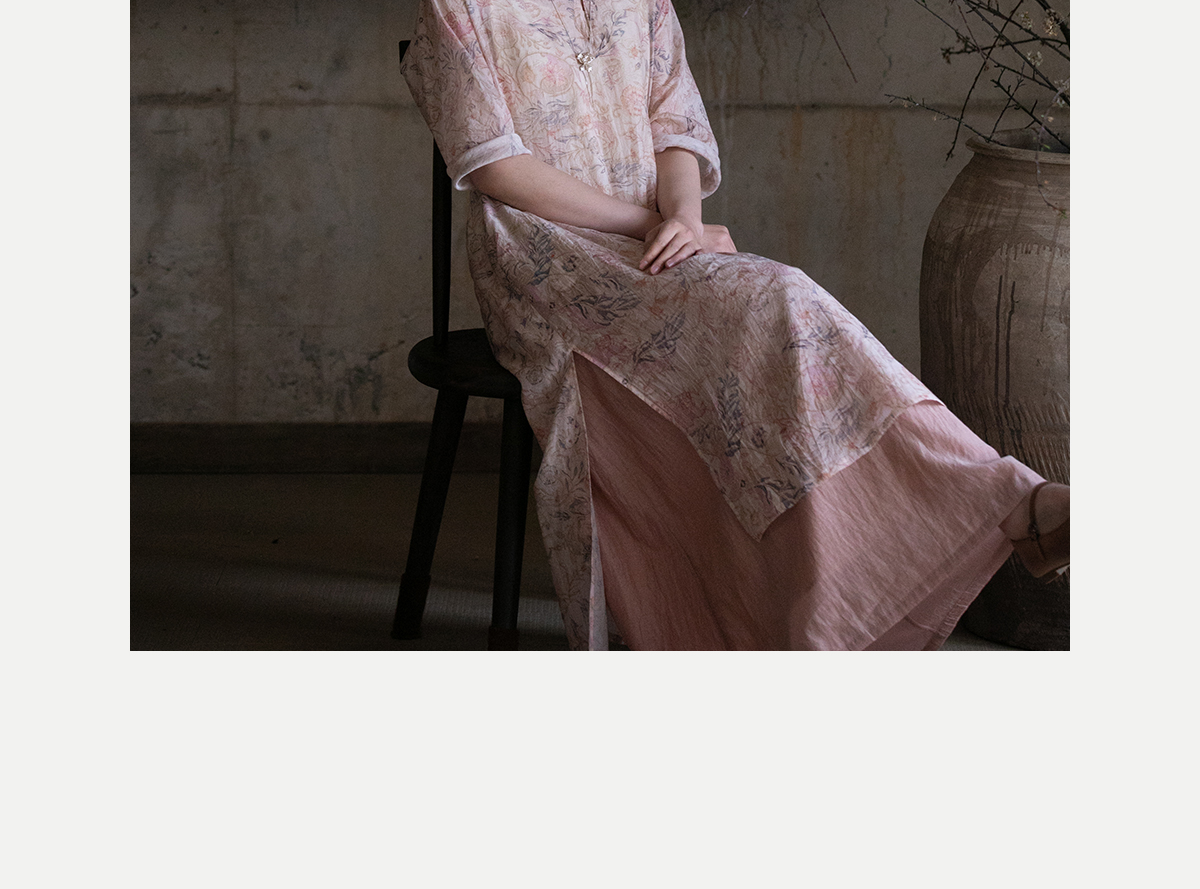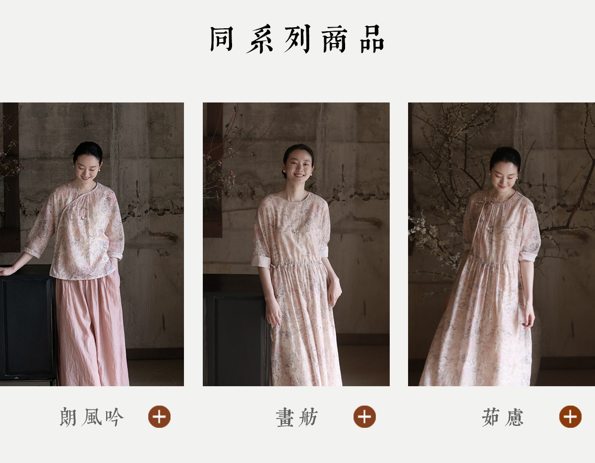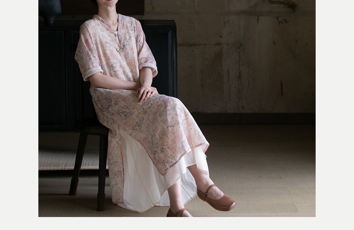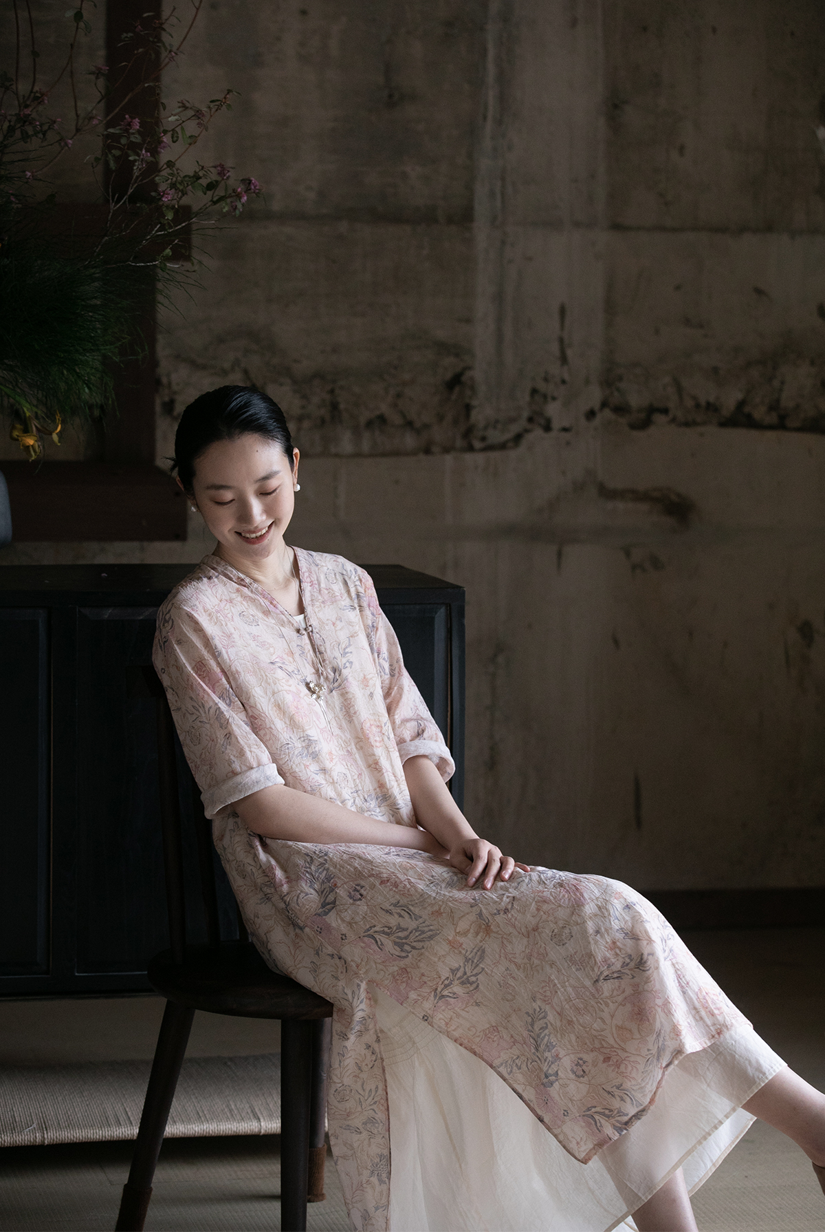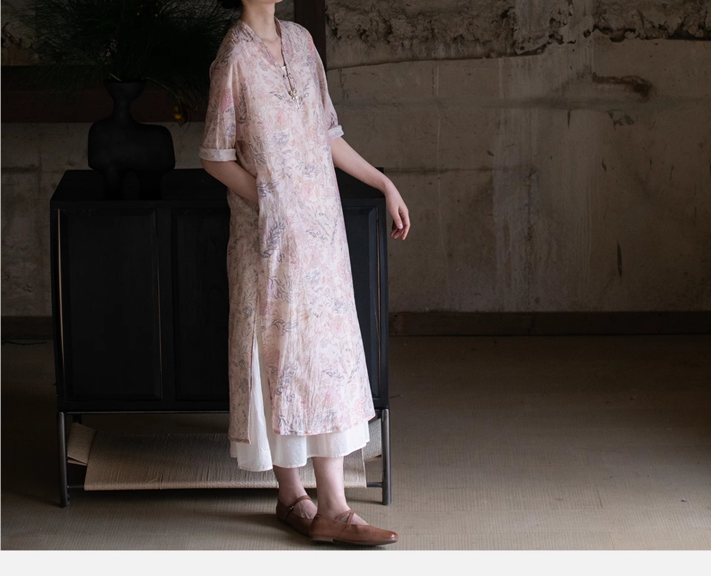 牧衣游原创 丝棉印染连衣裙夏轻薄柔软V领宽松文艺长裙 椒聊之实