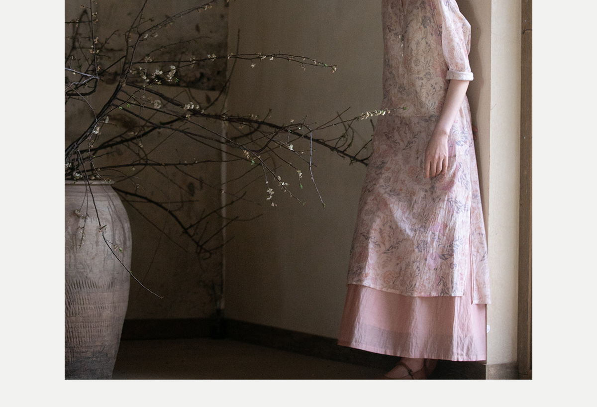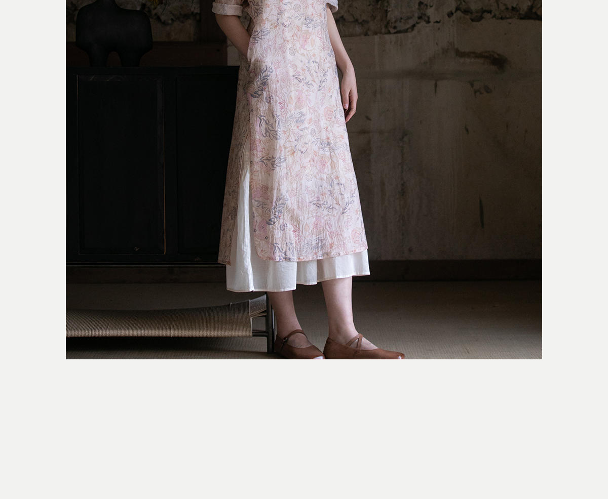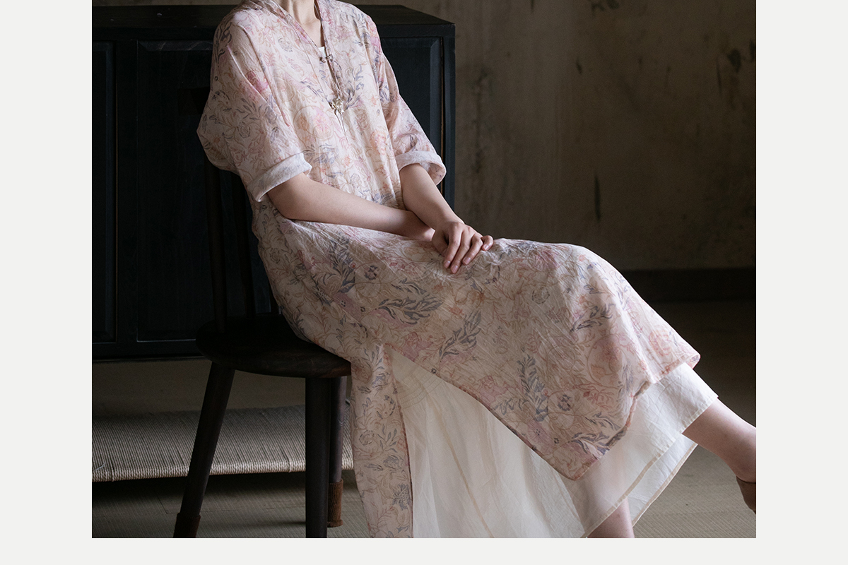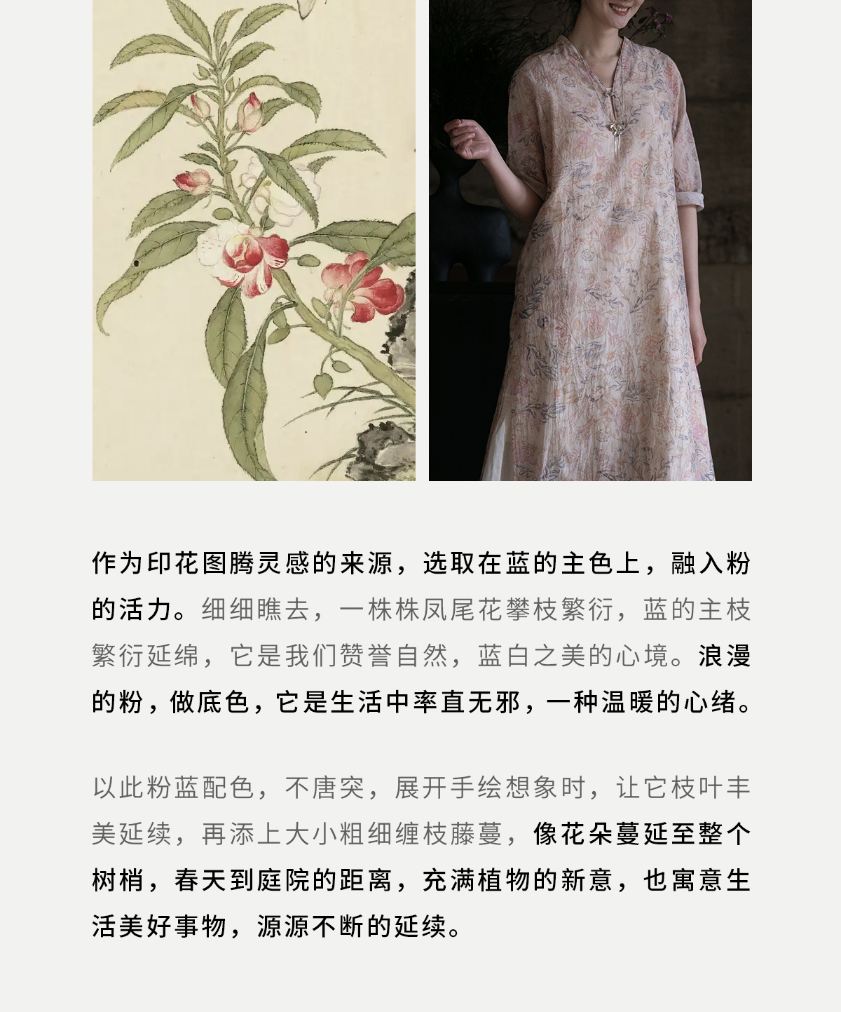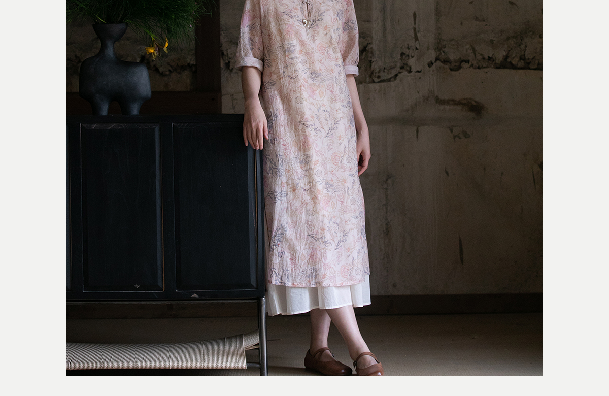 牧衣游原创 丝棉印染连衣裙夏轻薄柔软V领宽松文艺长裙 椒聊之实