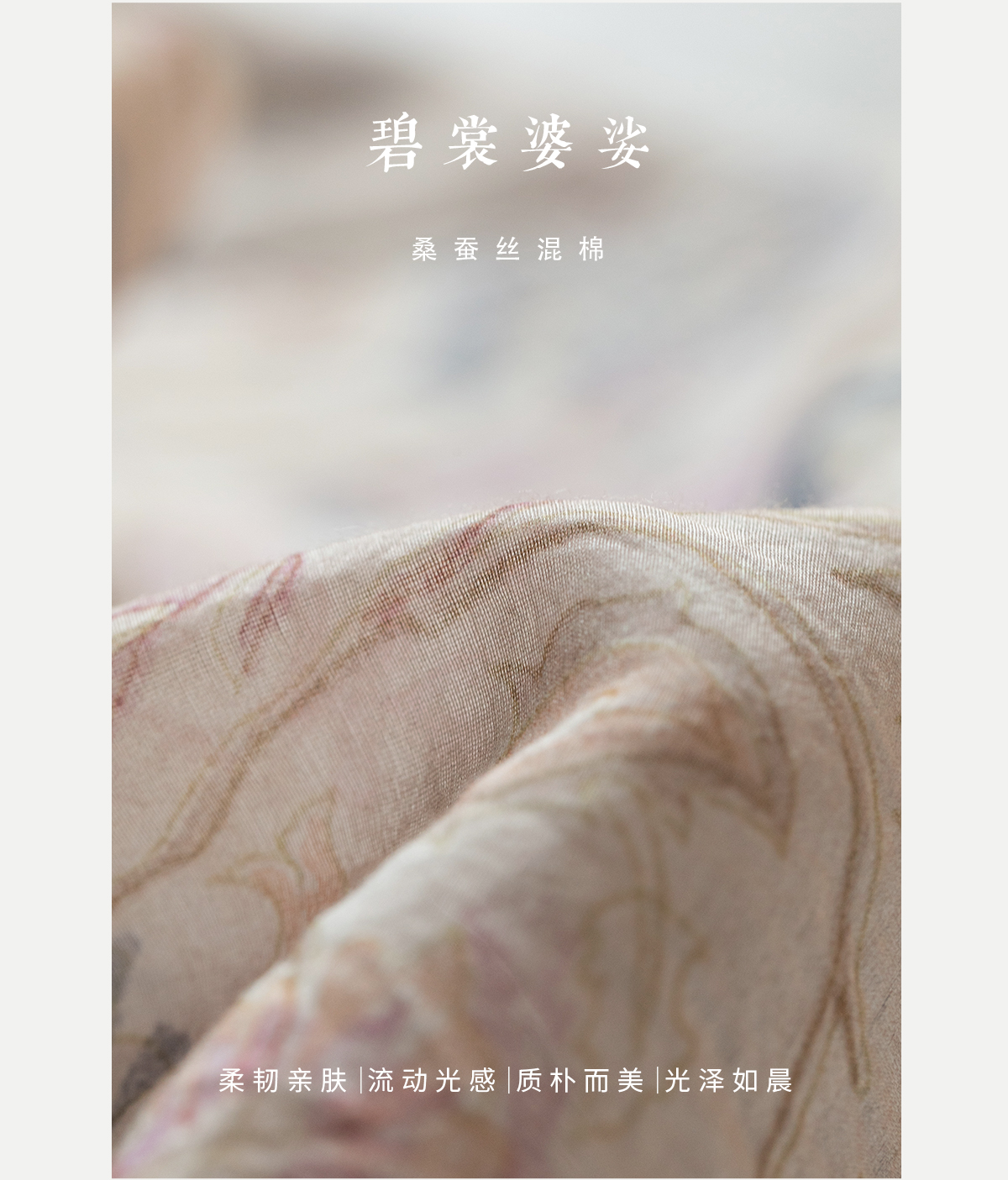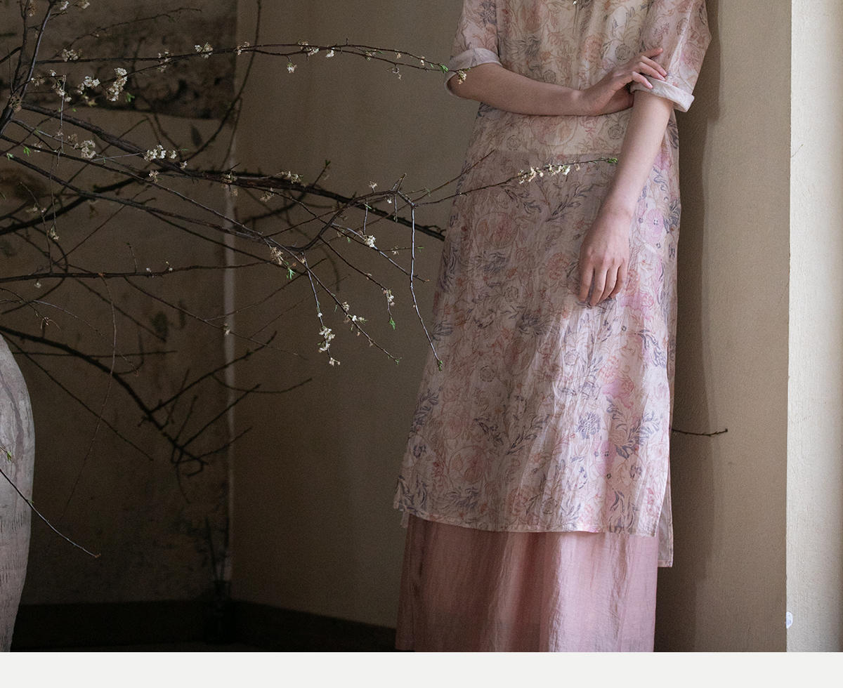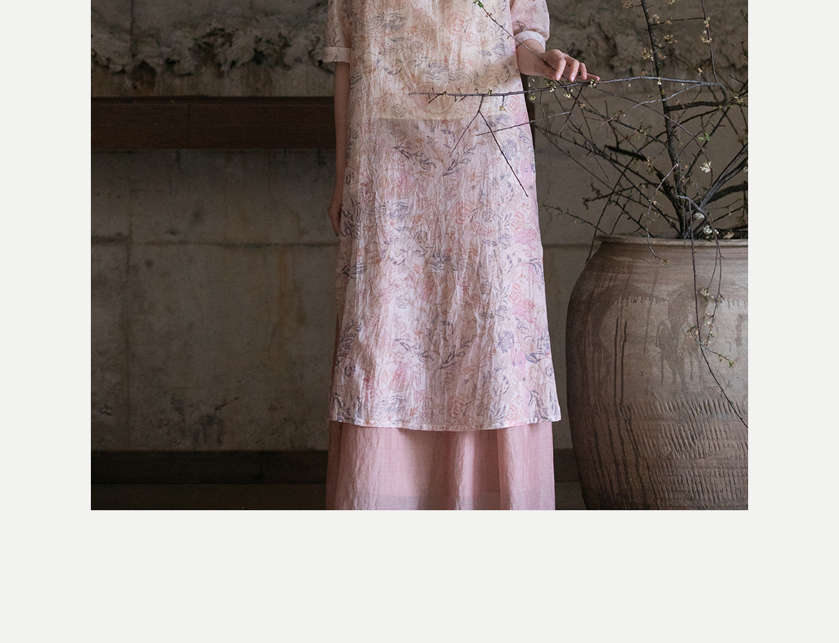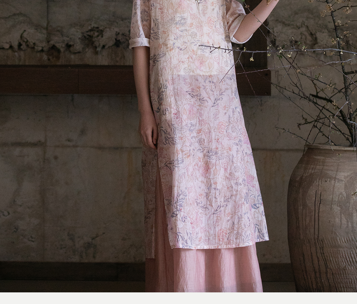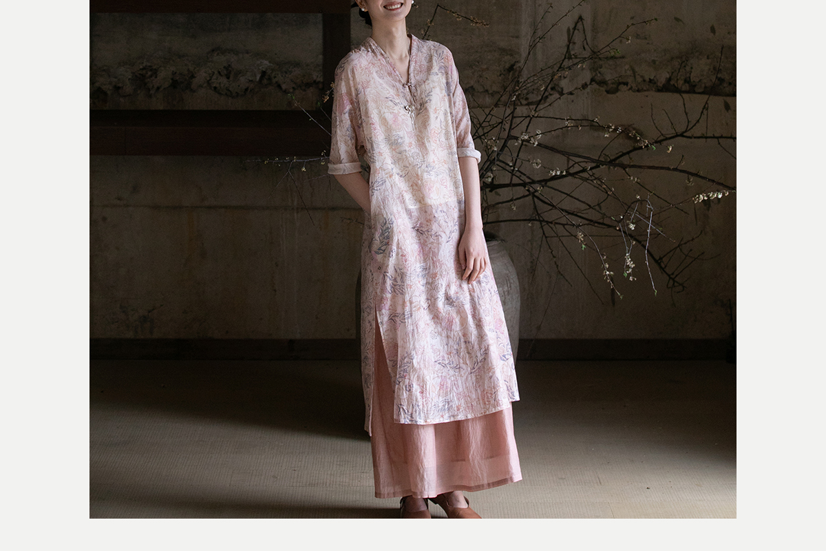 牧衣游原创 丝棉印染连衣裙夏轻薄柔软V领宽松文艺长裙 椒聊之实