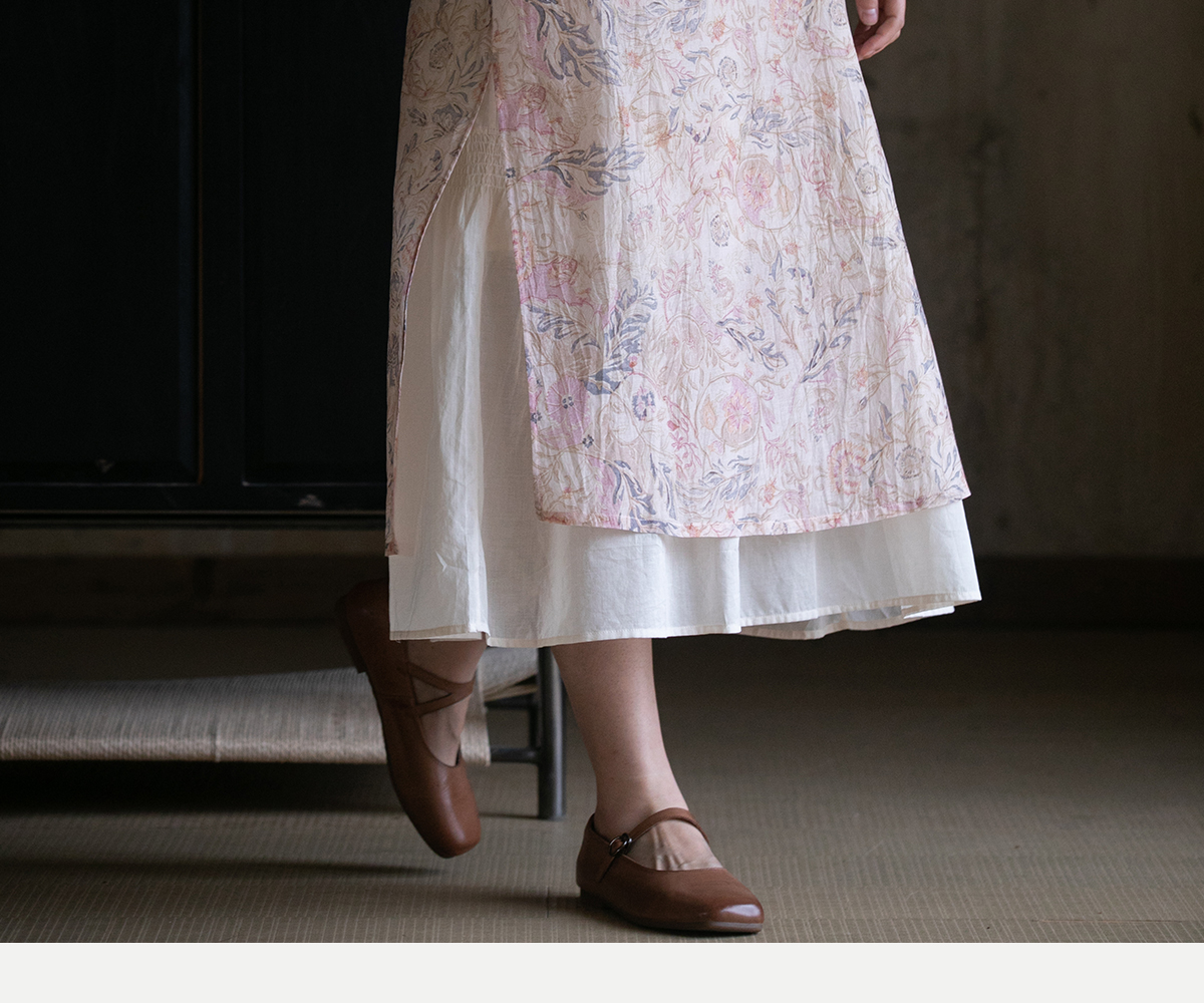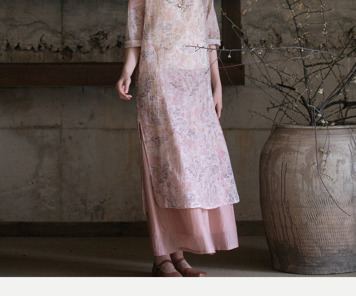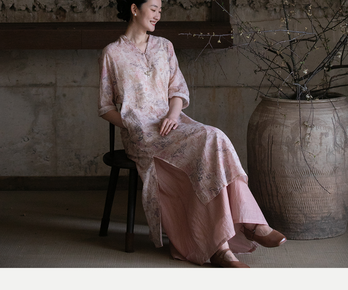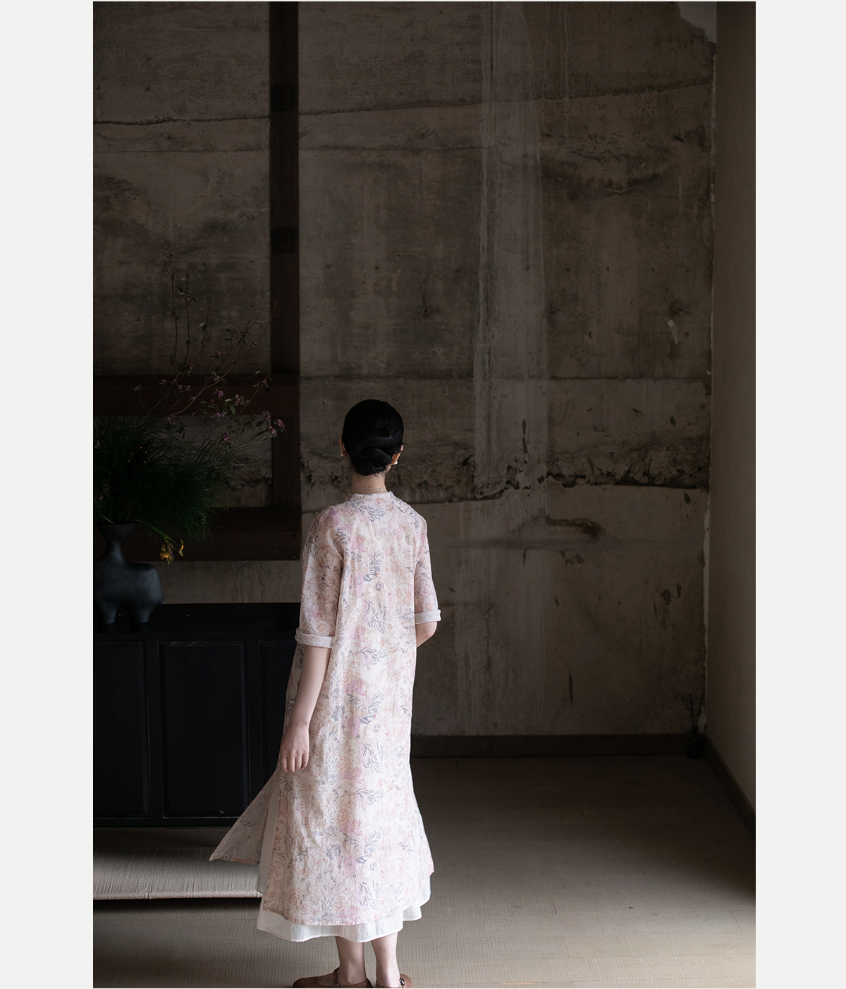 牧衣游原创 丝棉印染连衣裙夏轻薄柔软V领宽松文艺长裙 椒聊之实