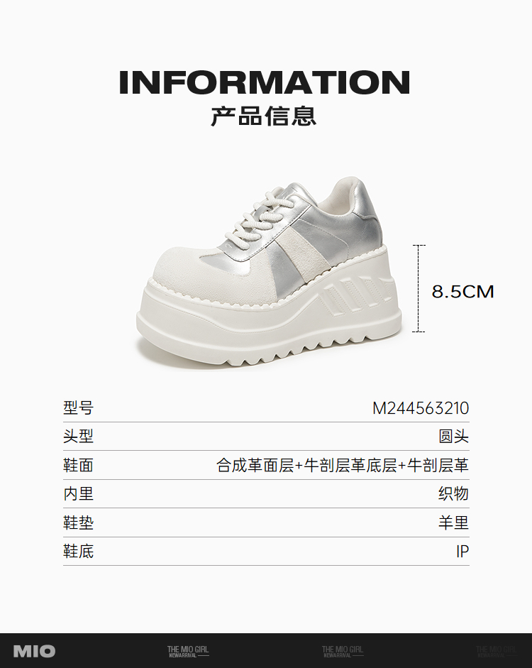 MIO米奥秋季撞色设计厚底显高牛津鞋时尚小众潮流单鞋M244563210