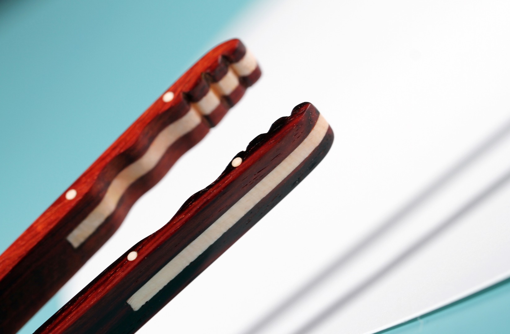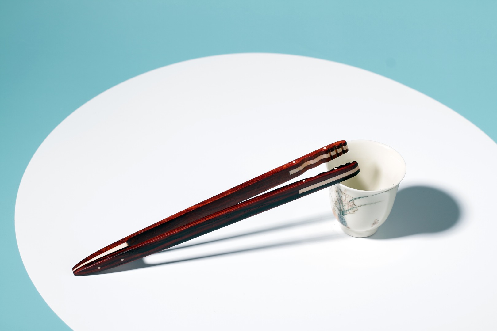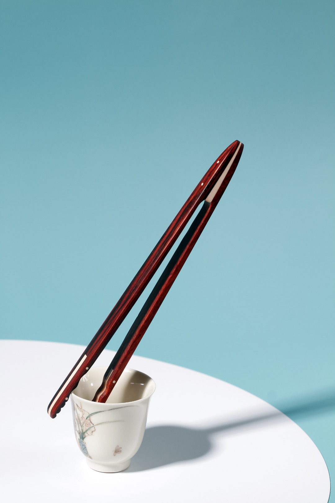 茶夹以紫檀+鹿角制作,紫檀触感细腻,纹理自然,鹿角分别穿插嵌入3个支撑点位,无缝平整,形成经典的撞色搭配,款式简洁大方,波浪式齿纹设计,夹取牢固,使用方便。