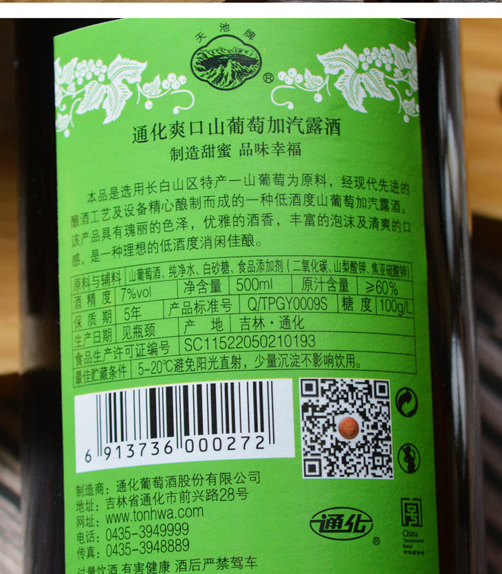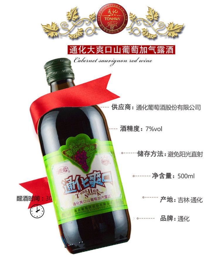 通化爽口山葡萄加汽露酒(甜型) 整箱12瓶*500ml包邮