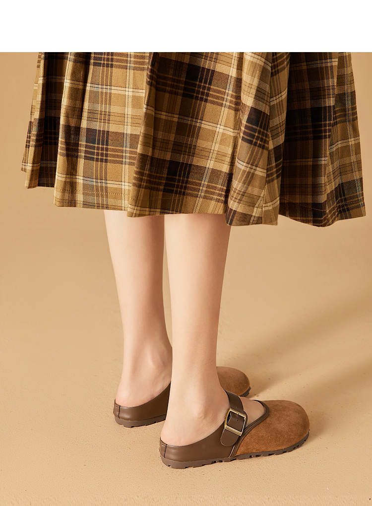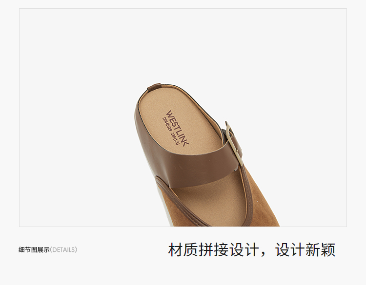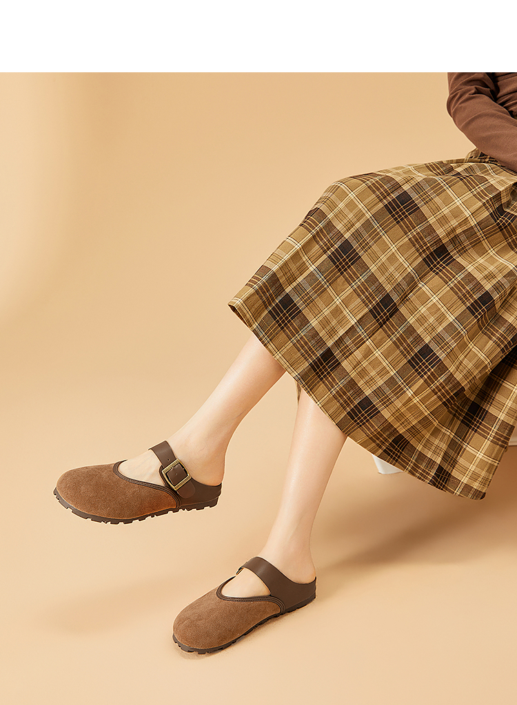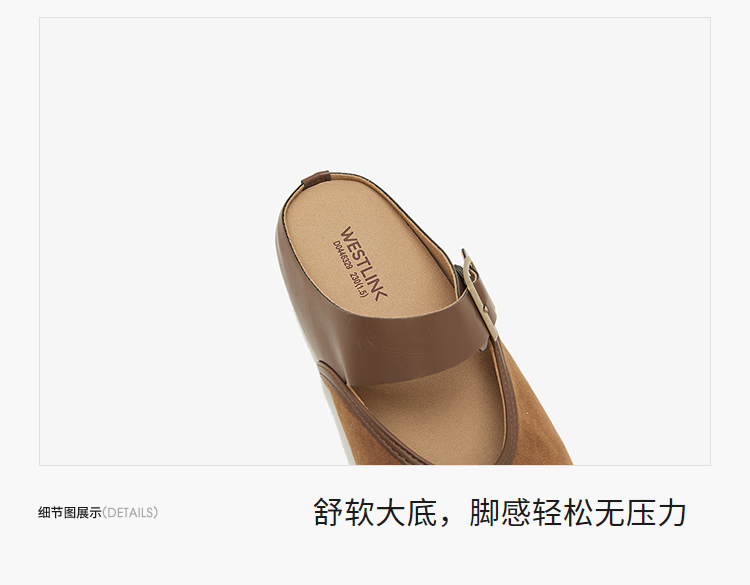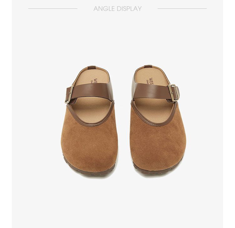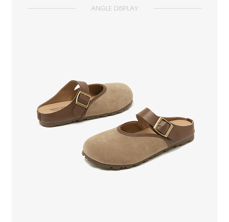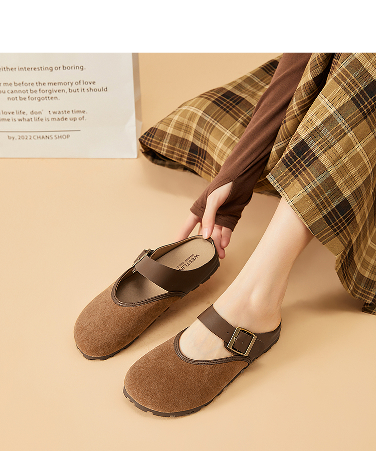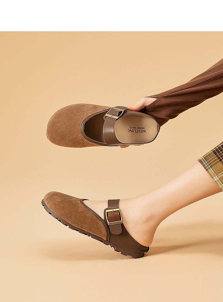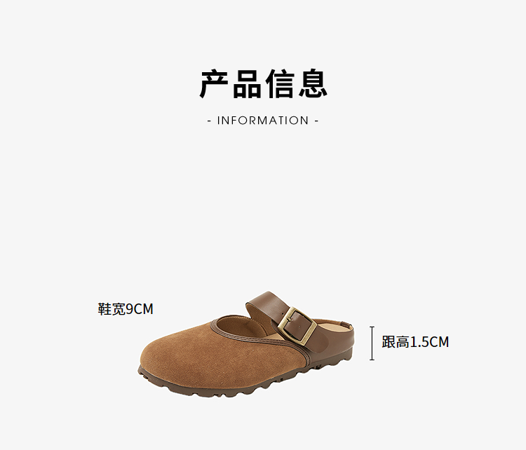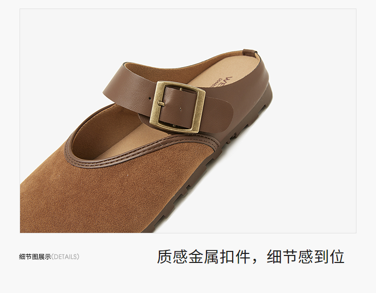 西遇包头半拖鞋女新款日系复古棕色懒人平底穆勒鞋勃肯鞋D0446329