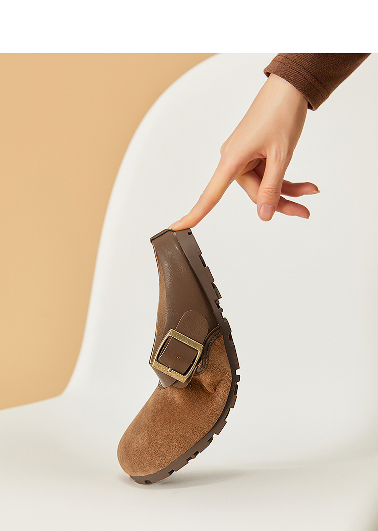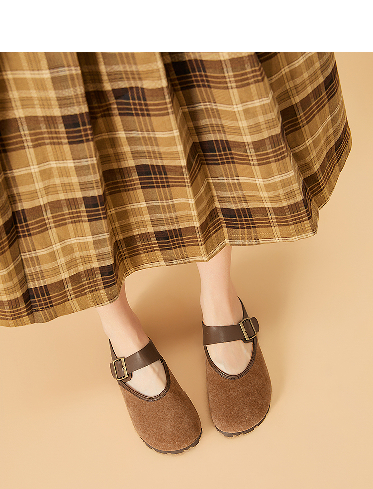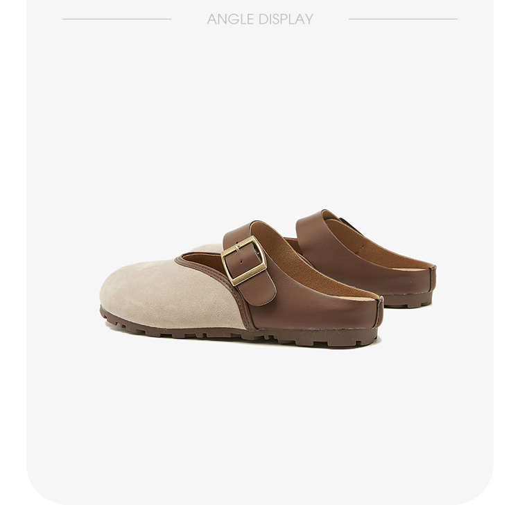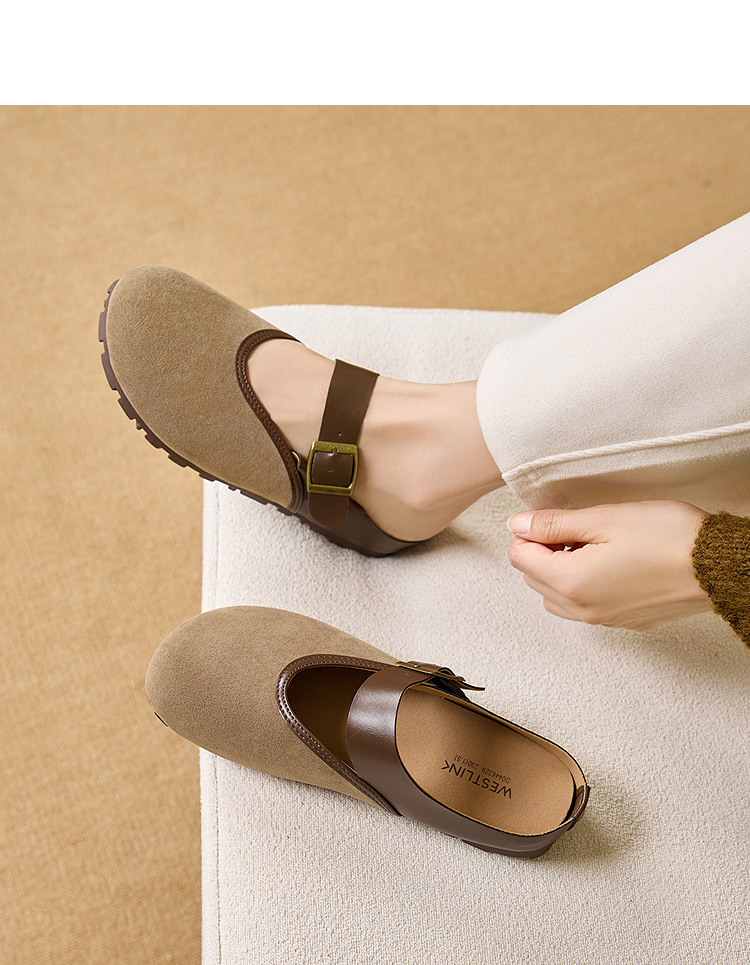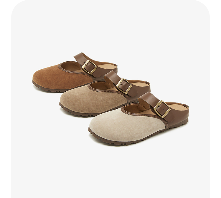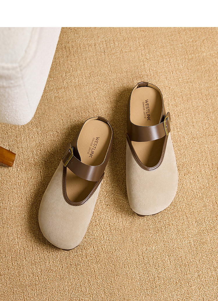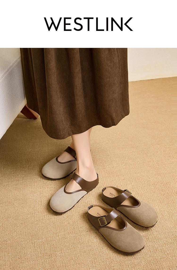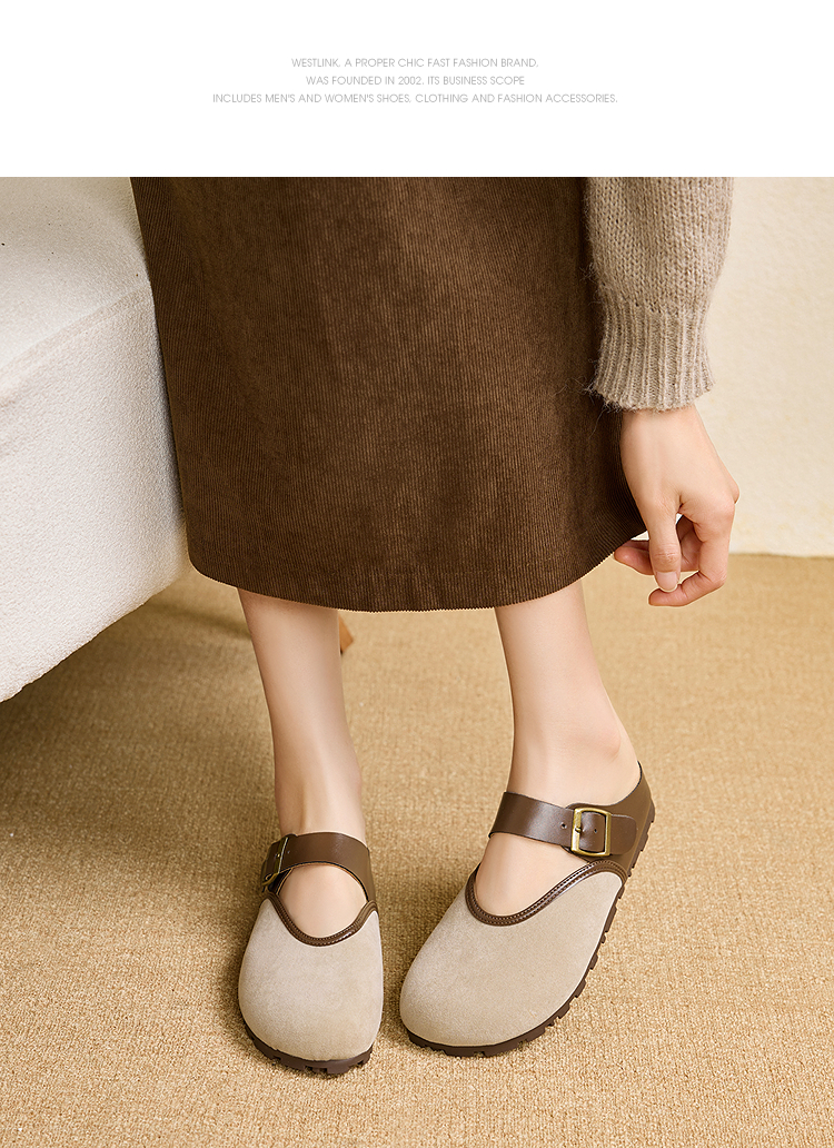 西遇包头半拖鞋女新款日系复古棕色懒人平底穆勒鞋勃肯鞋D0446329