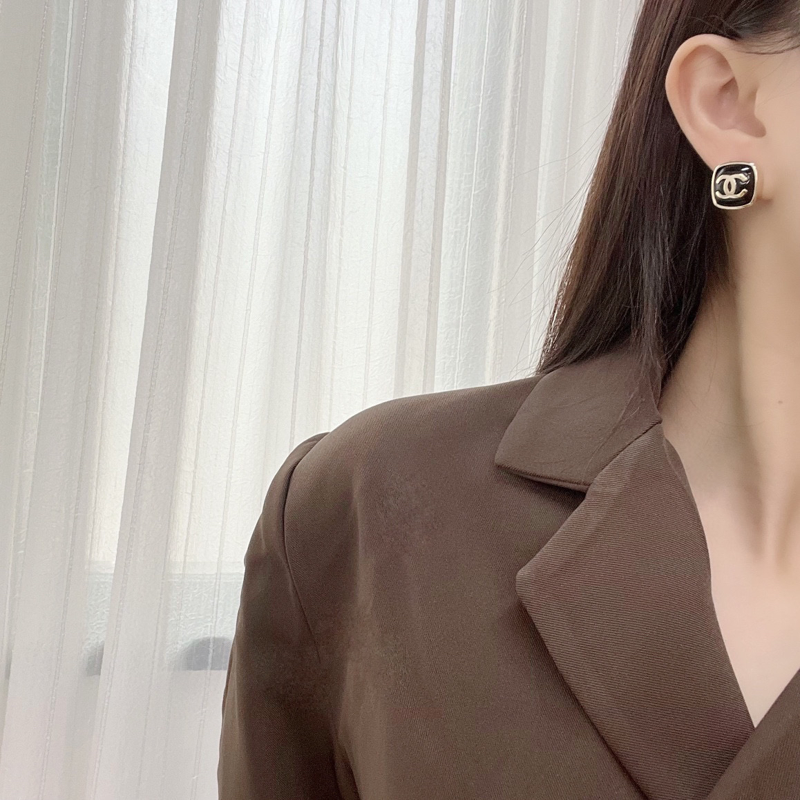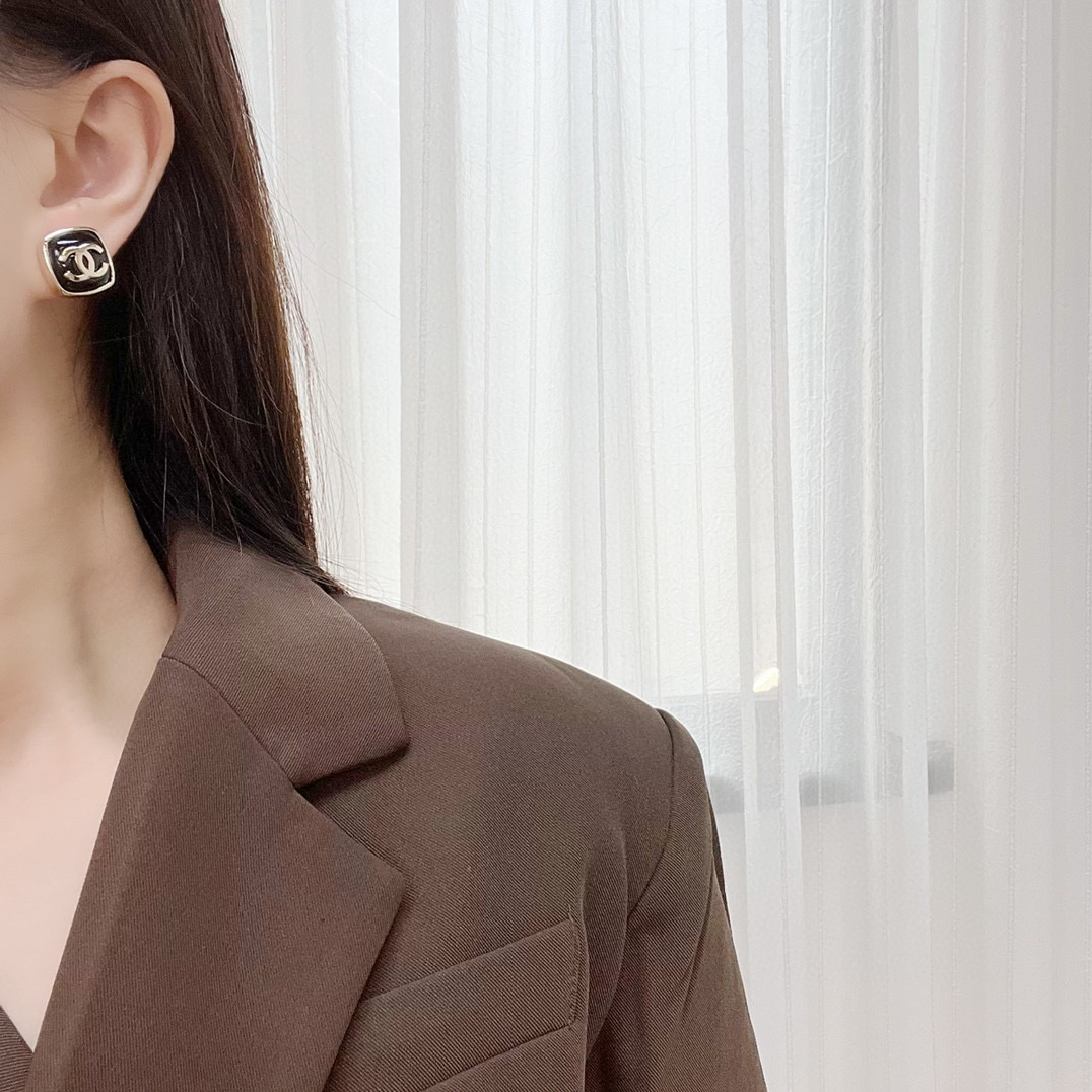 新款☑️CHANEL香奈儿c1双c方形耳钉耳环