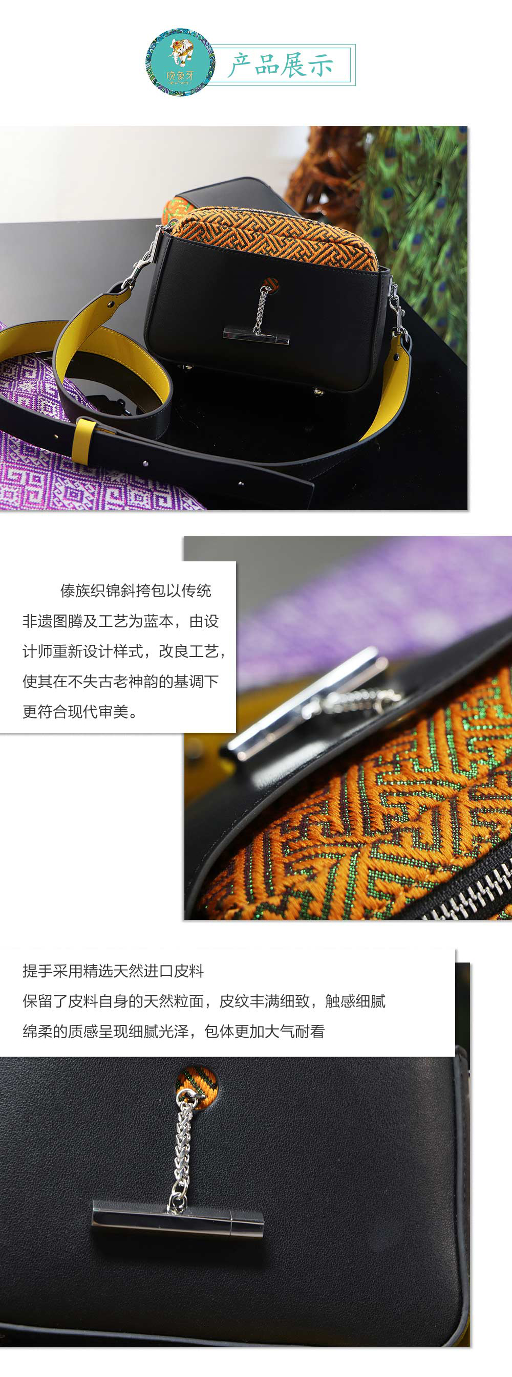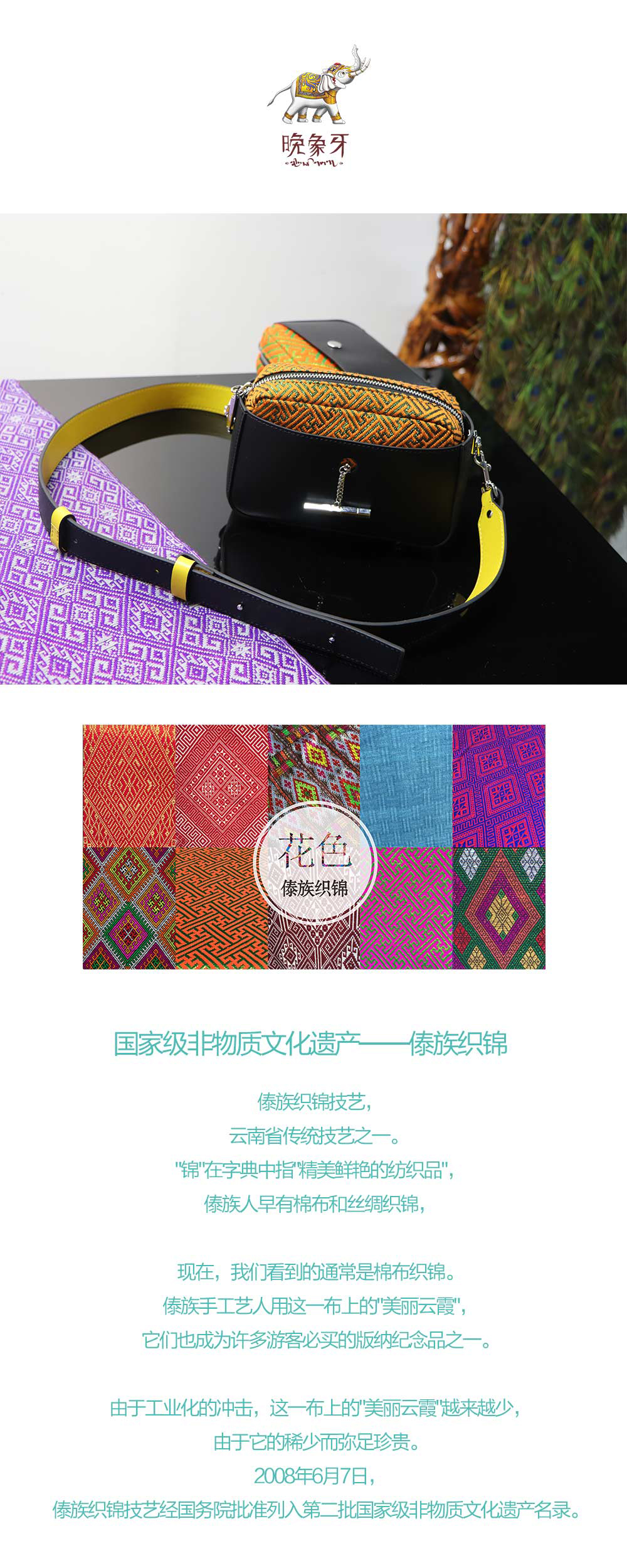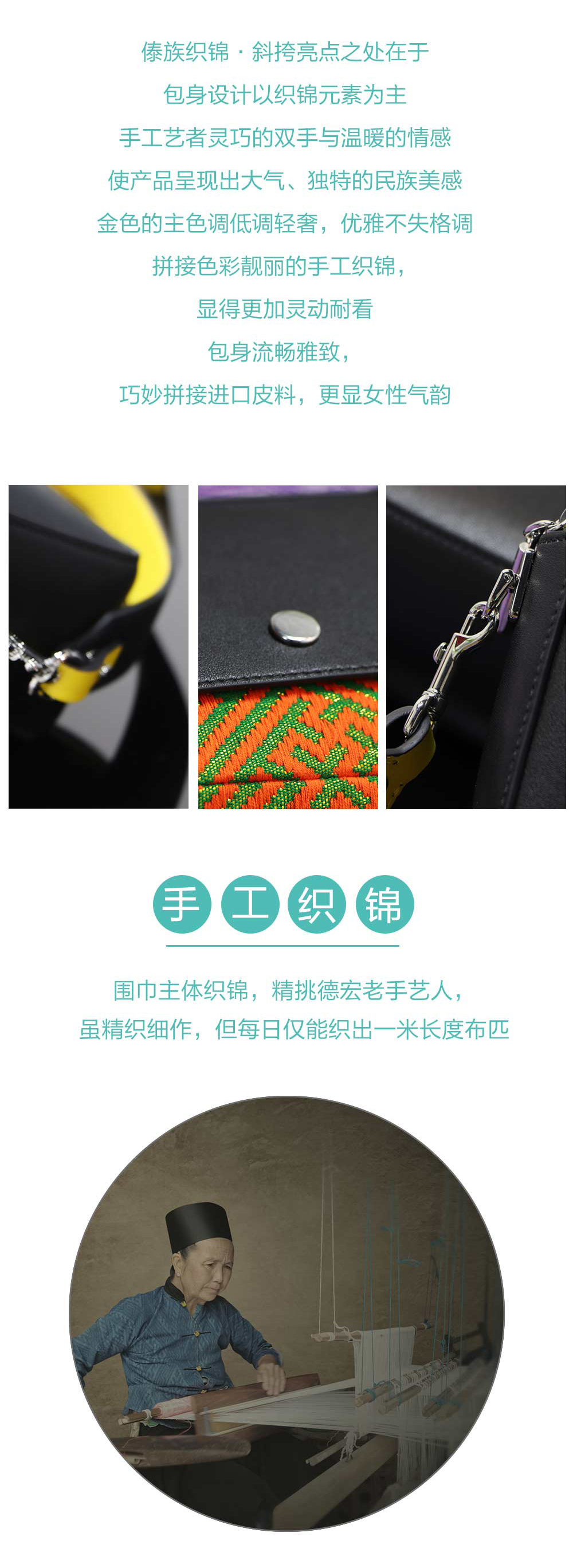 云南非遗傣族织锦方形挎包