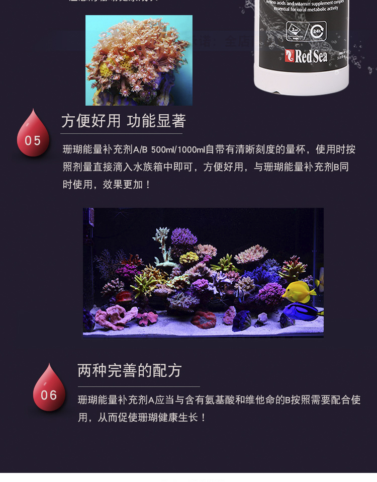 红海AB液体Red Sea珊瑚粮浓缩能量剂LPS SPS 营养液