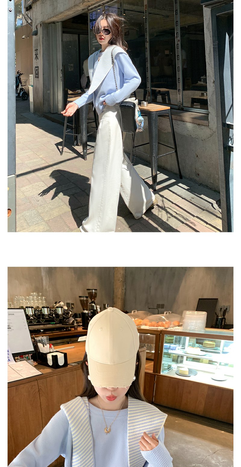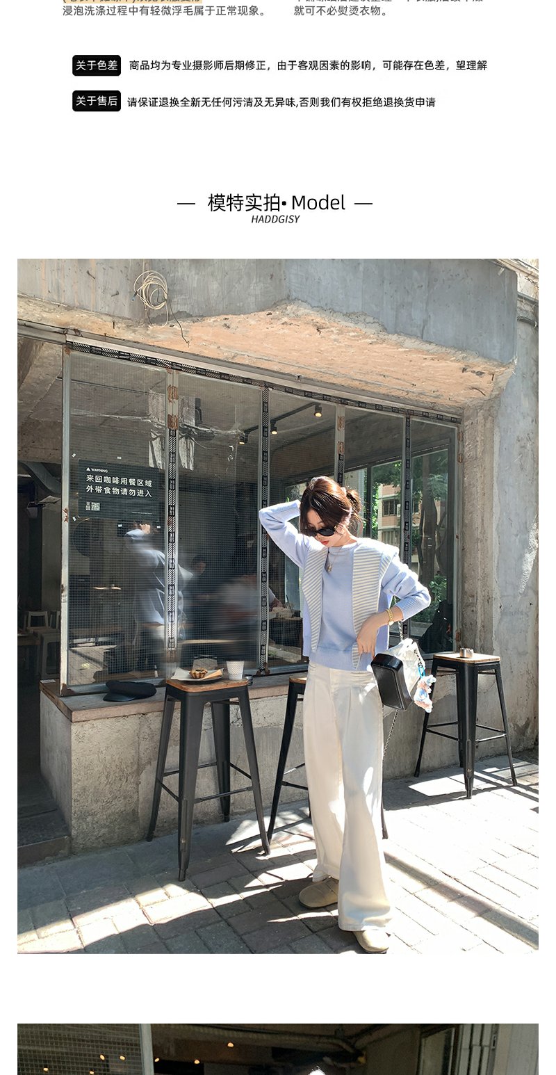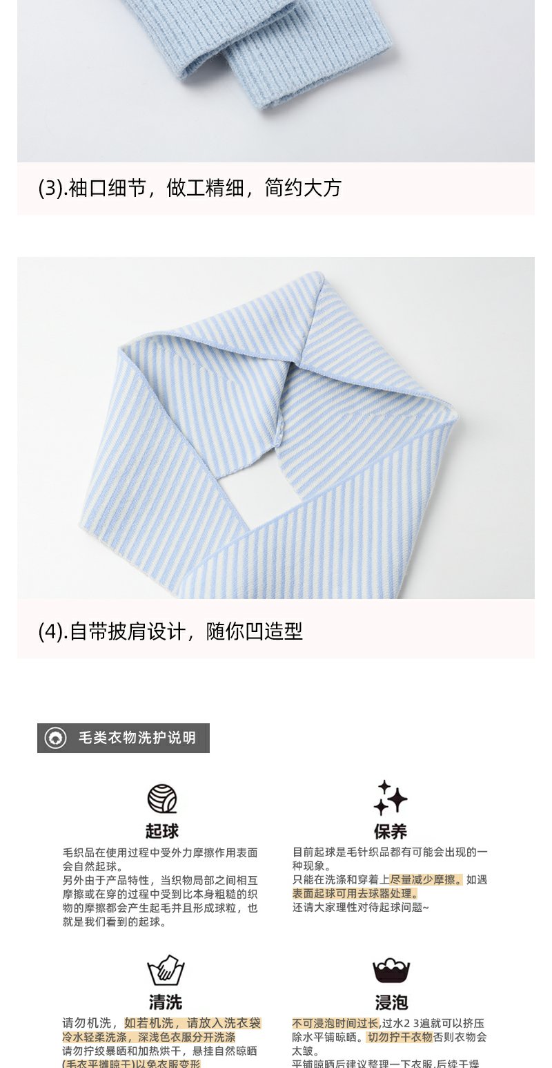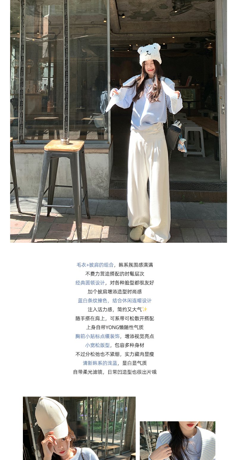 <曾小咸推荐>蓝色软糯宽松圆领毛衣条纹披肩