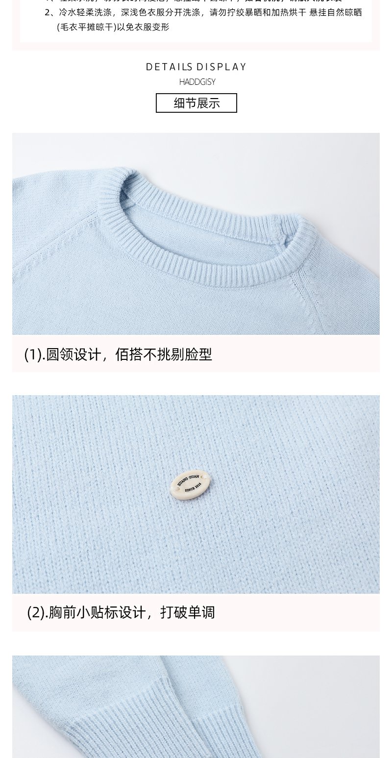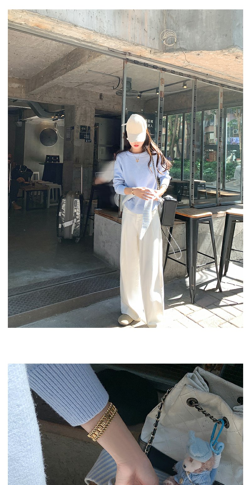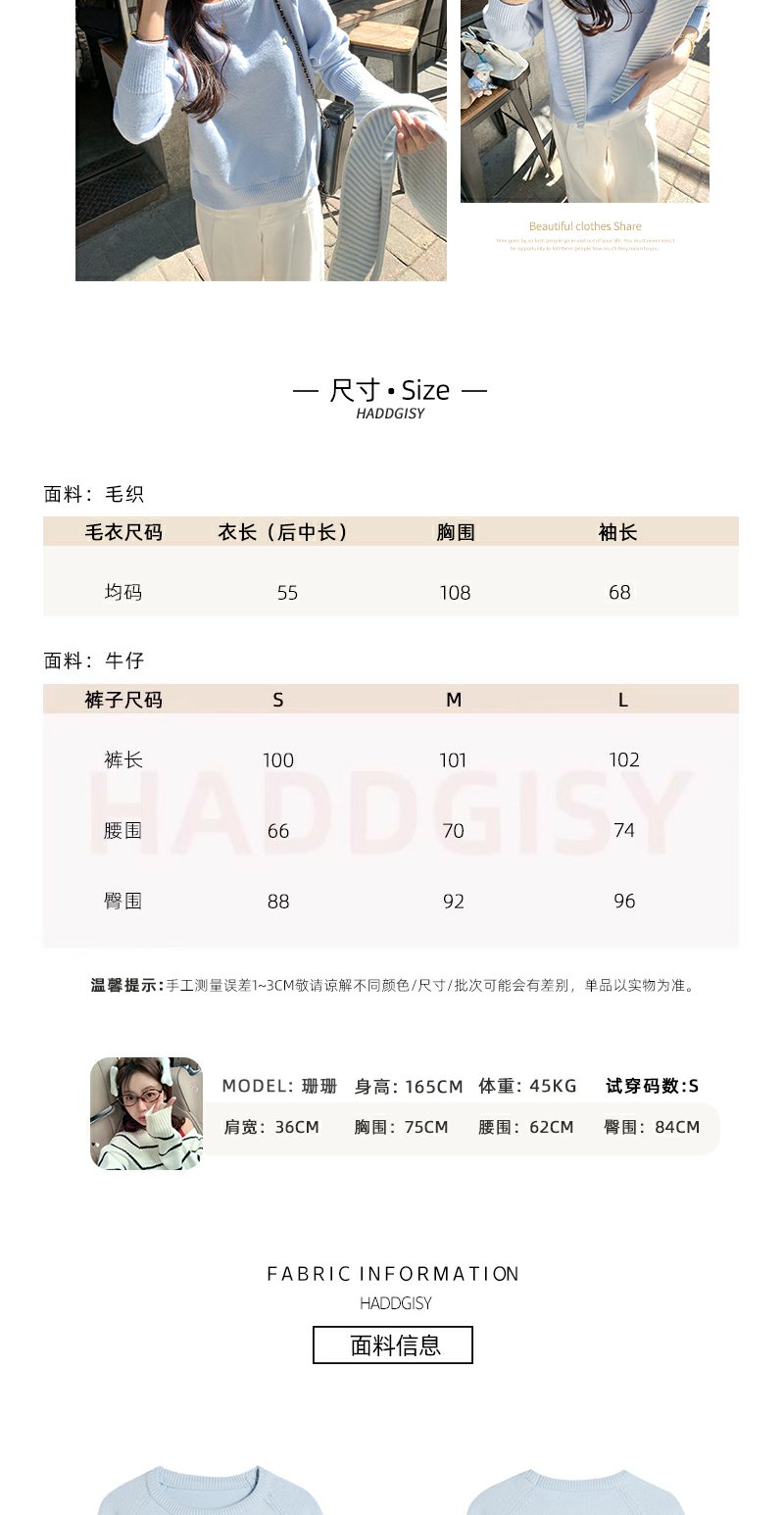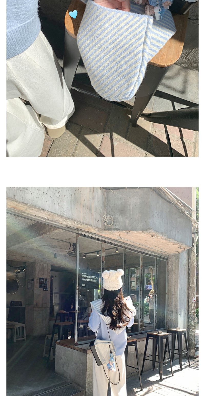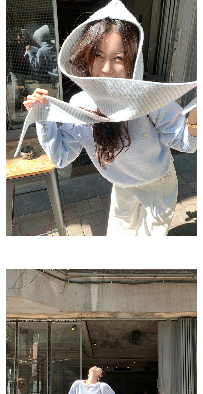 <曾小咸推荐>蓝色软糯宽松圆领毛衣条纹披肩