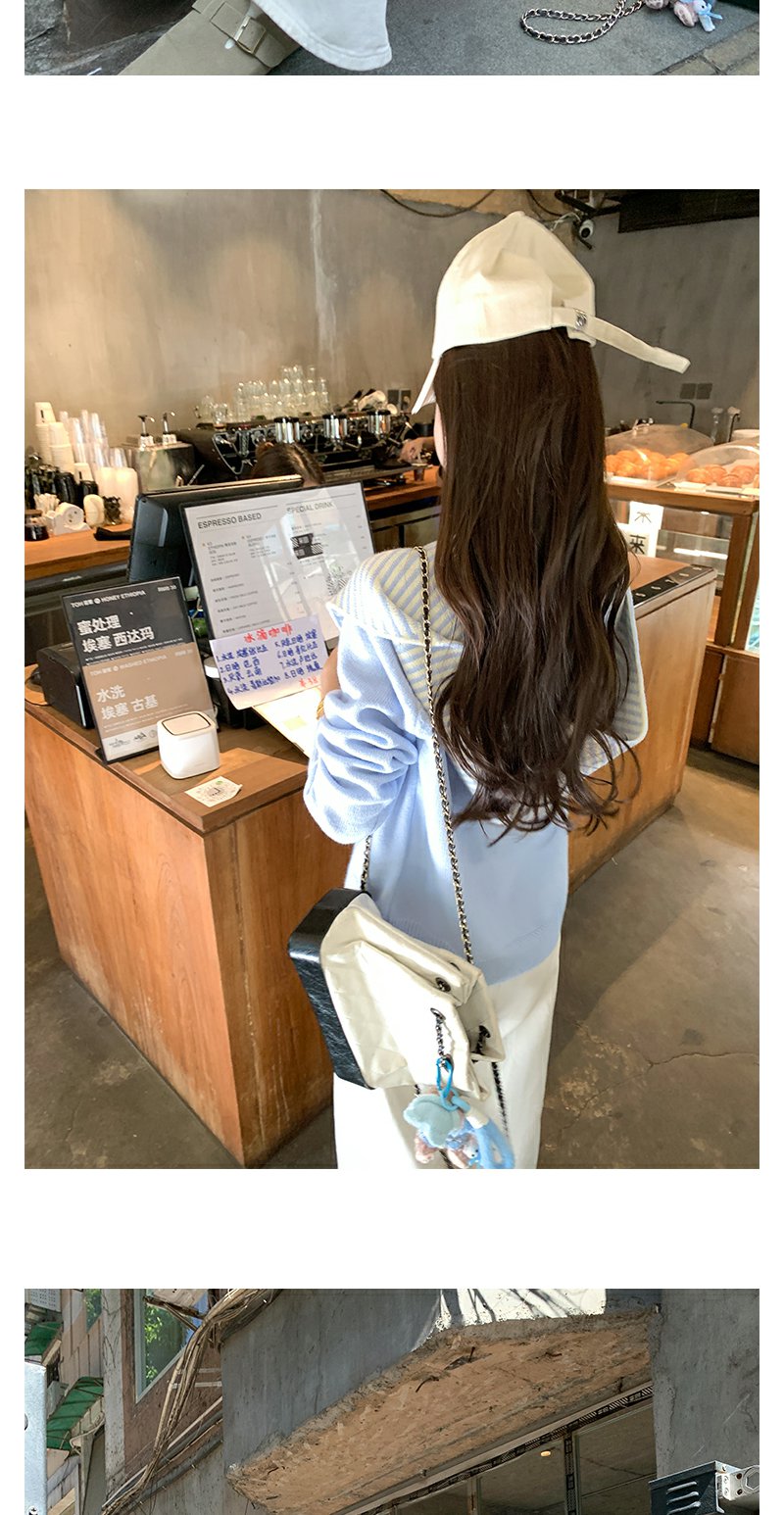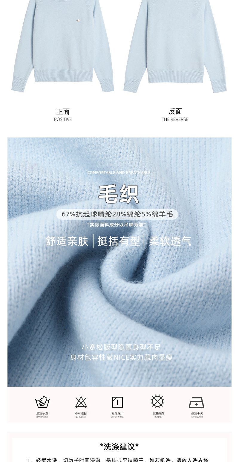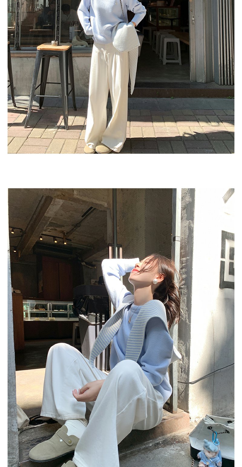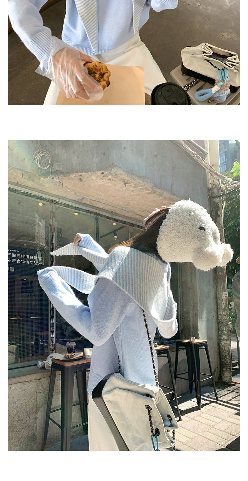 <曾小咸推荐>蓝色软糯宽松圆领毛衣条纹披肩