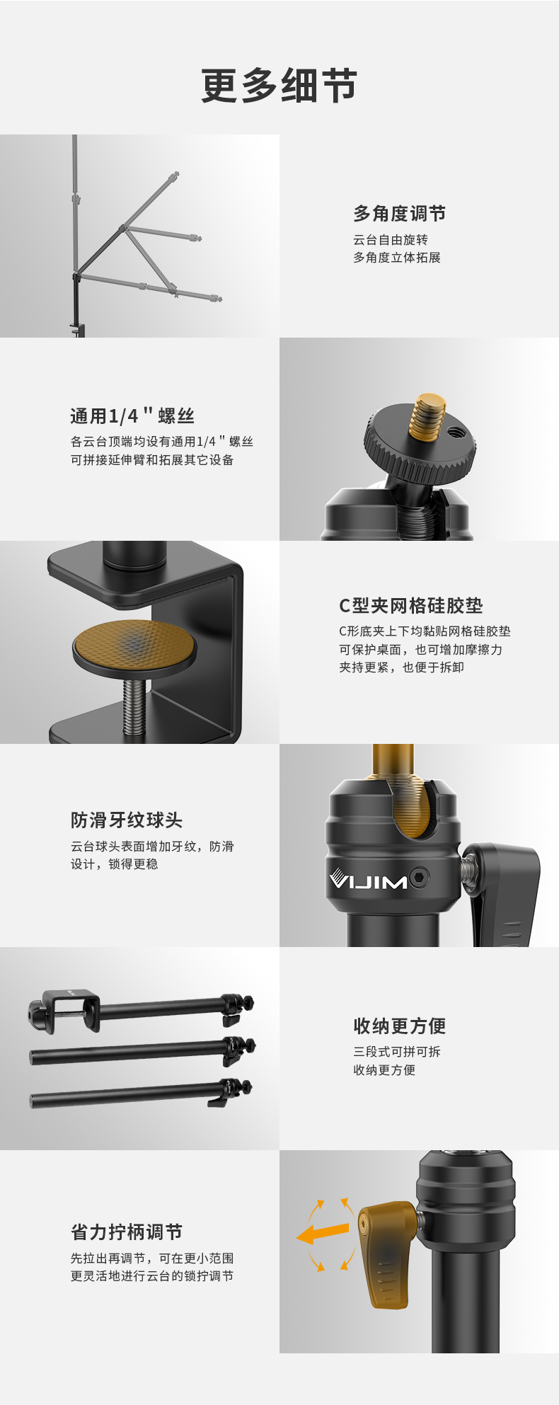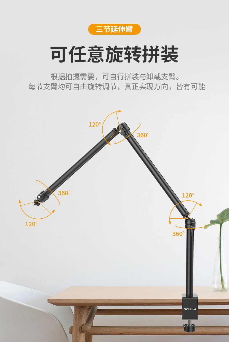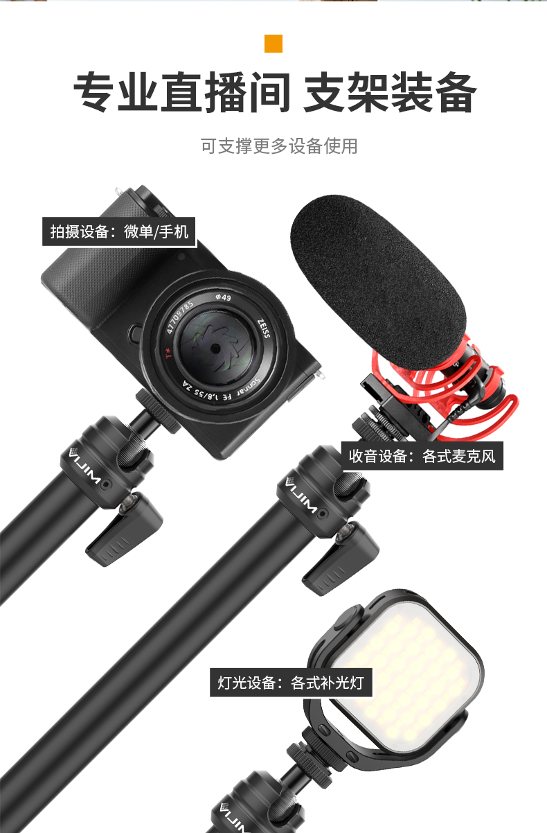 Ulanzi优篮子TH04蛟龙相机俯拍支架手机单反麦克风悬臂支架桌面拍摄直播平板多功能万向拓展补光灯金属支架