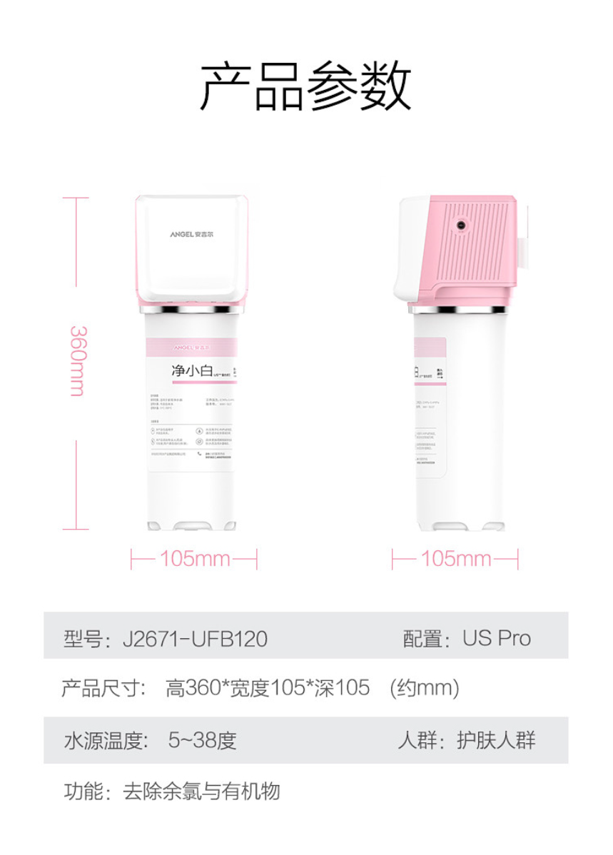 【安吉尔】安吉尔·洗漱净小白 矿物质净水机 J2671-UFB120 不插电 无废水