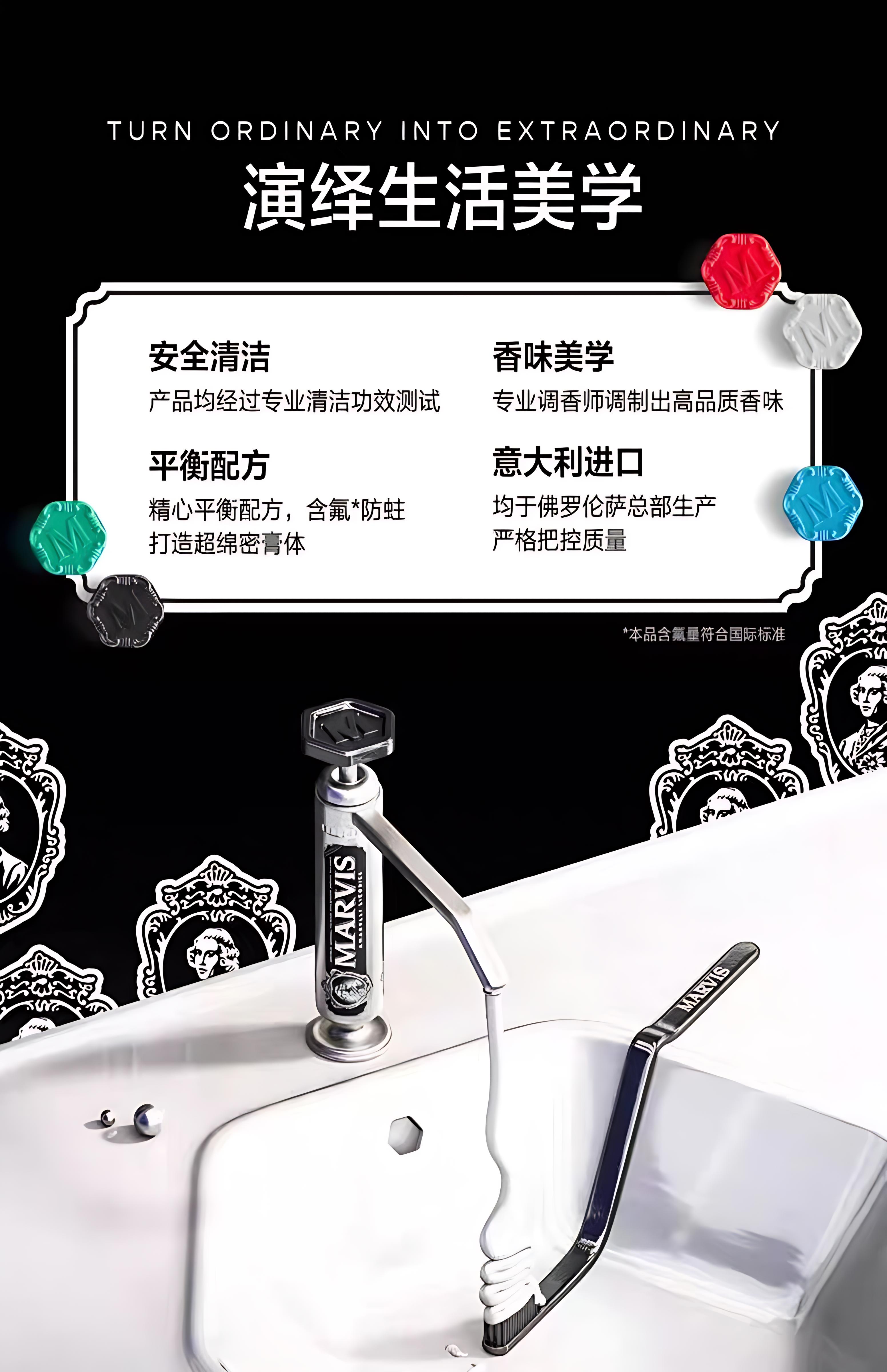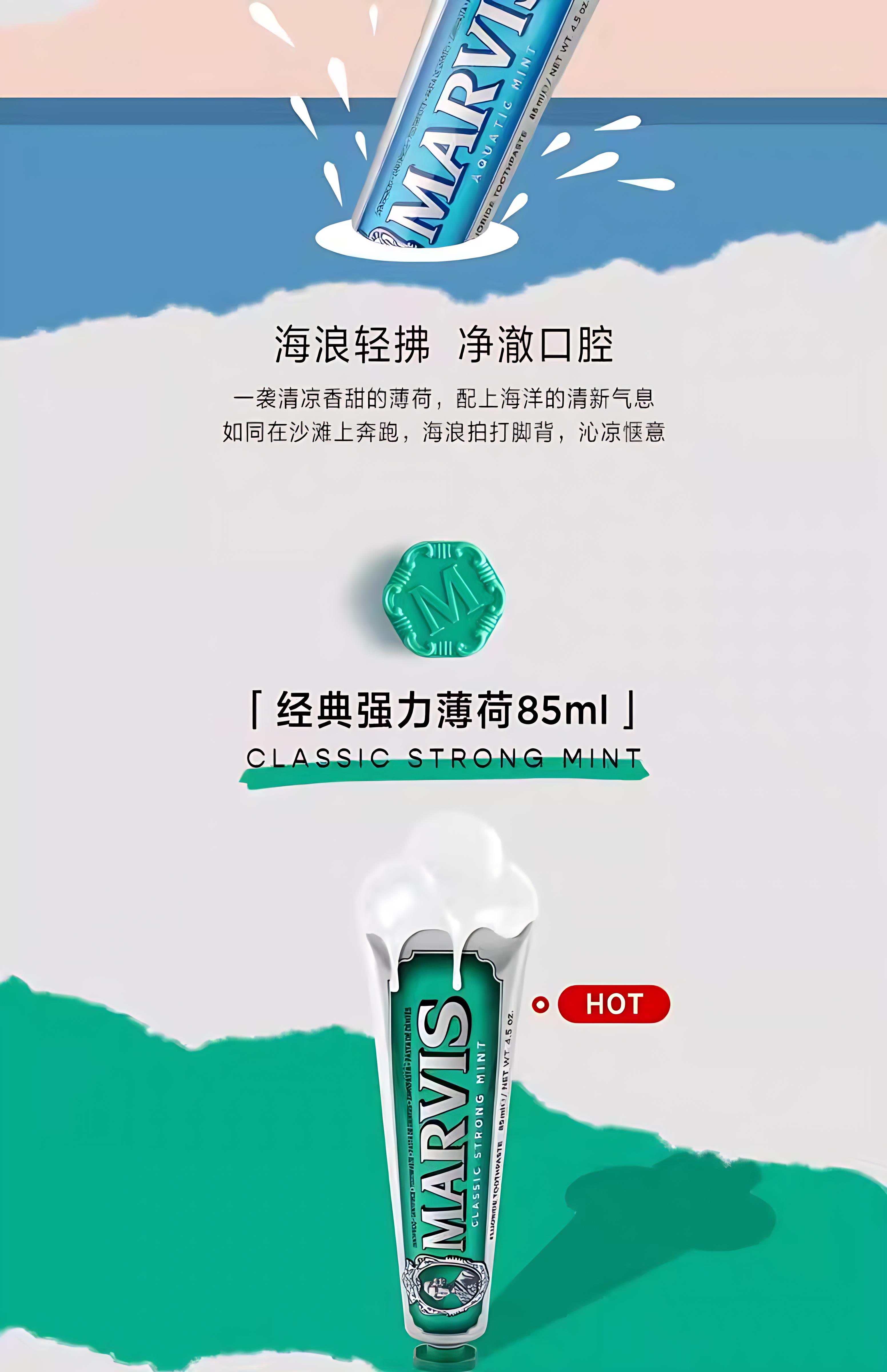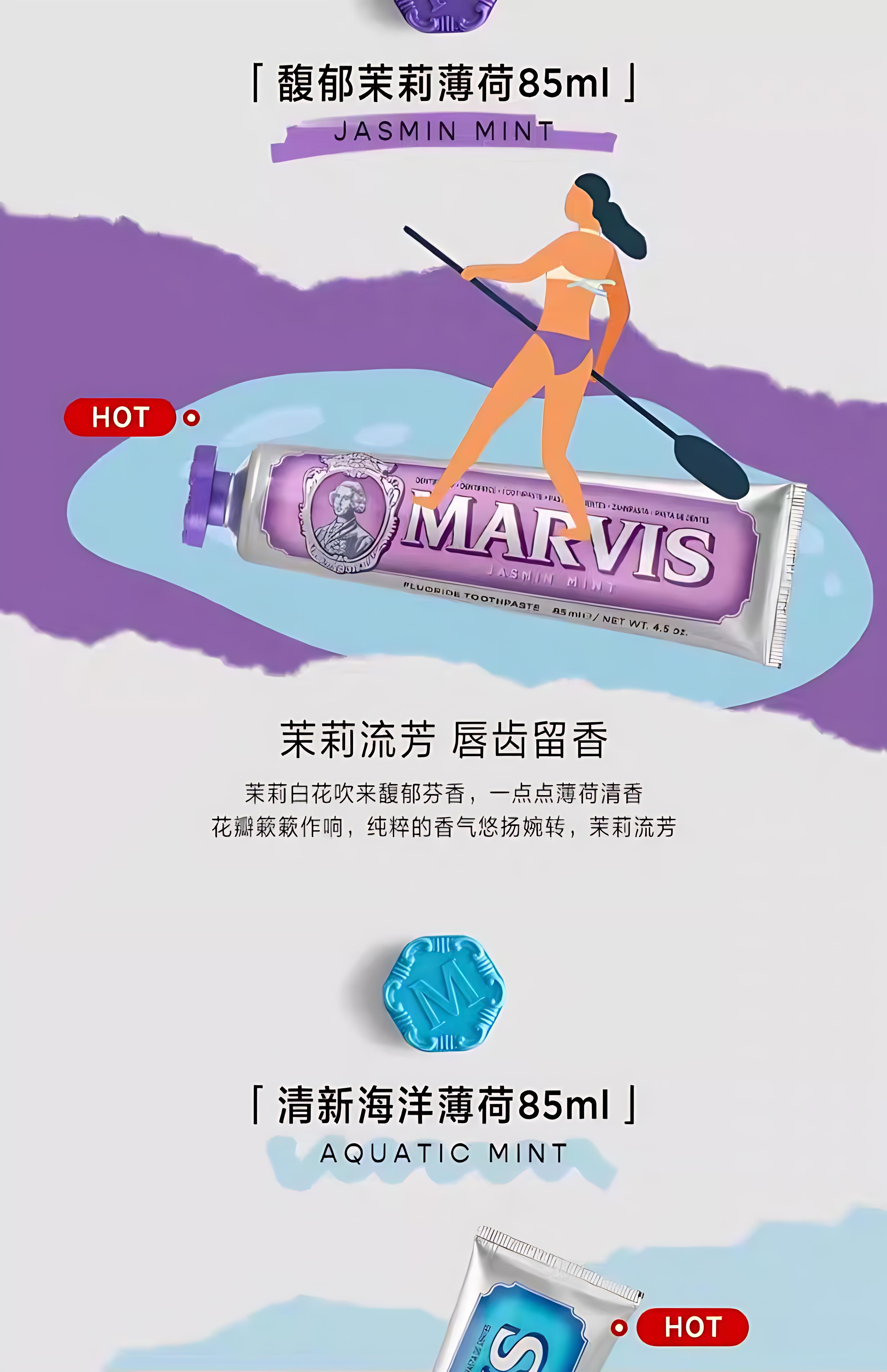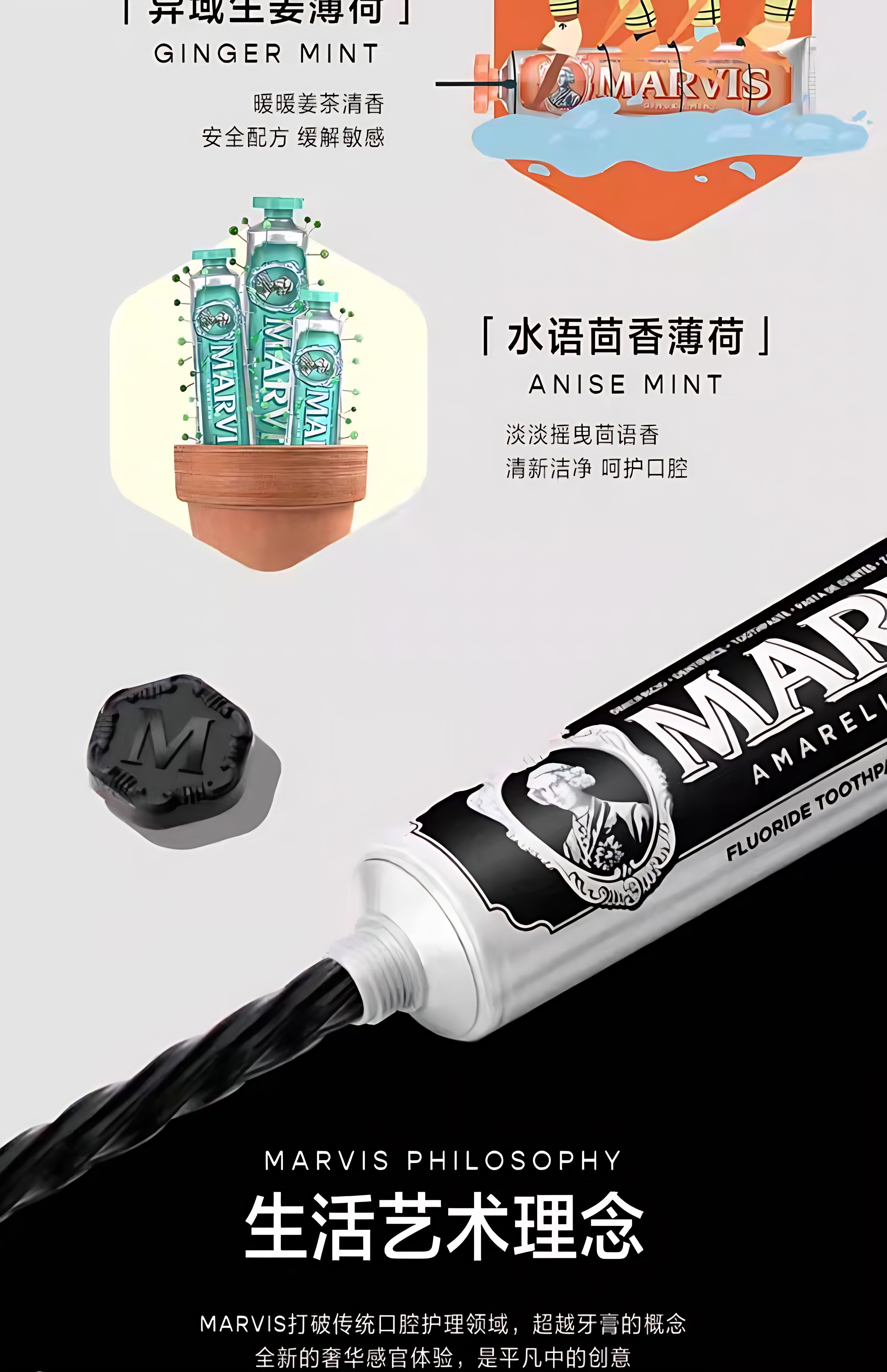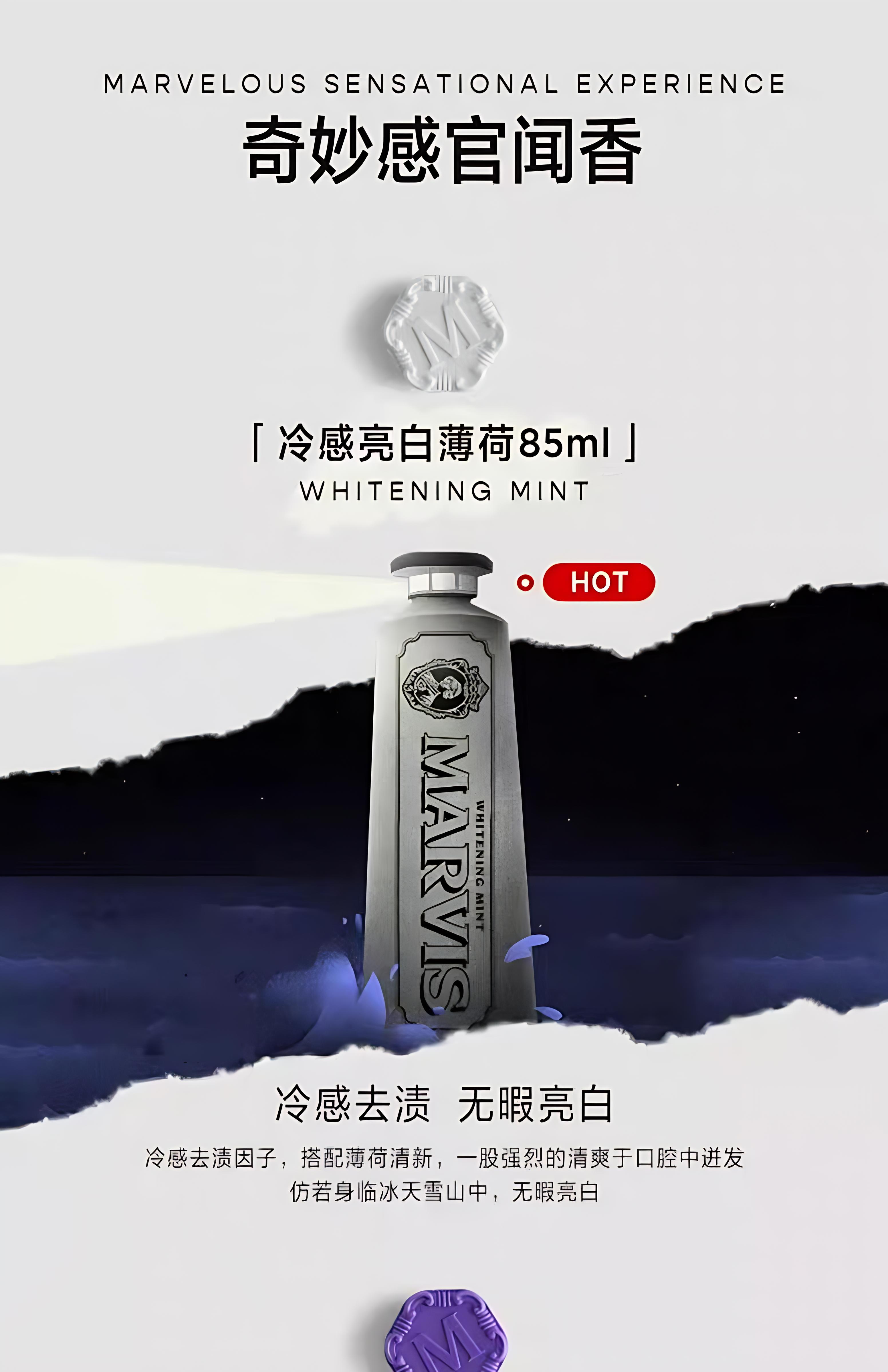 包装在独特的彩色Marvis管中,带有优雅雕刻的瓶盖
