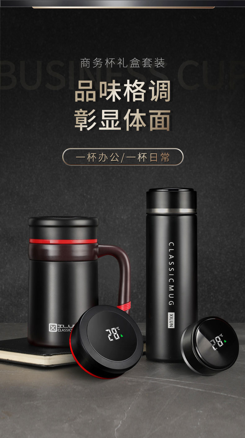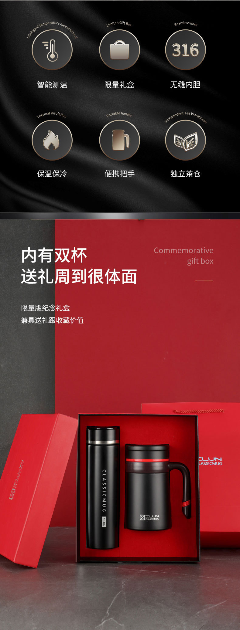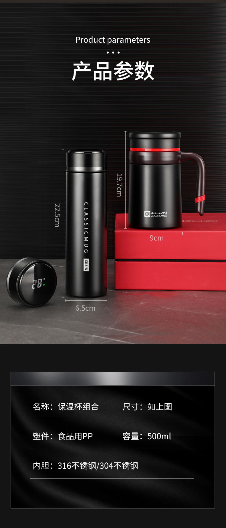 商务礼盒套装 高档礼品保温杯 办公杯带手柄 316智能水杯 公司年会 创意礼品 送客户礼品