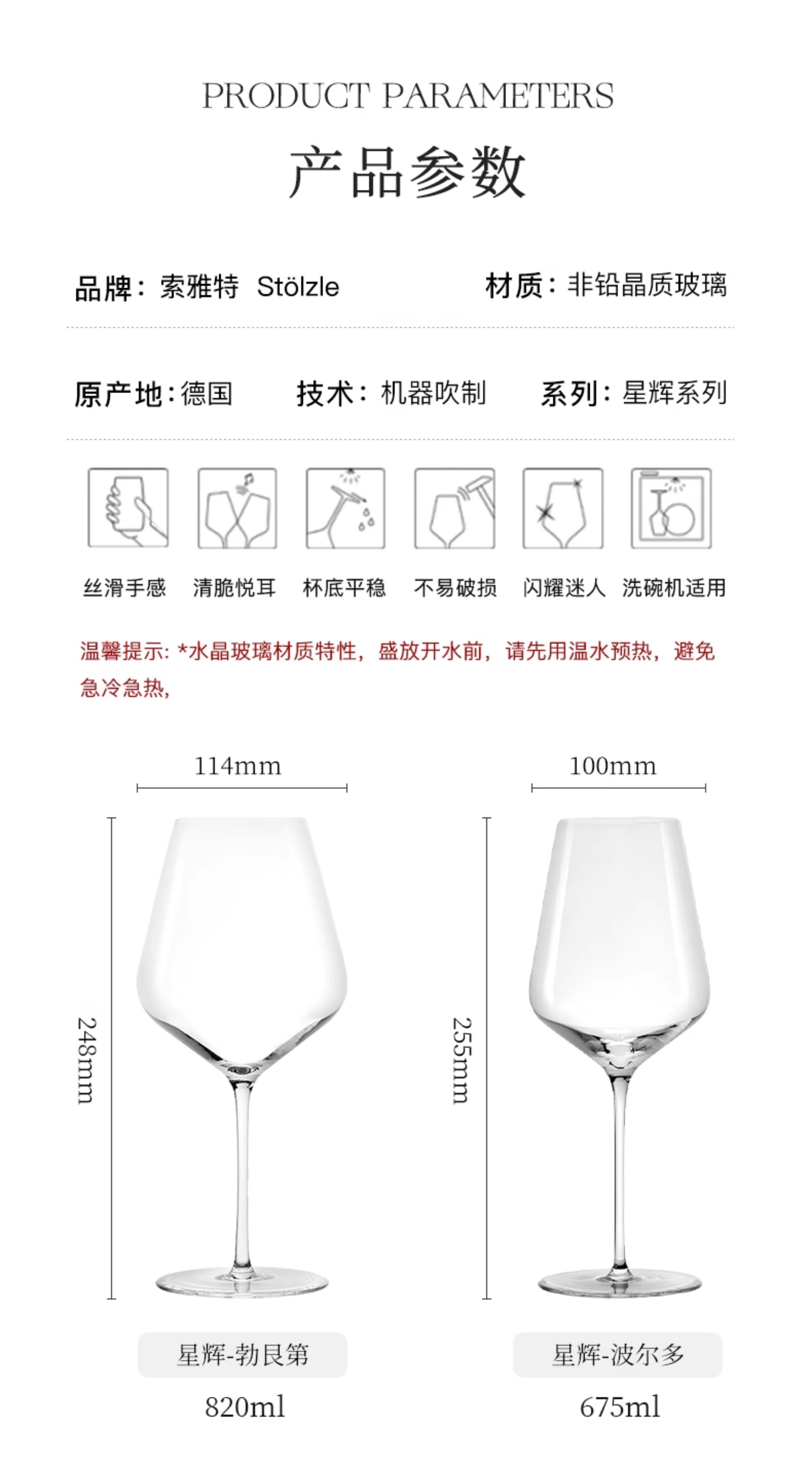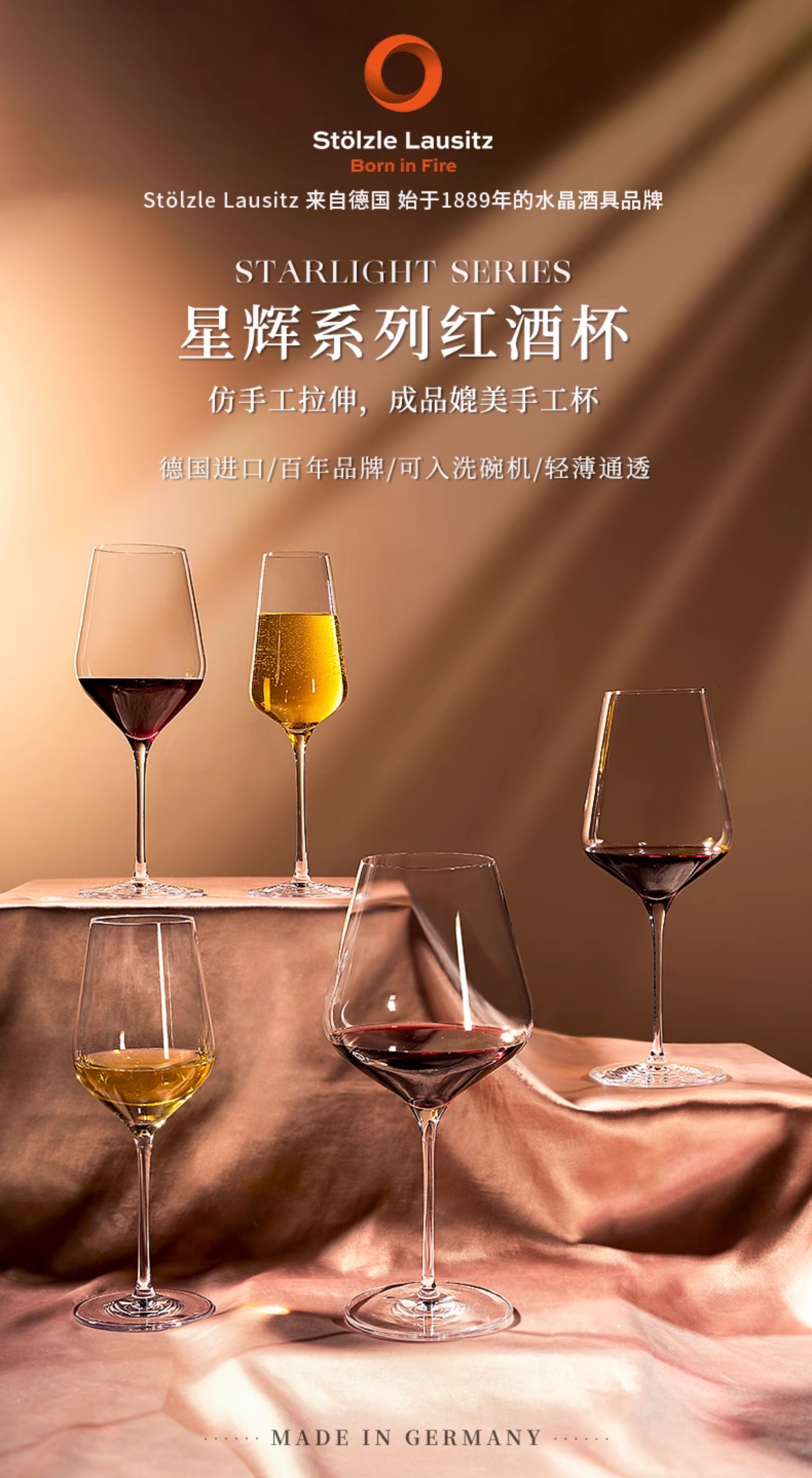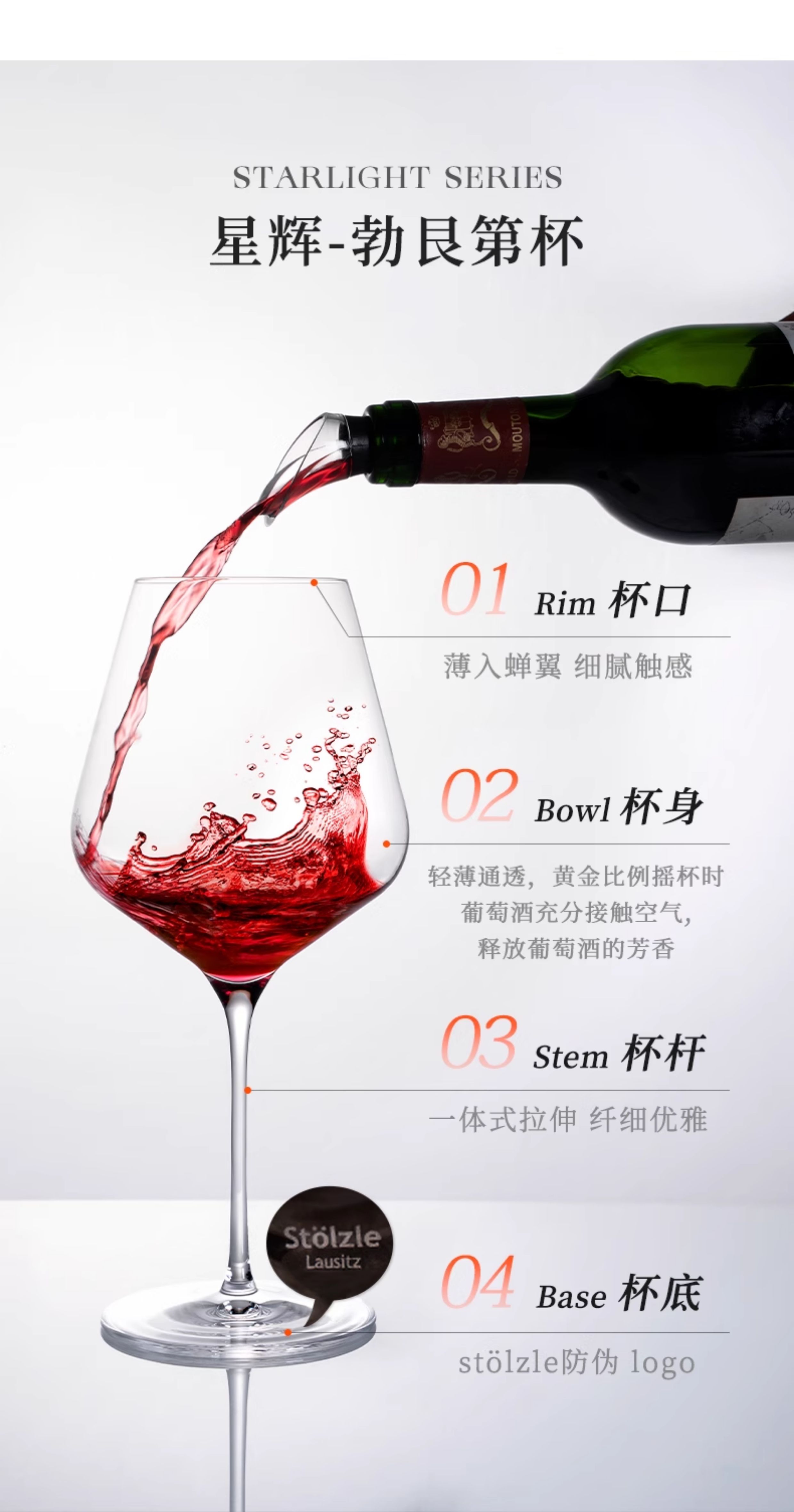 Stolzle星辉德国进口水晶杯大肚勃垦地酒杯波尔多红酒杯家用套装星辉晶质多功能杯6只装545ml金庄波尔多杯6只装755ml
