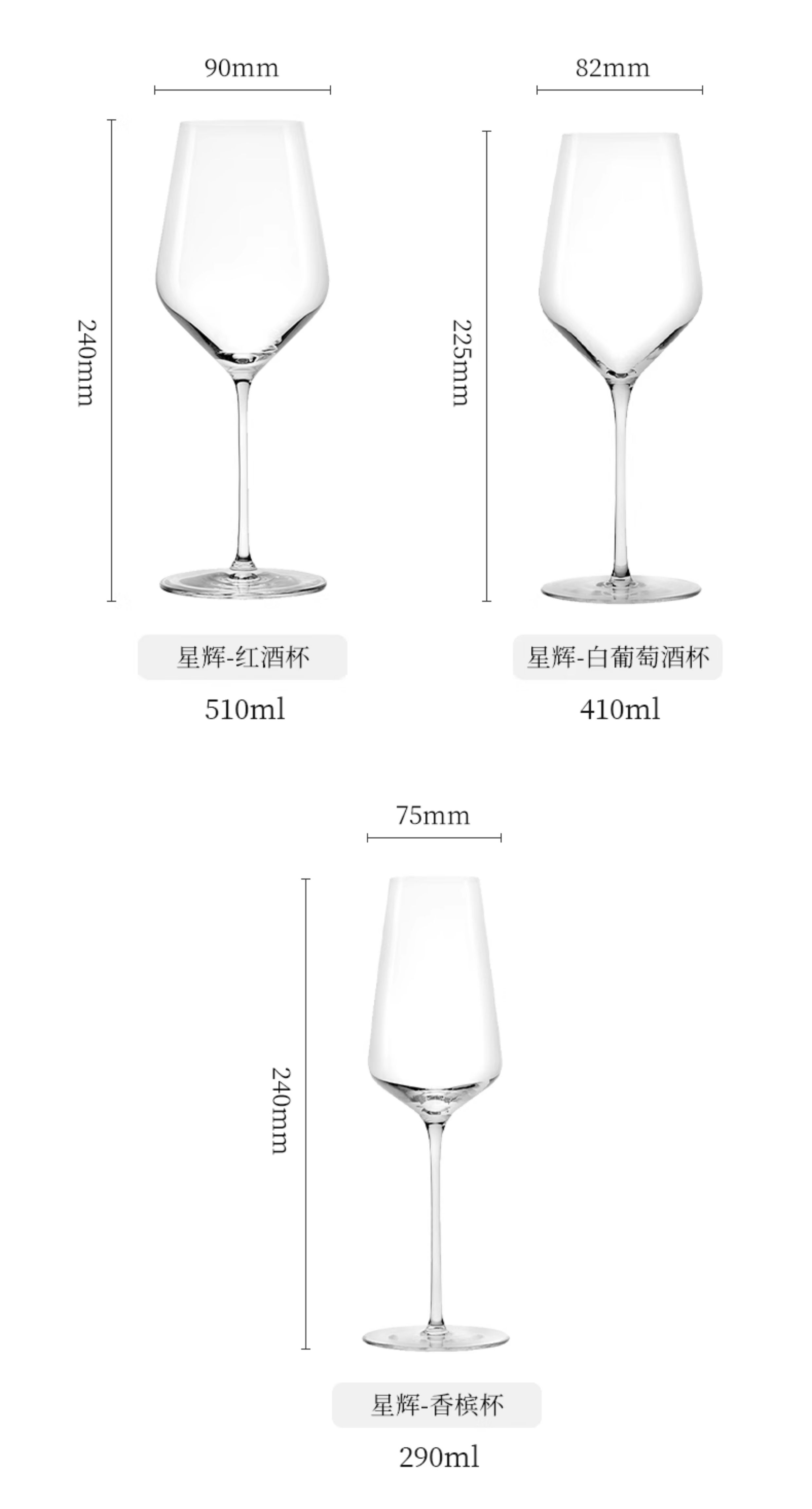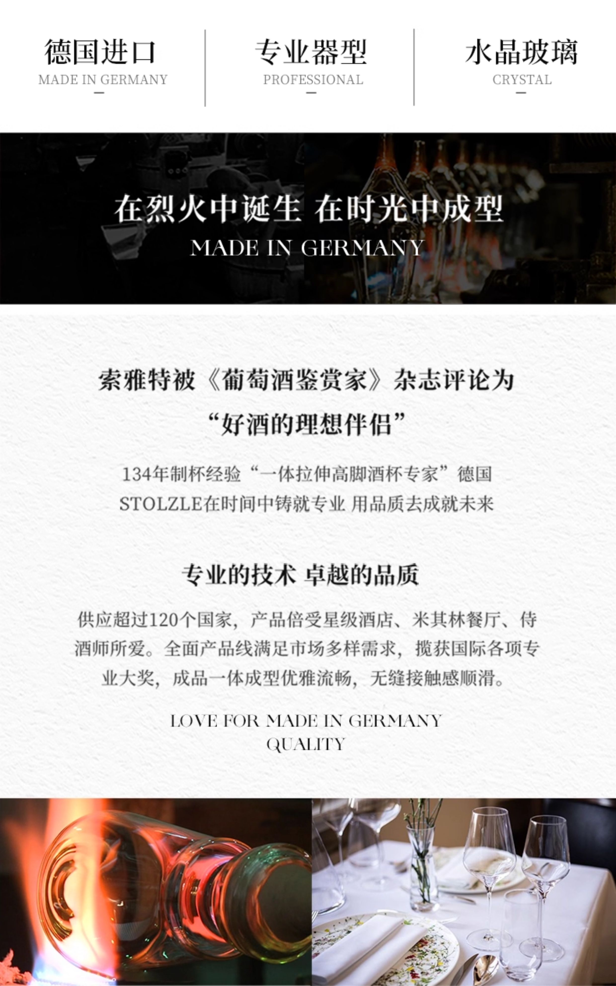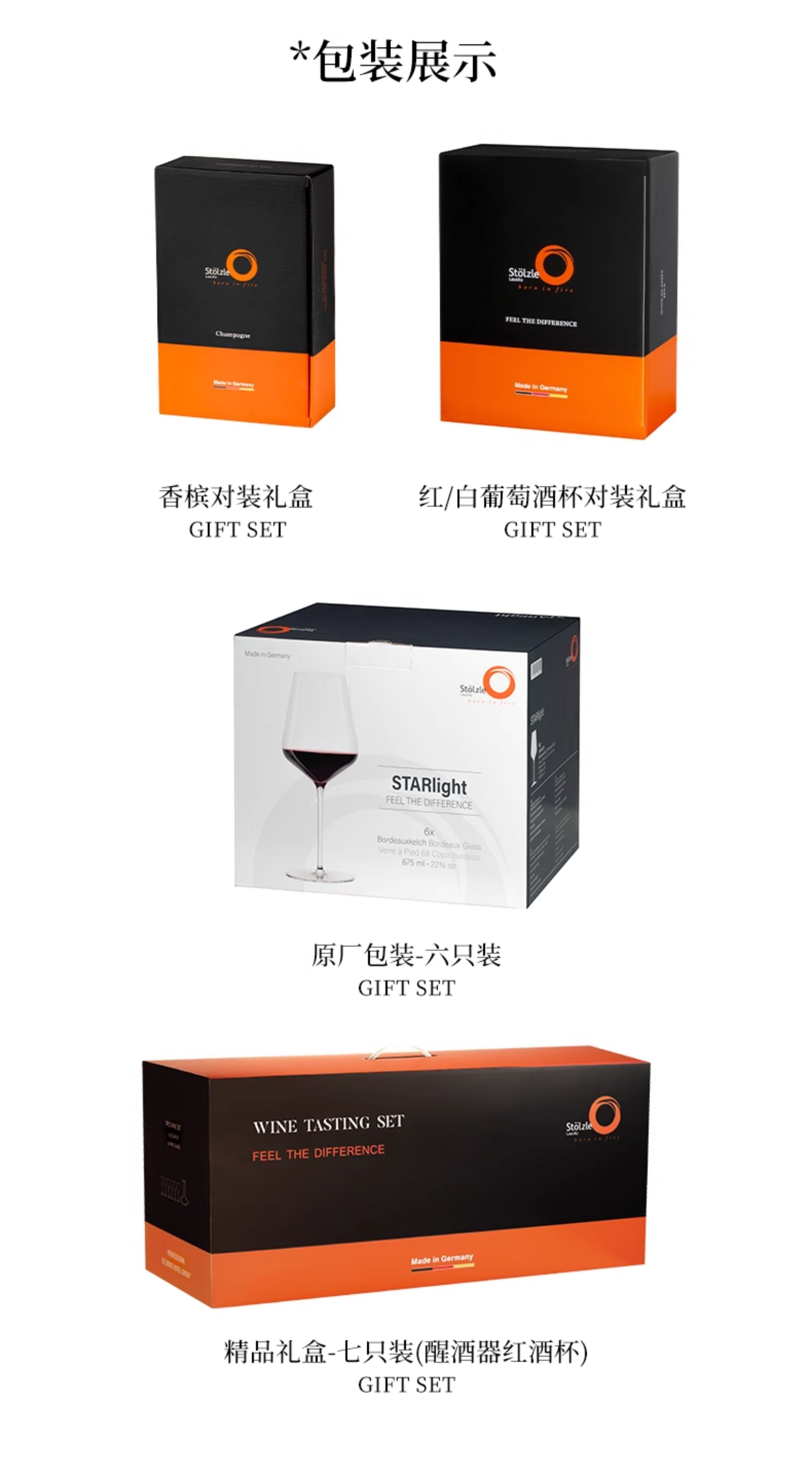 Stolzle星辉德国进口水晶杯大肚勃垦地酒杯波尔多红酒杯家用套装星辉晶质多功能杯6只装545ml金庄波尔多杯6只装755ml