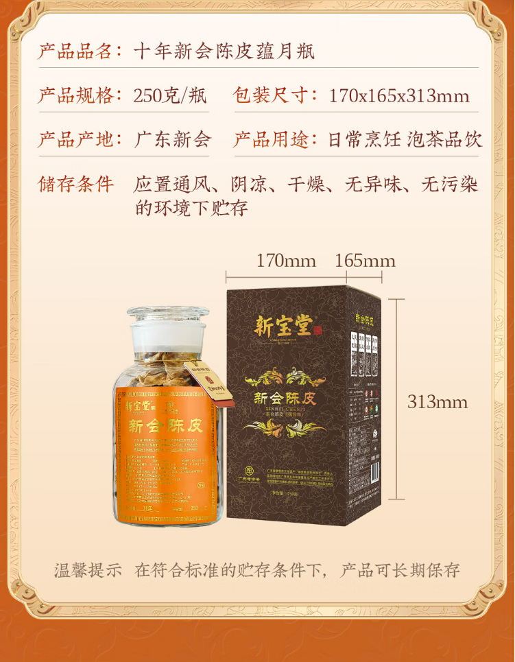 岭南新宝堂丨十年新会陈皮蕴月玻璃瓶礼盒250克