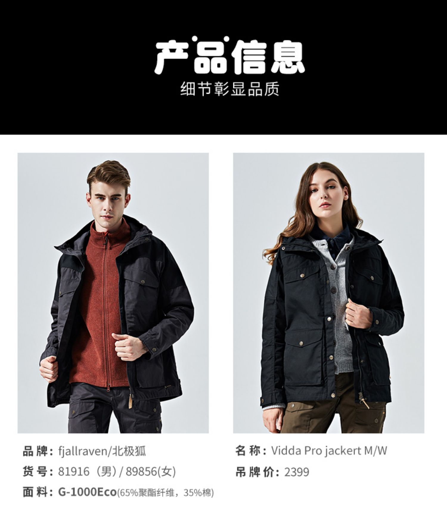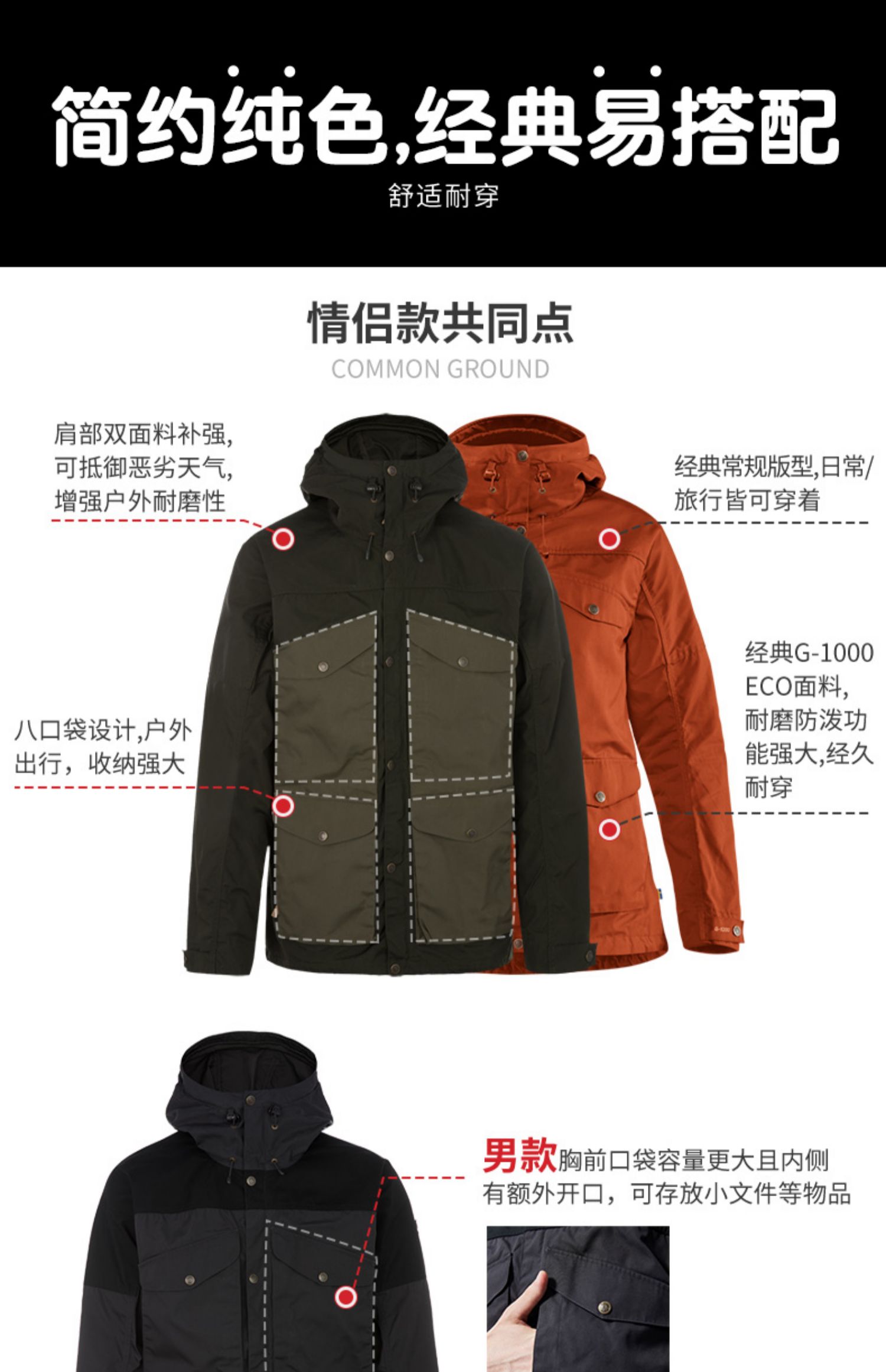 Fjallraven/北极狐户外休闲旅行耐磨连帽防风外套情侣夹克89856