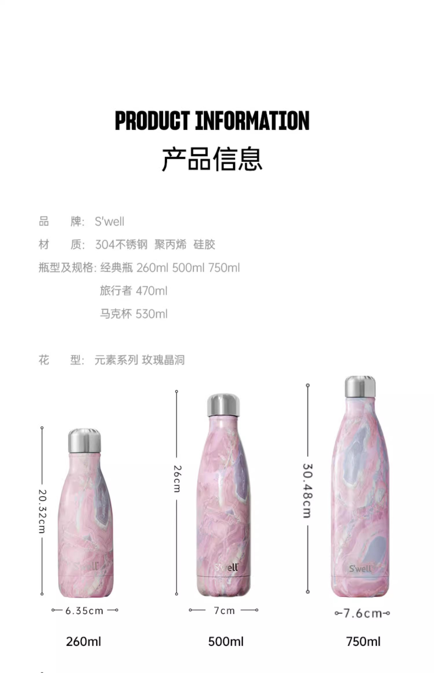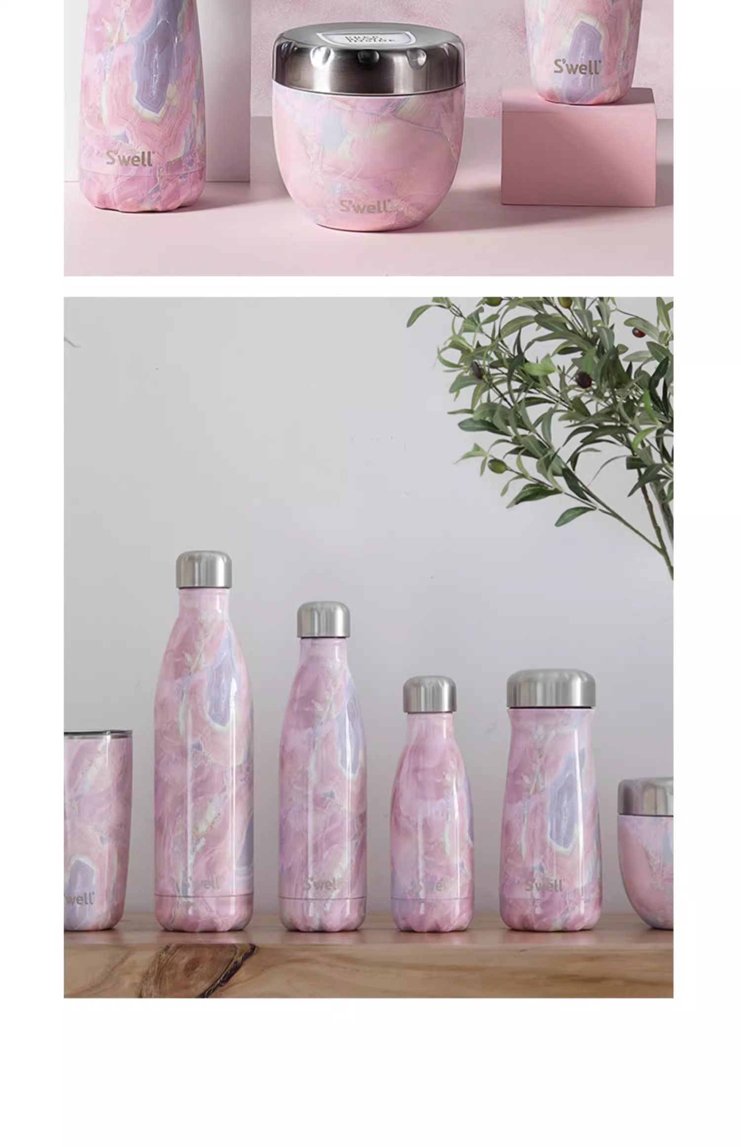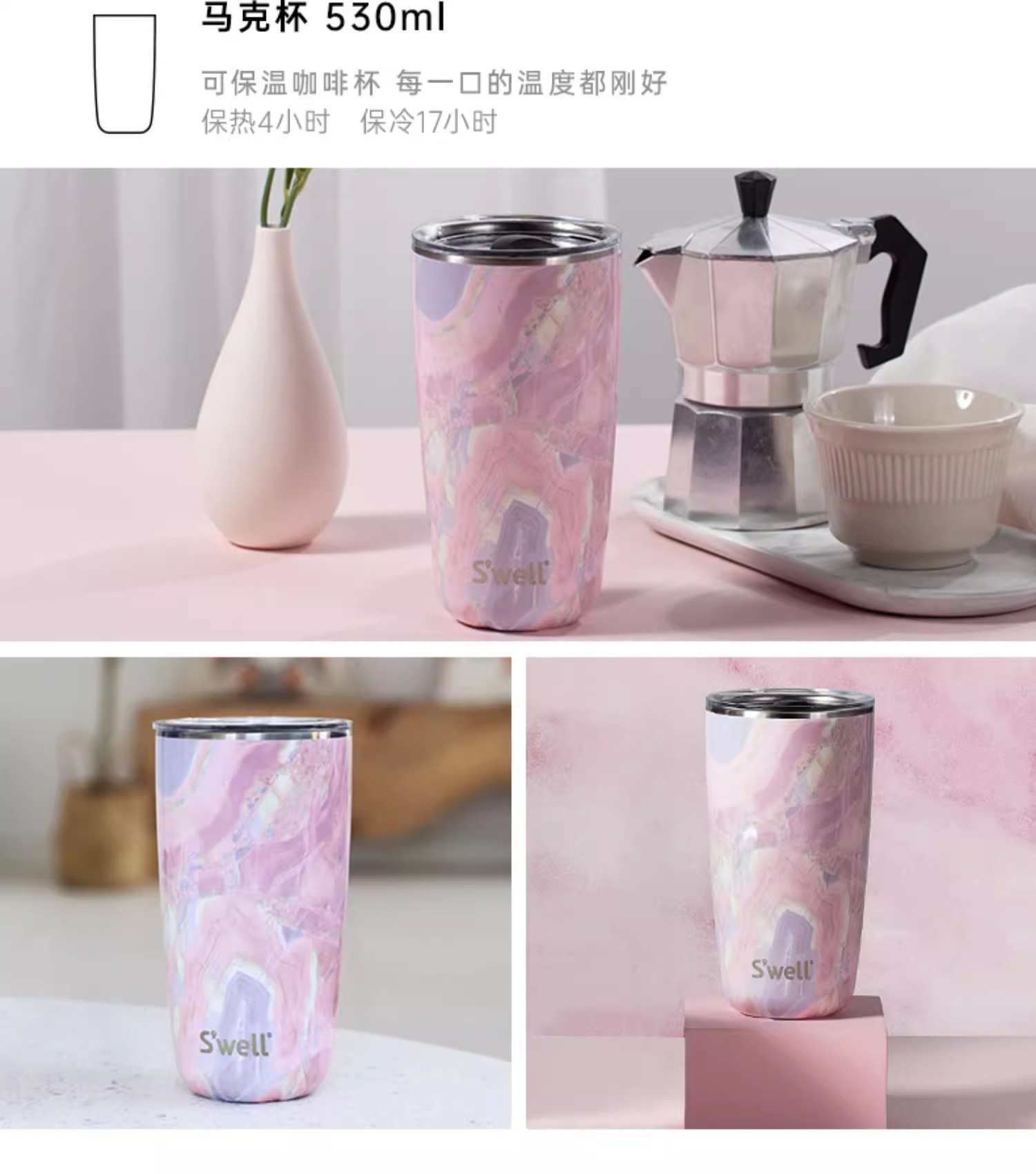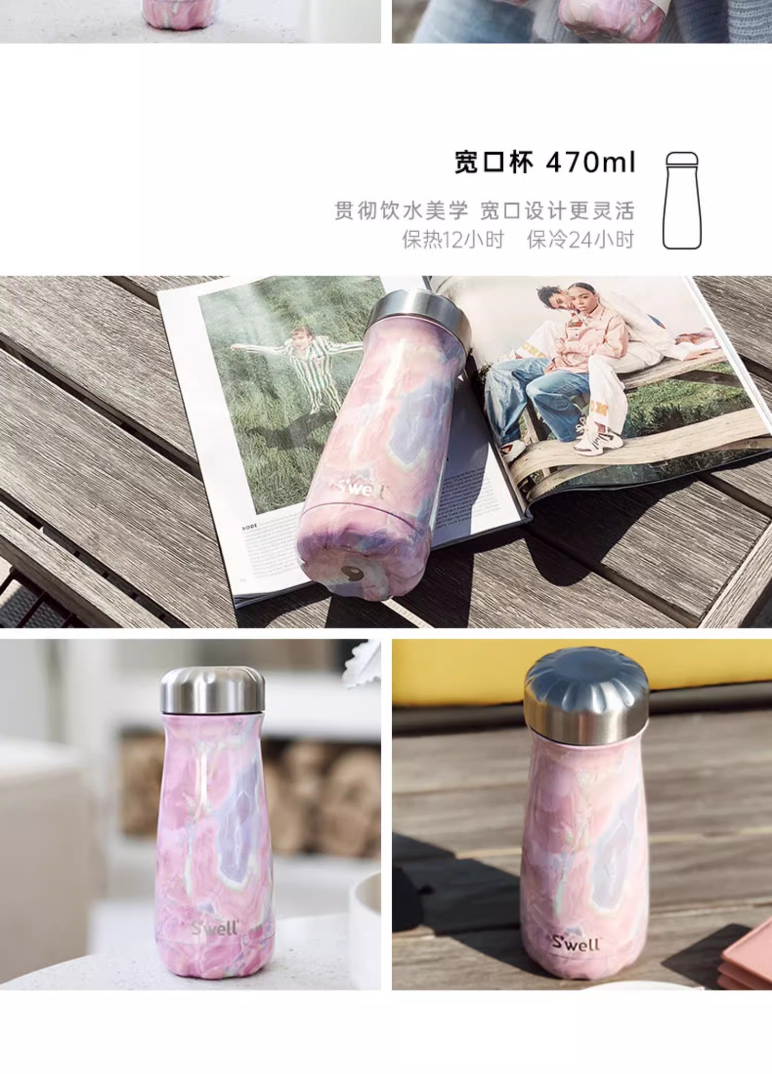 【swell美国进口保温杯】玫瑰晶洞系列不锈钢保温保冷水瓶❤