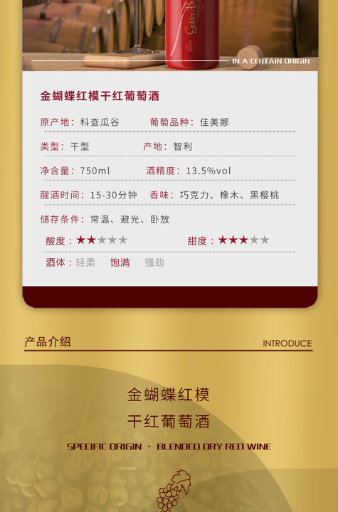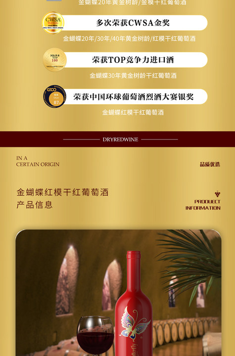 金蝴蝶虹膜干红葡萄酒750ml