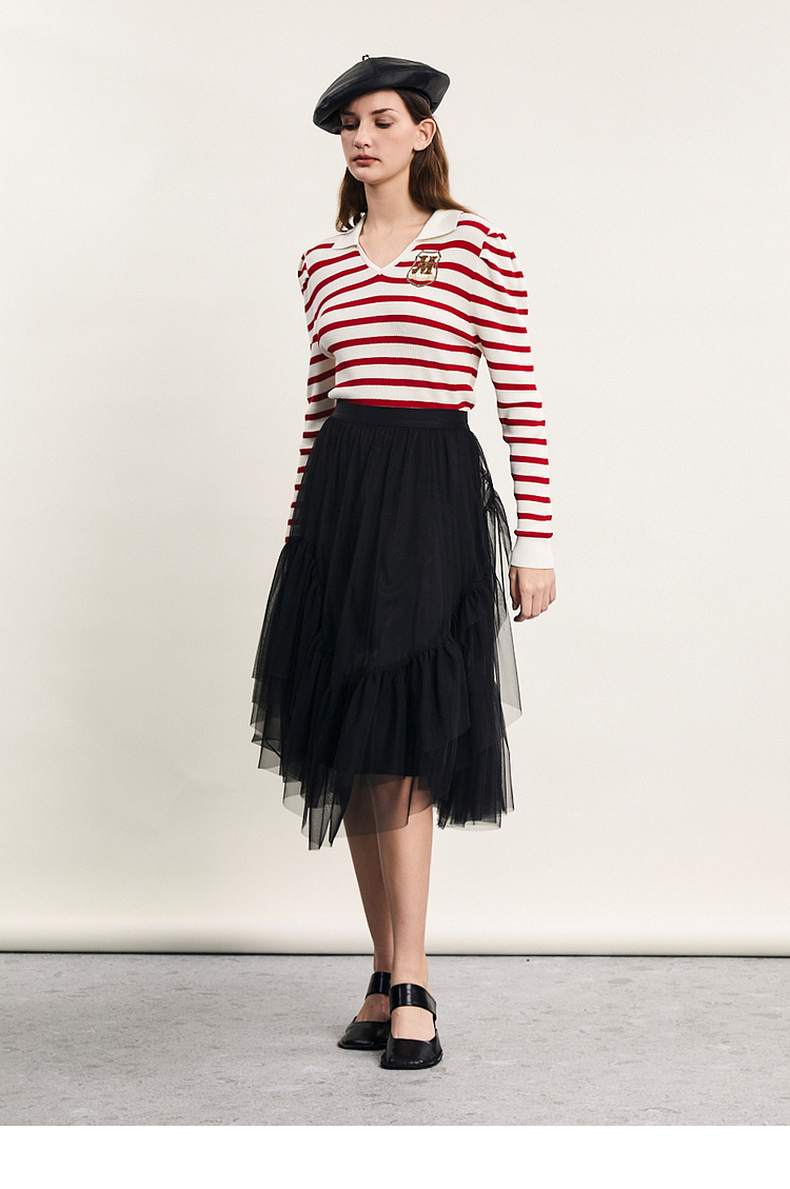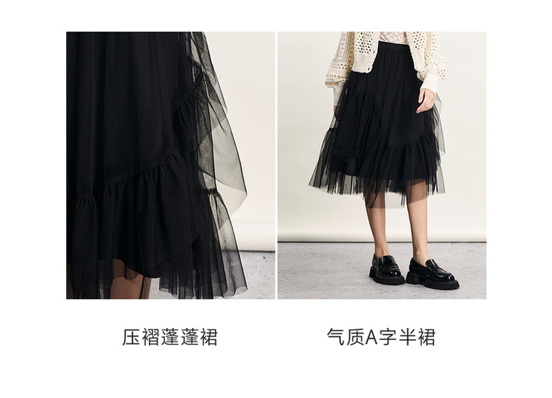 谜底网纱半身裙女2024春季新款复古文艺风宽松A型中长裙241MB0160